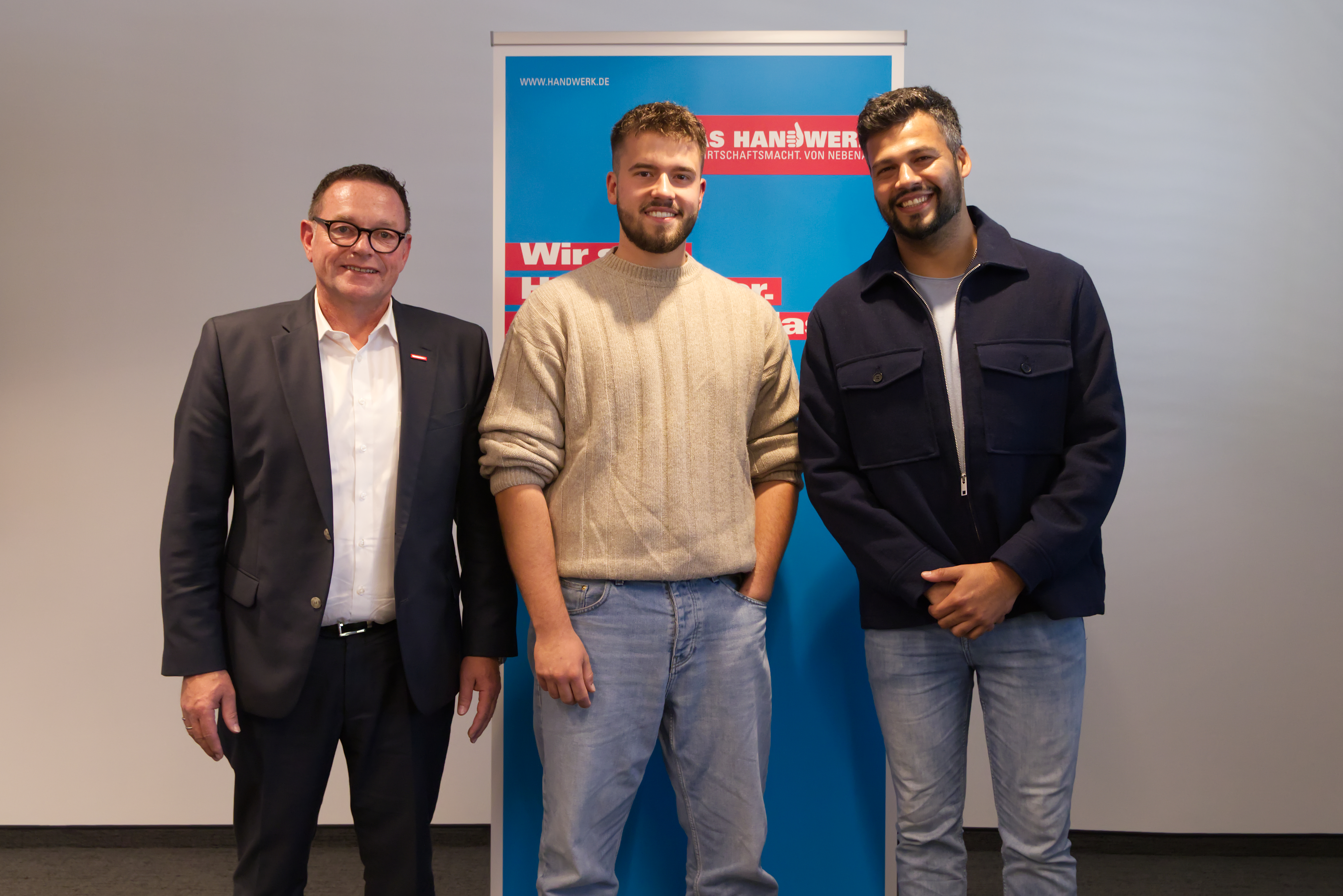 (lifepr) (Mannheim, 08.11.2023) Am Ende ist es einfach fertig. Es steckt Können, Wissen, Kreativität und echtes Handwerk darin. Zudem jede Menge Arbeit, die man manchmal gar nicht auf den ersten Blick sieht. Allein schon deshalb gebührt Gesellen- und Meisterstücken eine Bühne. Die Handwerkskammer Mannheim Rhein-Neckar-Odenwald bietet sie jedes Jahr mit ihrem Wettbewerb „#zeigsallen“. Die Sieger 2023: Maler- und Lackierermeister Cristof Nunes Botens aus Heddesheim und Schreiner Ruben Maier aus Eppingen. Sie freuten sich bei der Preisverleihung durch Präsident Klaus Hofmann über Urkunden und Preise im Wert von jeweils 300,- Euro, aber auch darüber, dass sie es allen gezeigt haben.