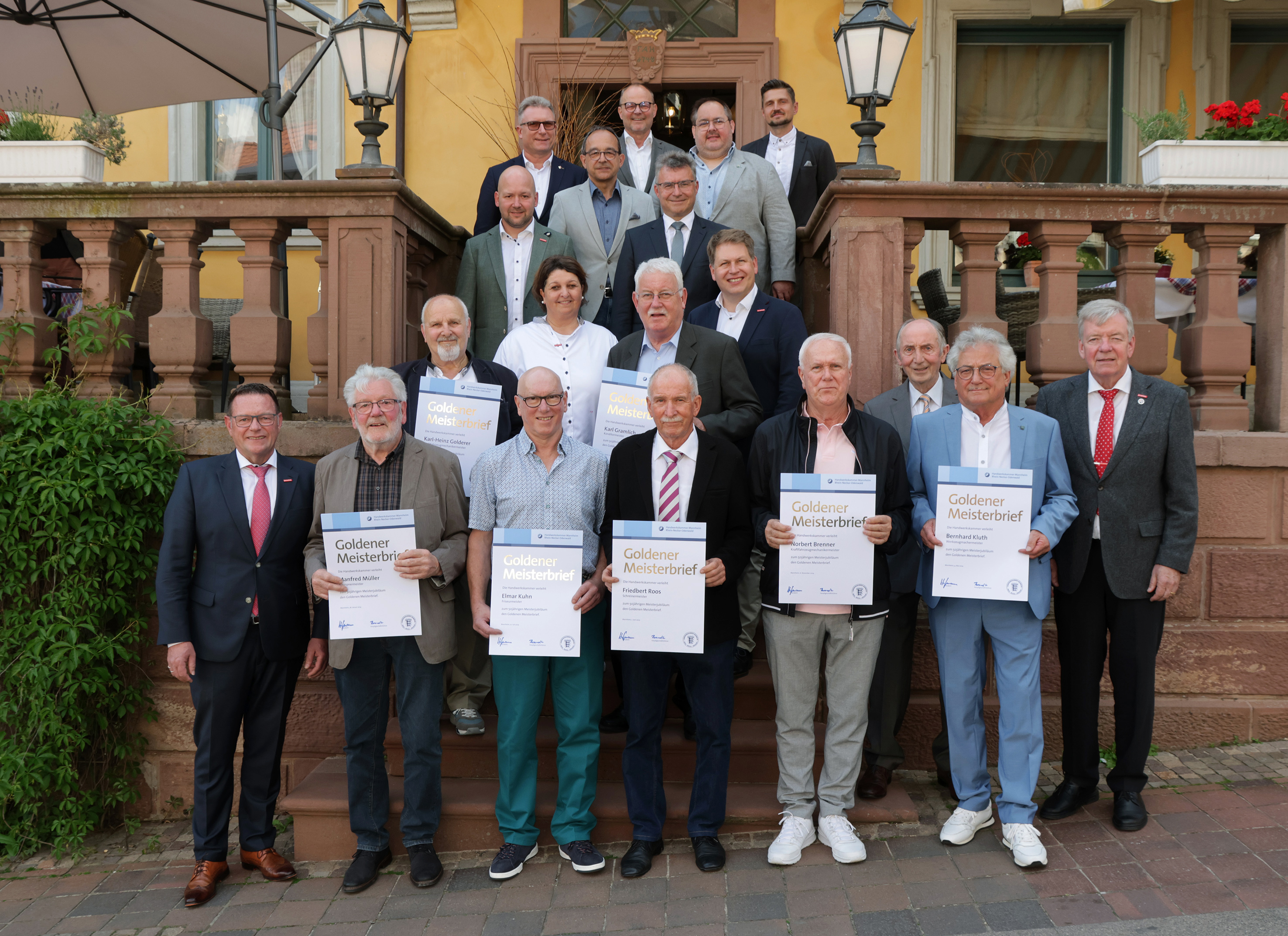 (lifepr) (Mannheim, 17.05.2024) Insgesamt 81 Goldene Meisterinnen und Meister feierte die Handwerkskammer Mannheim Rhein-Neckar-Odenwald in dieser Woche: Zehn bei einer kleinen Feierstunde am Montag im Hotel Prinz Carl in Buchen, 71 am Donnerstag im Kongresszentrum Palatin in Wiesloch. Sie alle erhielten den Goldenen Meisterbrief aus den Händen von Handwerkskammerpräsident Klaus Hofmann und wurden somit für ihre Leistung in 50 Jahren Meisterschaft im Handwerk ausgezeichnet. Auch Ehrengäste wie die Obermeister verschiedener Innungen und Vertreter aus Gemeinden und Politik, wie Landrat Dr. Achim Brötel, der in Buchen ein Grußwort sprach, machten ihre Aufwartung.