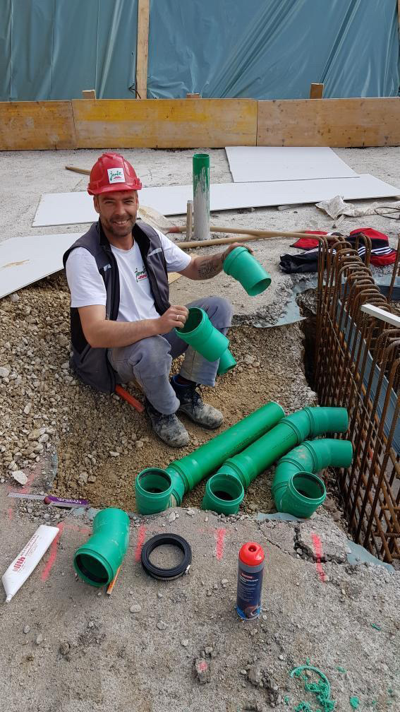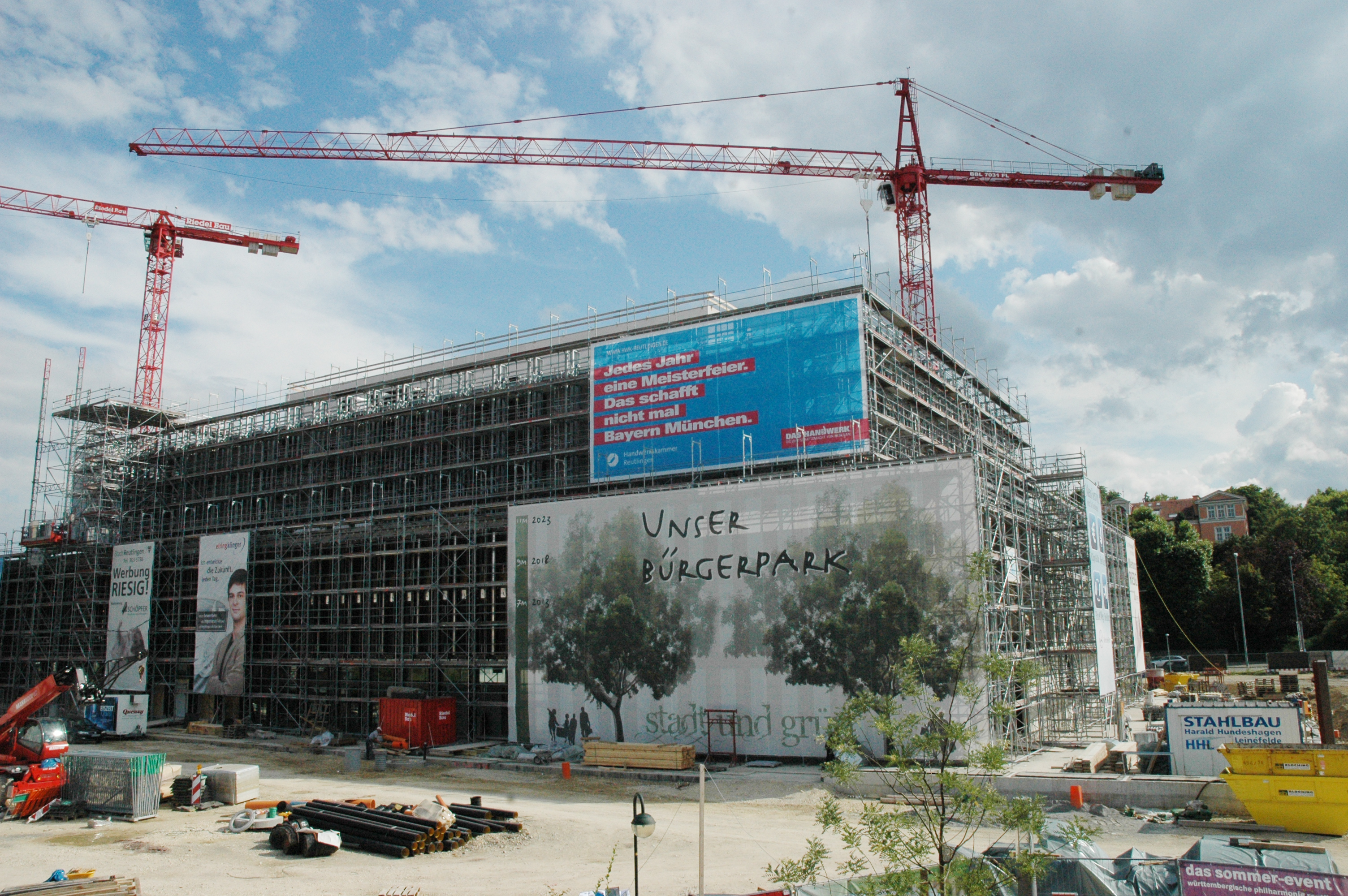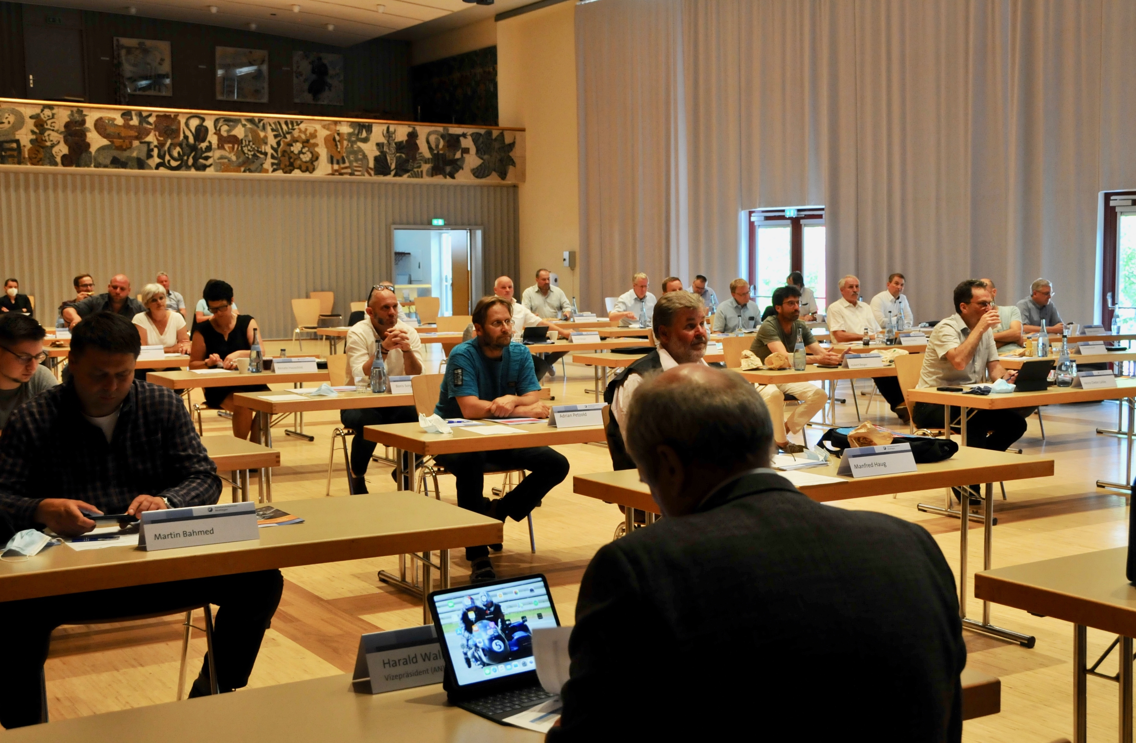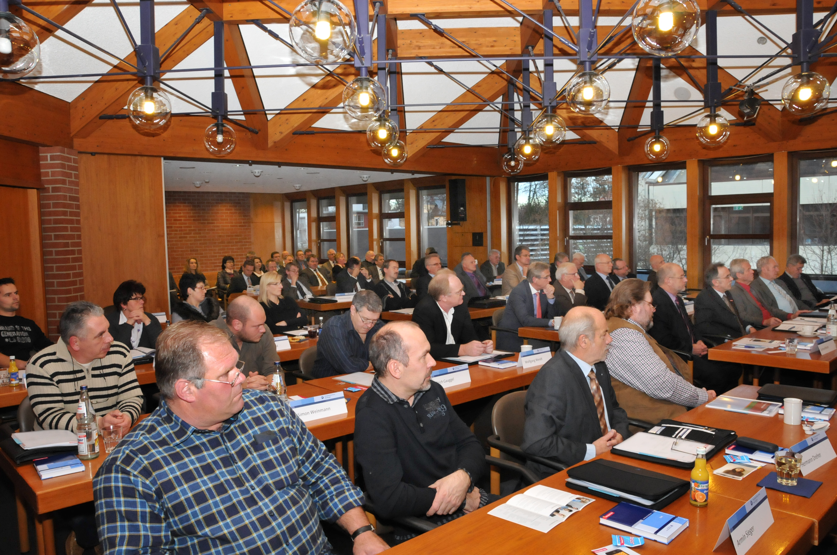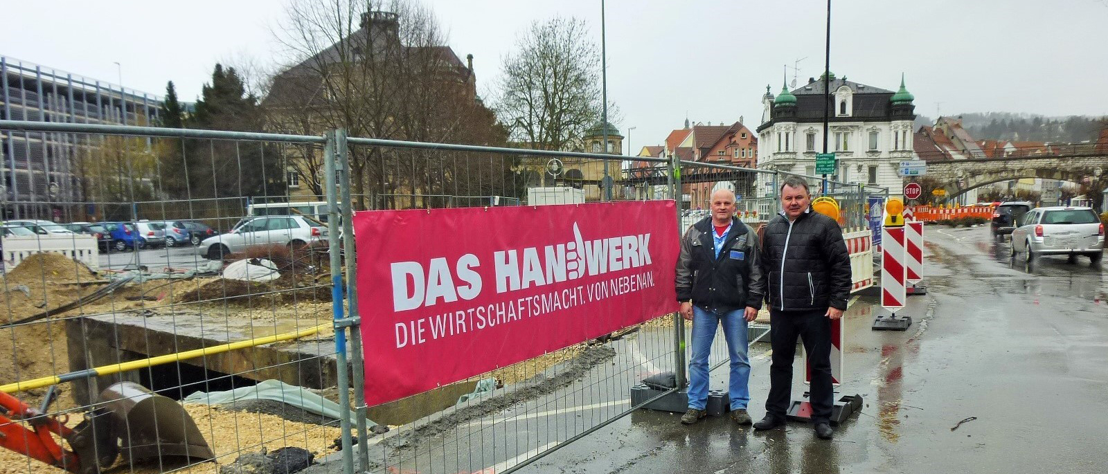 Siegfried Dreger, Geschäftsführer der Kreishandwerkerschaft Freudenstadt, Manfred Haug, Vorstandsmitglied der Handwerkskammer Reutlingen, Oliver Laurösch, Firmengründer Gerhard Nübel, Volker Nübel, Präsident Harald Herrmann, Christina Schmid, im Bauunternehmen für Personal zuständig, und Hauptgeschäftsführer Dr. Joachim Eisert (v.l.n.r.)