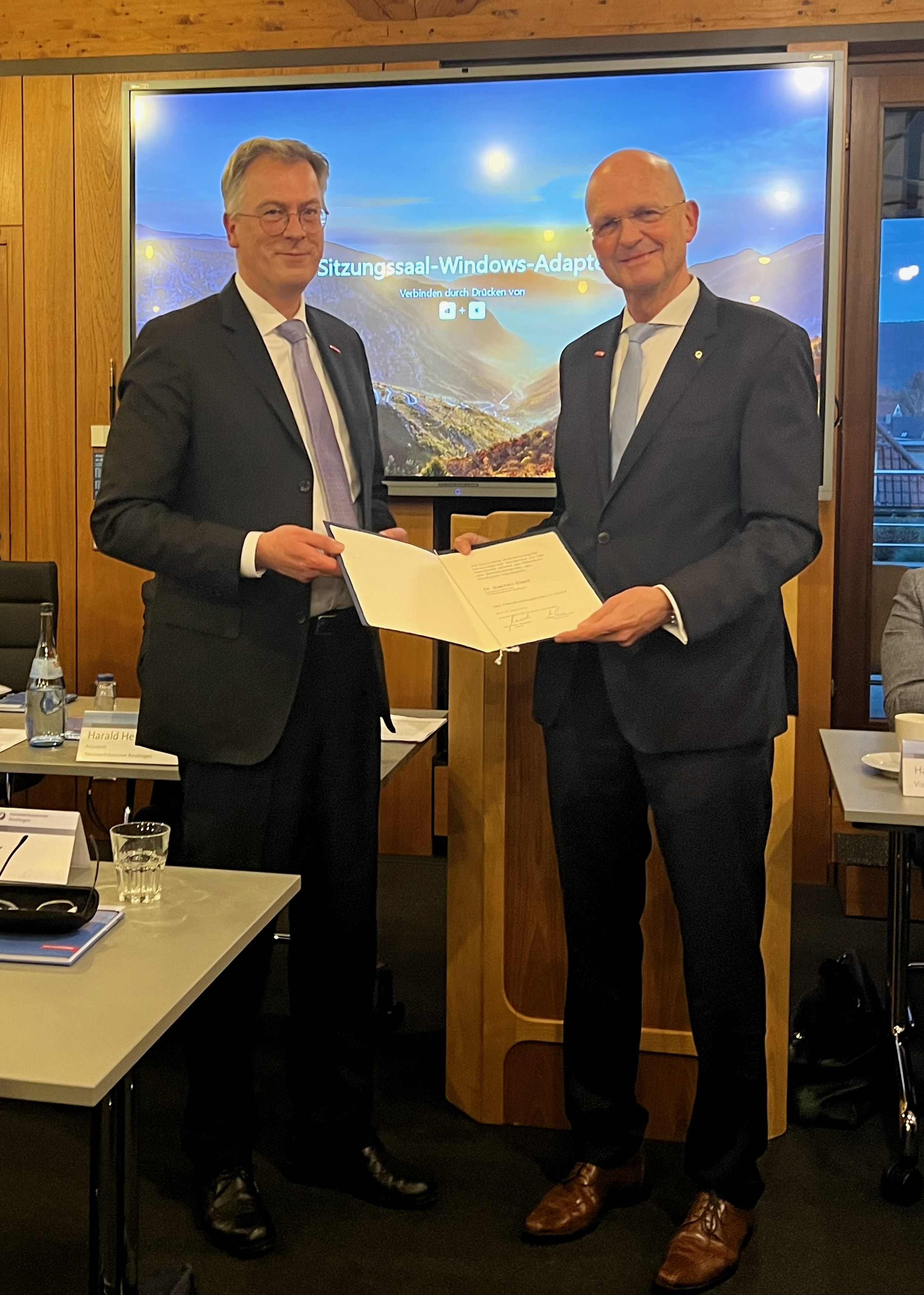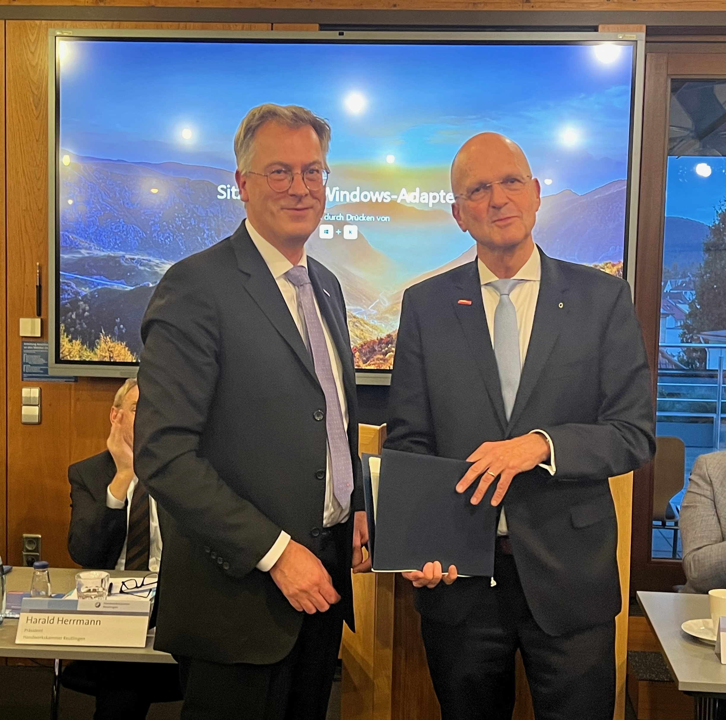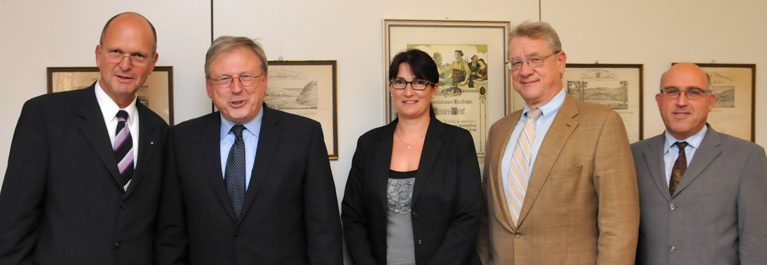 Wilhelm Schreyeck, Vorsitzender der Geschäftsführung der Arbeitsagentur Reutlingen, Rainer Neth, stellvertretender Hauptgeschäftsführer der Handwerkskammer Reutlingen, Clemens Riegler, Leiter der Bildungsakademien der Handwerkskammer Reutlingen (hintere Reihe, v.li.n.re.), Georg Link, Vorsitzender der Geschäftsführung der Arbeitsagentur Balingen, Dr. Joachim Eisert, Hauptgeschäftsführer der Handwerkskammer Reutlingen, Jürgen Schwab, Vorsitzender der Geschäftsführung der Arbeitsagentur Nagold-Pforzheim (vordere Reihe, v.li.n.re.)