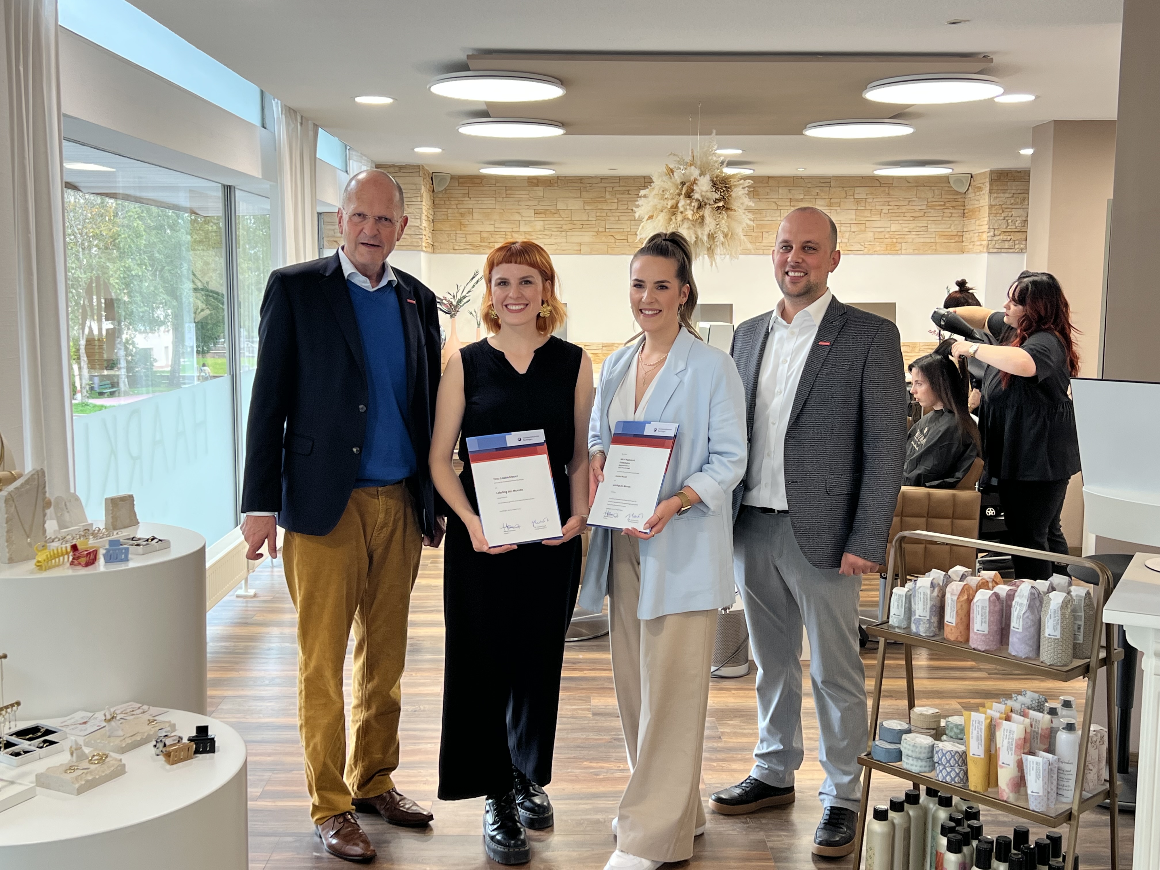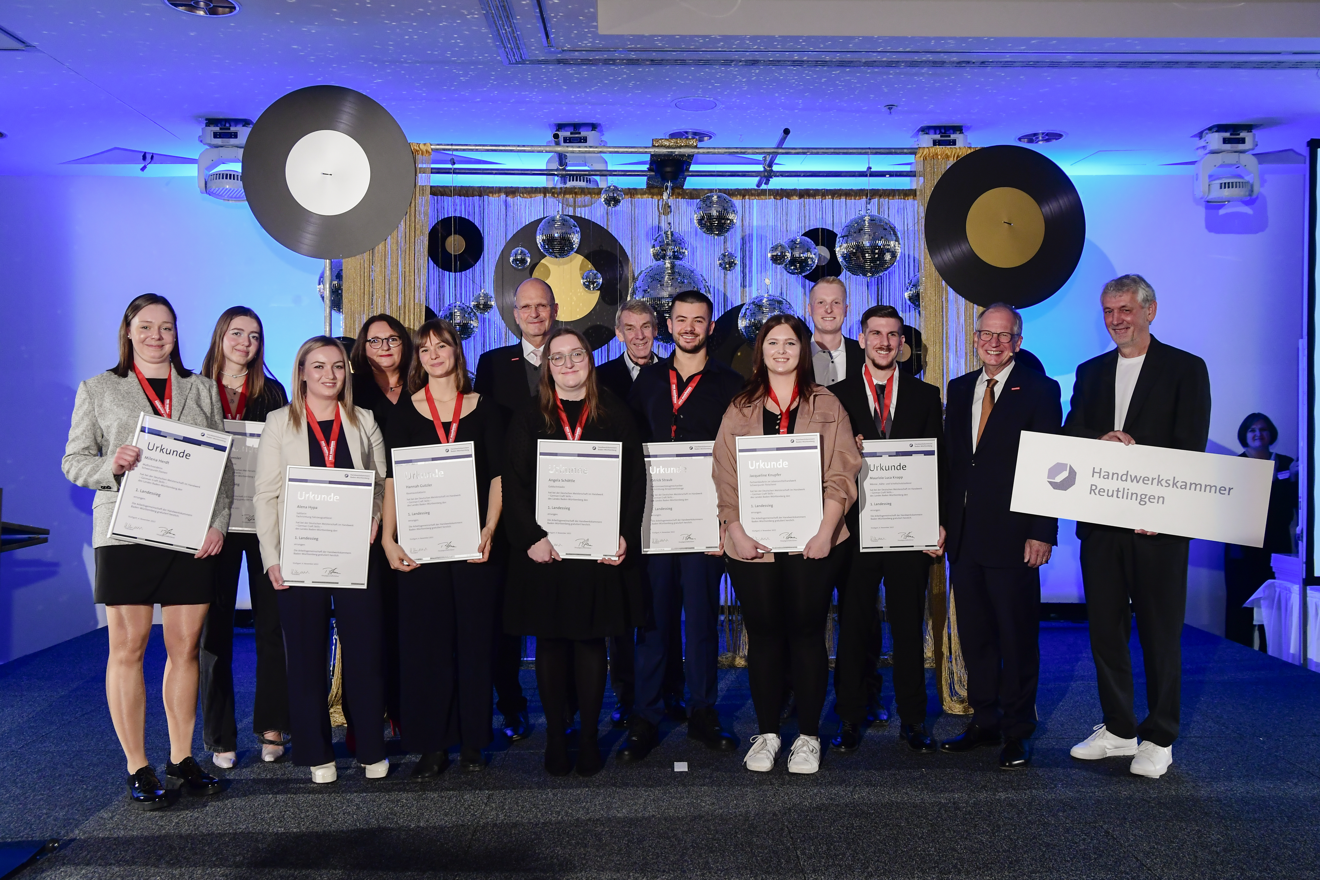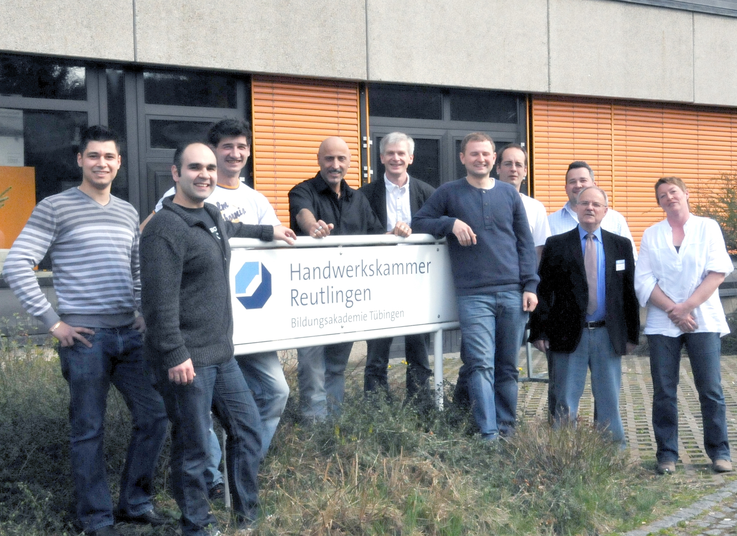Nadine Klamt, Marketing, Ensari Saruhan, Ausbilder Orthopädie-Schuhtechnik, Klaus Fischer, Geschäftsführender Gesellschafter, Lisa Hammes, Auszubildende Orthopädie-Schuhtechnik, Harald Herrmann, Präsident HWK Reutlingen, Ingrid Fischer,Mitglied der Geschäftsleitung,Muhammed-Ali Topal(Momo), Ausgezeichneter Auszubildender Orthopädie-Schuhtechnik,Dr.Joachim Eisert,HGF HWK Reutlingen,Johannes Raaf,Bereichsleiter Orthopädie-Schuhtechnik,Gebhart Höritzer,Vorstand HWK, Gerold Imhof,GF der KHS Tübingen