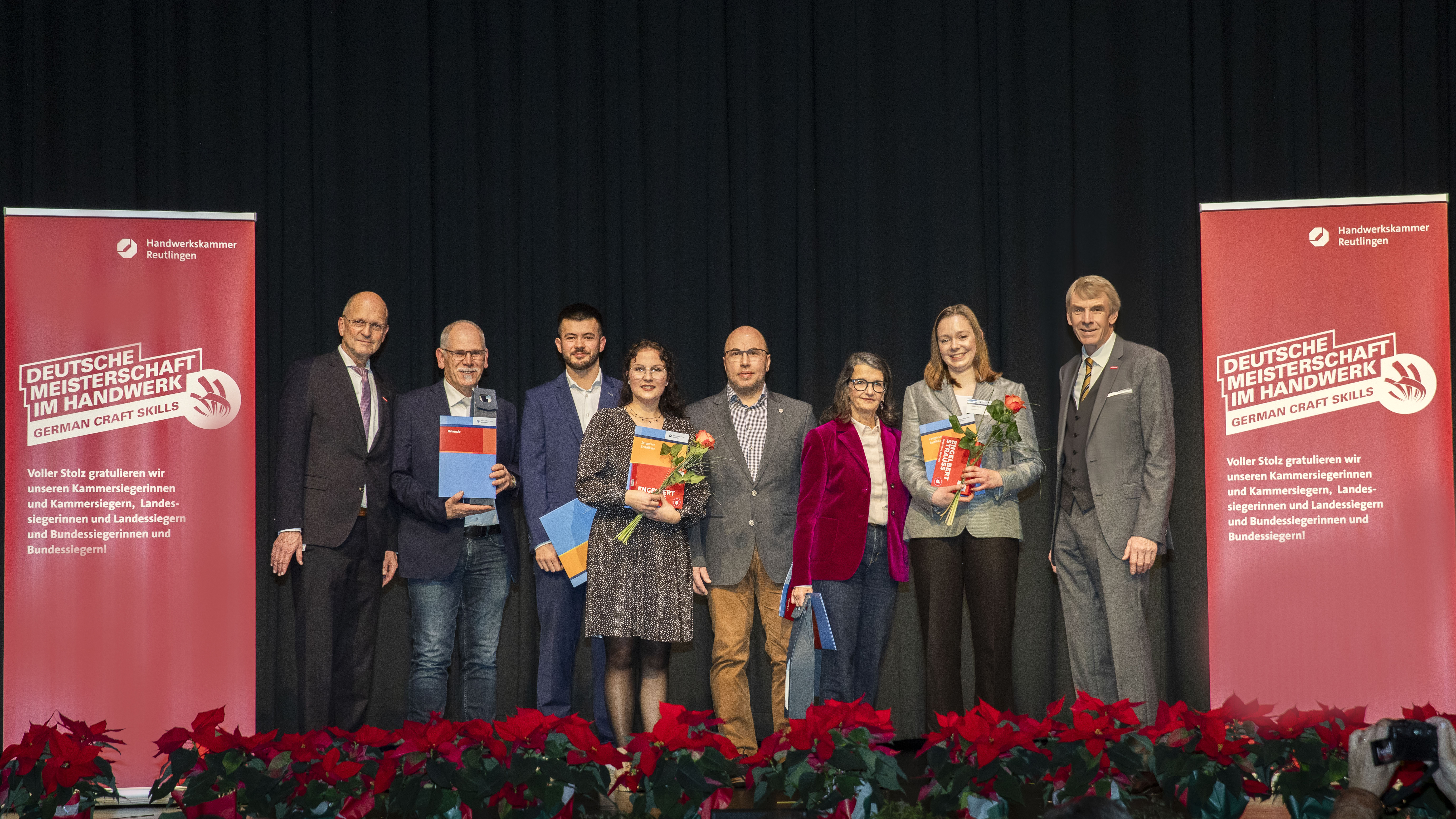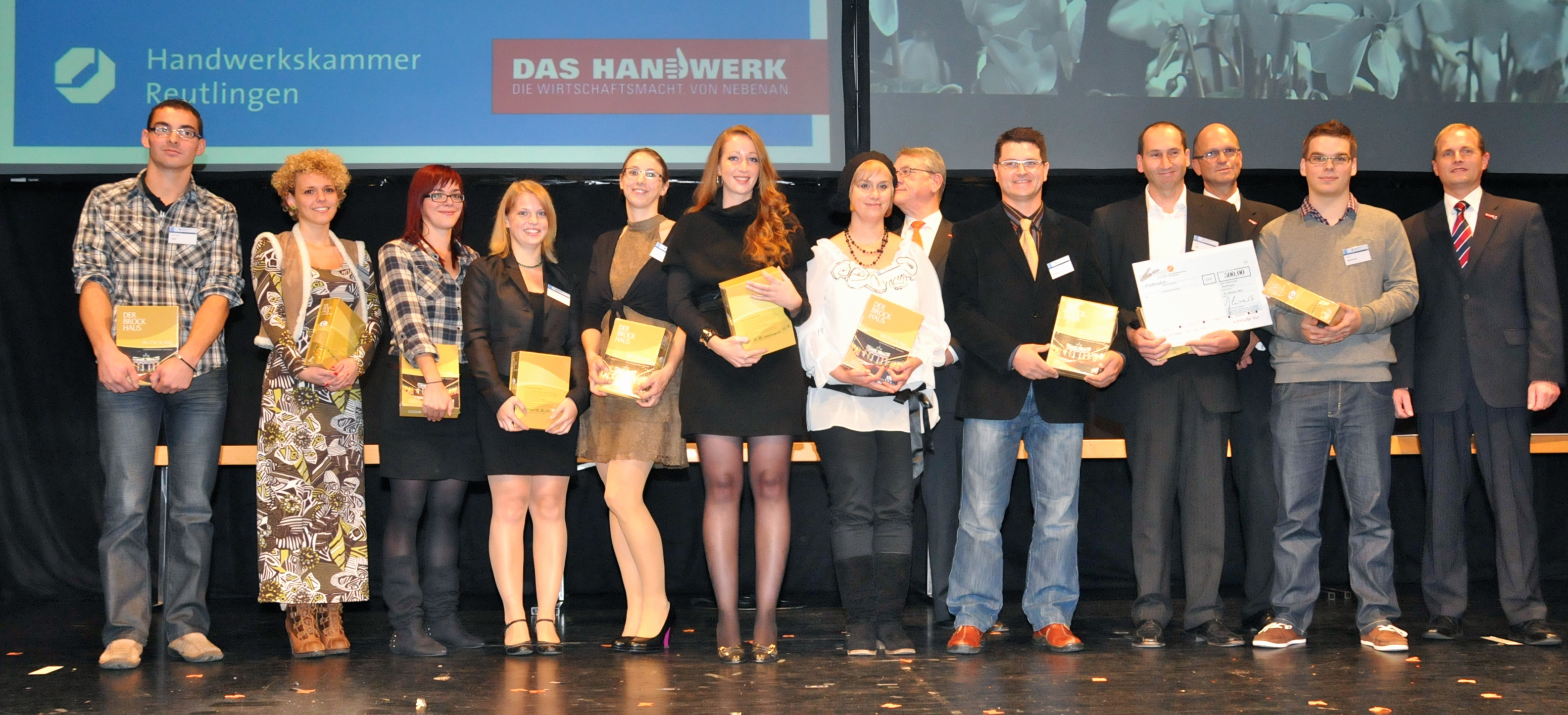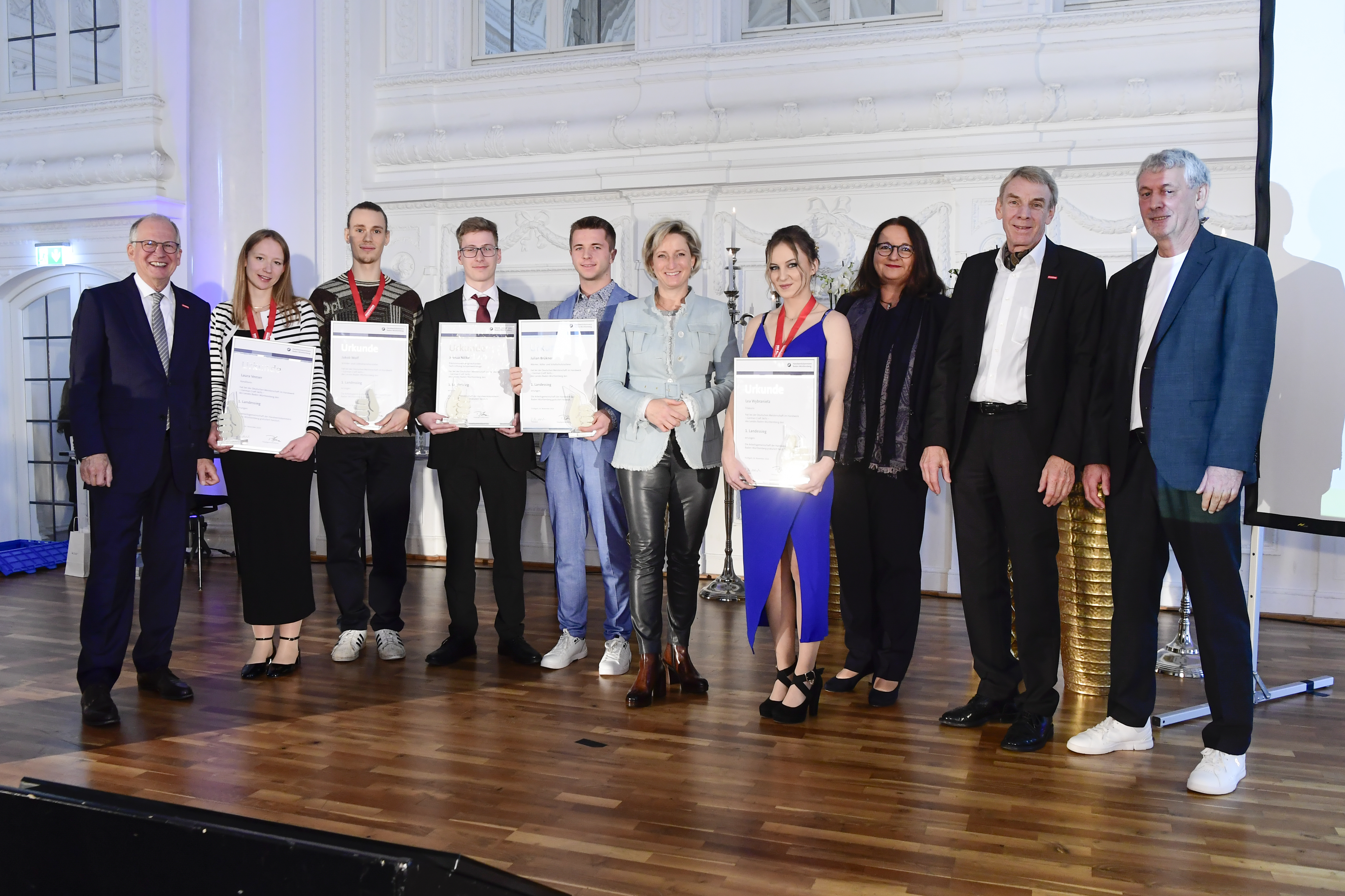 Nadine Klamt, Marketing, Ensari Saruhan, Ausbilder Orthopädie-Schuhtechnik, Klaus Fischer, Geschäftsführender Gesellschafter, Lisa Hammes, Auszubildende Orthopädie-Schuhtechnik, Harald Herrmann, Präsident HWK Reutlingen, Ingrid Fischer,Mitglied der Geschäftsleitung,Muhammed-Ali Topal(Momo), Ausgezeichneter Auszubildender Orthopädie-Schuhtechnik,Dr.Joachim Eisert,HGF HWK Reutlingen,Johannes Raaf,Bereichsleiter Orthopädie-Schuhtechnik,Gebhart Höritzer,Vorstand HWK, Gerold Imhof,GF der KHS Tübingen