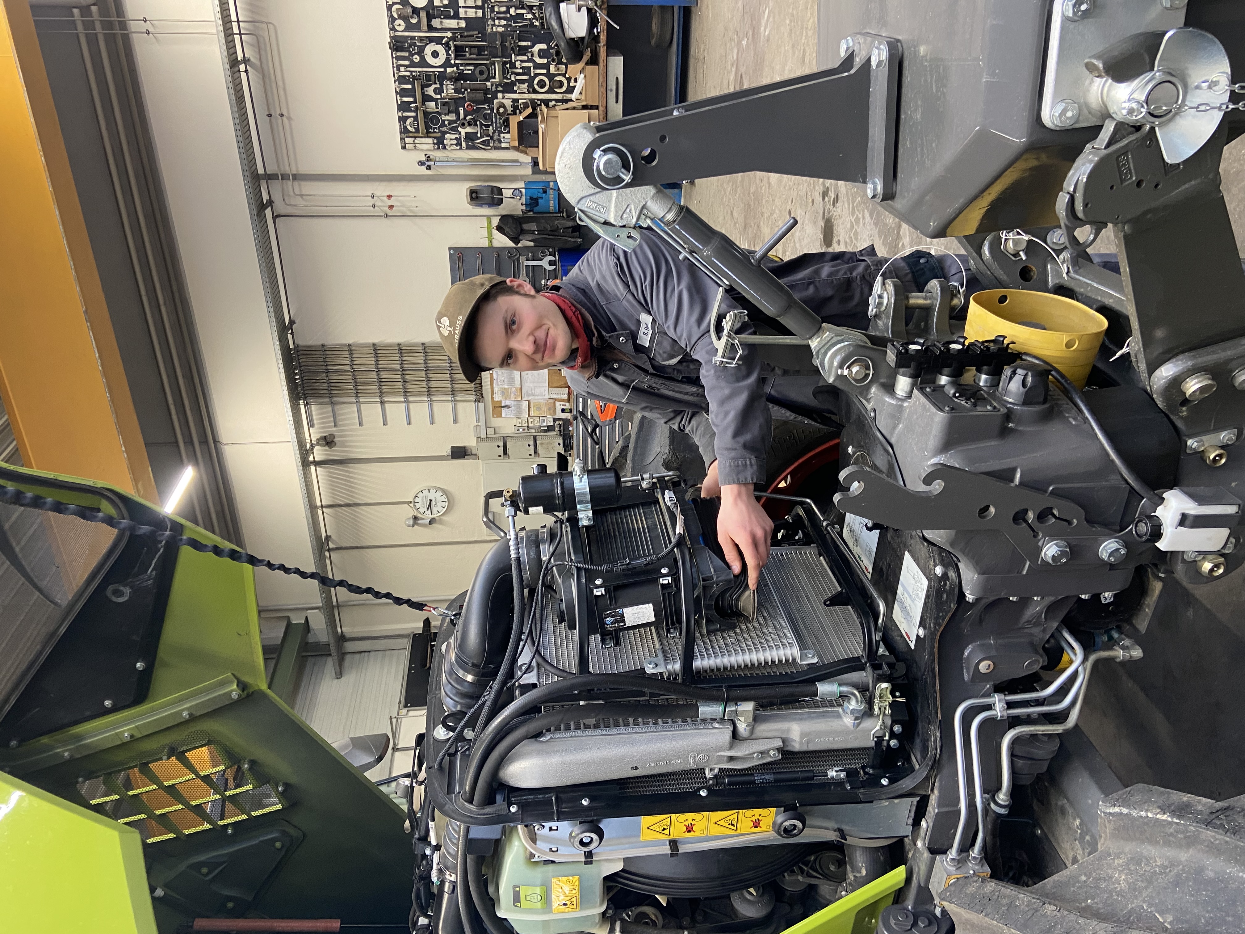 Benjamin Renner wollte schon immer mit Technik arbeiten, die etwas bewirkt: „Die Wartung und Reparatur von Traktoren oder Baggern ist spannend, weil ich sehe, wie wichtig meine Arbeit für die Land- und Forstwirtschaft und die Bauwirtschaft ist.“ Zu den Lieblingstätigkeiten des jungen Mannes gehört die Reparatur von Maschinen für Gülletechnik. Auch Umbauten von Traktoren und die Anfertigung von Sonderteilen findet er spannend. Weniger begeistert ist er von der Reparatur von Rasenrobotern – aber auch hier zeigt er Professionalität.