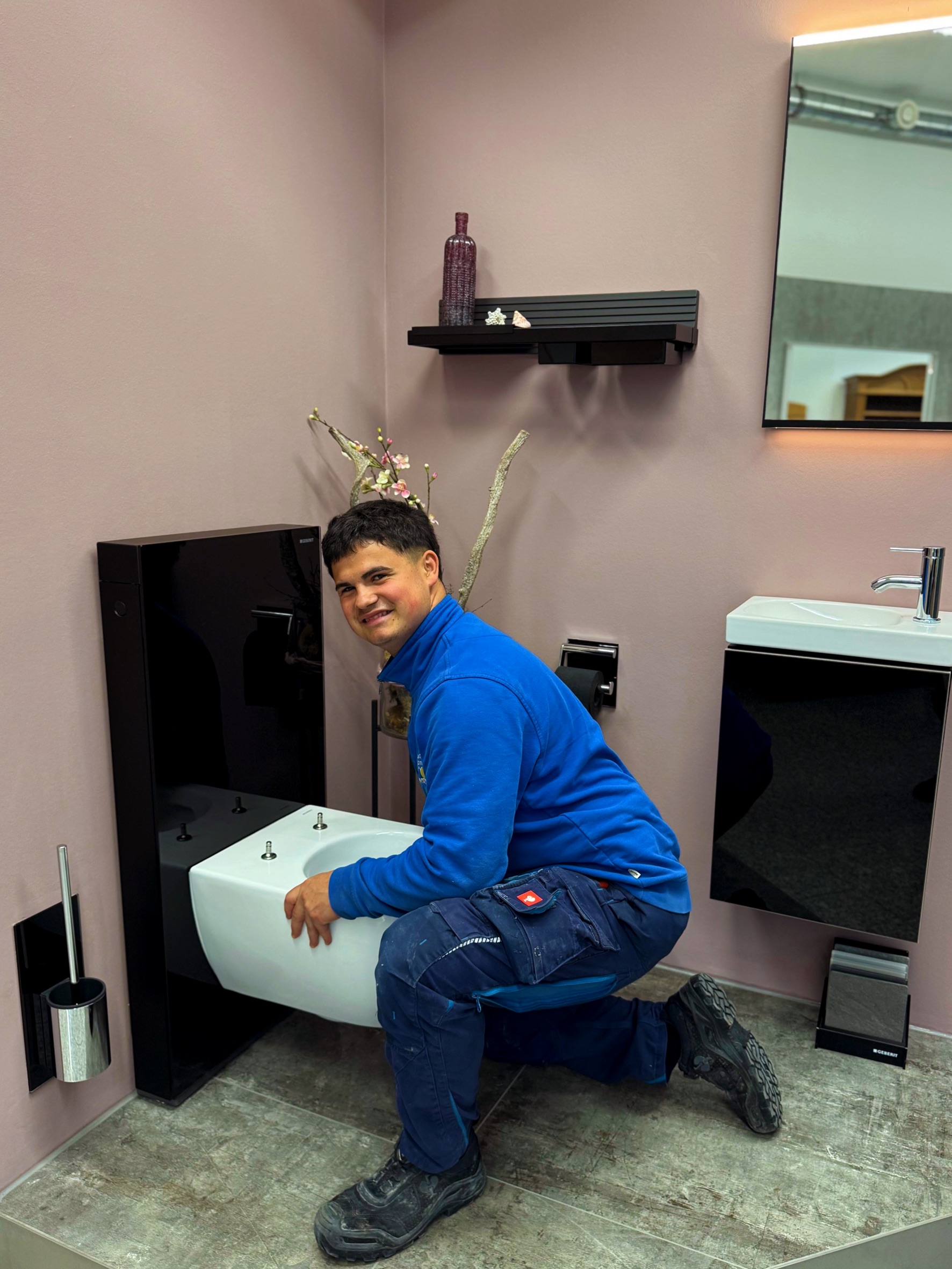 Der Weg von Max David Schmid ins Handwerk begann buchstäblich von Anfang an. Seine Eltern nahmen ihn bereits eine Woche nach der Geburt mit in die Werkstatt. Seitdem war das Handwerk allgegenwärtig: Werkbänke, Werkzeuge, Baustellen, Heizungen und Sanitärinstallationen prägten seinen Alltag. Aus dieser frühen Nähe wurde über die Jahre echte Neugier – und schließlich Begeisterung für Technik und Teamarbeit. Für Max Schmid war es naheliegend, nach seiner Mittleren Reife einen Beruf zu wählen, in dem Kopf und Hände zusammenarbeiten und Ergebnisse direkt sichtbar sind. Auch familiär ist das Handwerk fest verankert: Sein Cousin Kevin Schwab hat bei seinem Onkel gelernt, dann seinen Meister gemacht und teilt sich inzwischen die Geschäftsführung der GmbH mit ihm. Auch der ältere Bruder von Max hat nach seinem Abitur dieselbe Richtung eingeschlagen, arbeitet jedoch nach seinem Studium bei einer Firma im Schwarzwald.