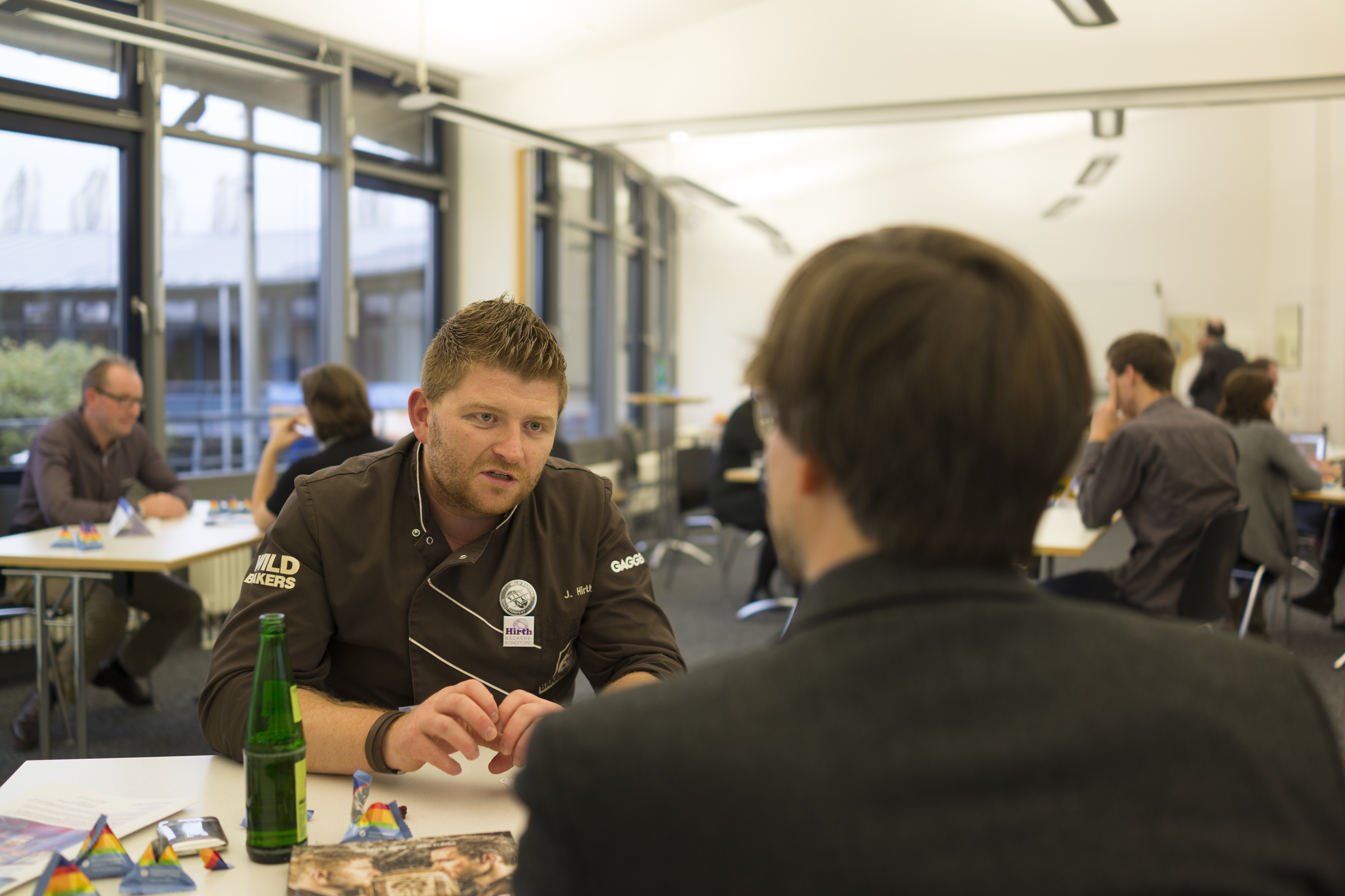 So stellten sich unter anderem Bäckermeister Johannes Hirth jun. und Stuckateurmeister Axel von der Herberg bereitwillig den Fragen der Autoren, wie: Hat man als selbstständiger Handwerker mit zahlreichen Projekten überhaupt noch Zeit für die Familie? Woher nimmt man die Ideen für neue Produkte? Und gab es jemals den Wunsch, etwas ganz anderes zu machen?