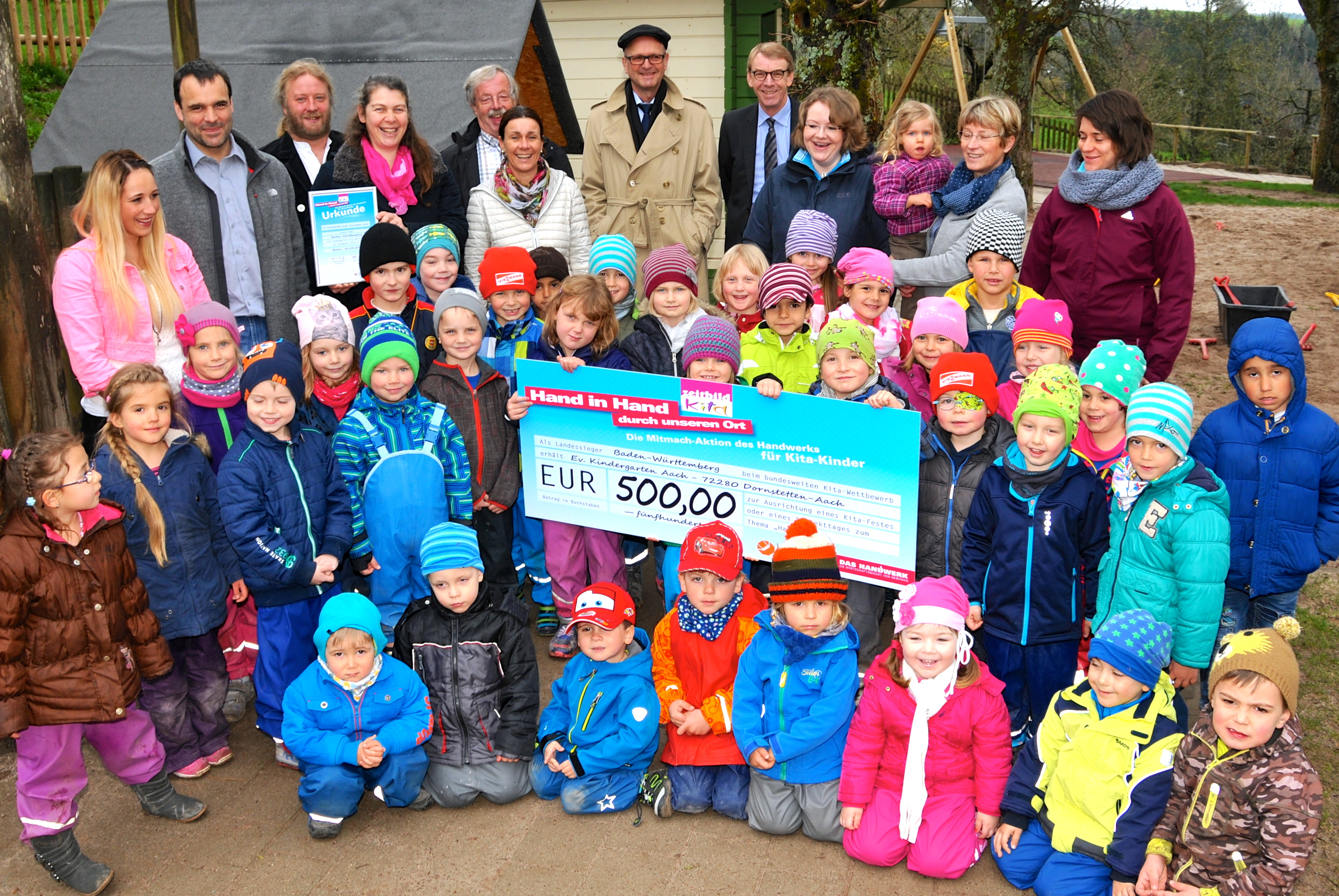 Die Landessieger im bundesweiten Wettbewerb werden im Frühjahr 2017 gekürt und erhalten 500 Euro für ein Kita-Fest oder einen Projekttag zum Thema „Handwerk“. Im vergangenen Jahr wurde der Evangelische Kindergarten Aach (Landkreis Freudenstadt) als Landessieger Baden-Württemberg ausgezeichnet.