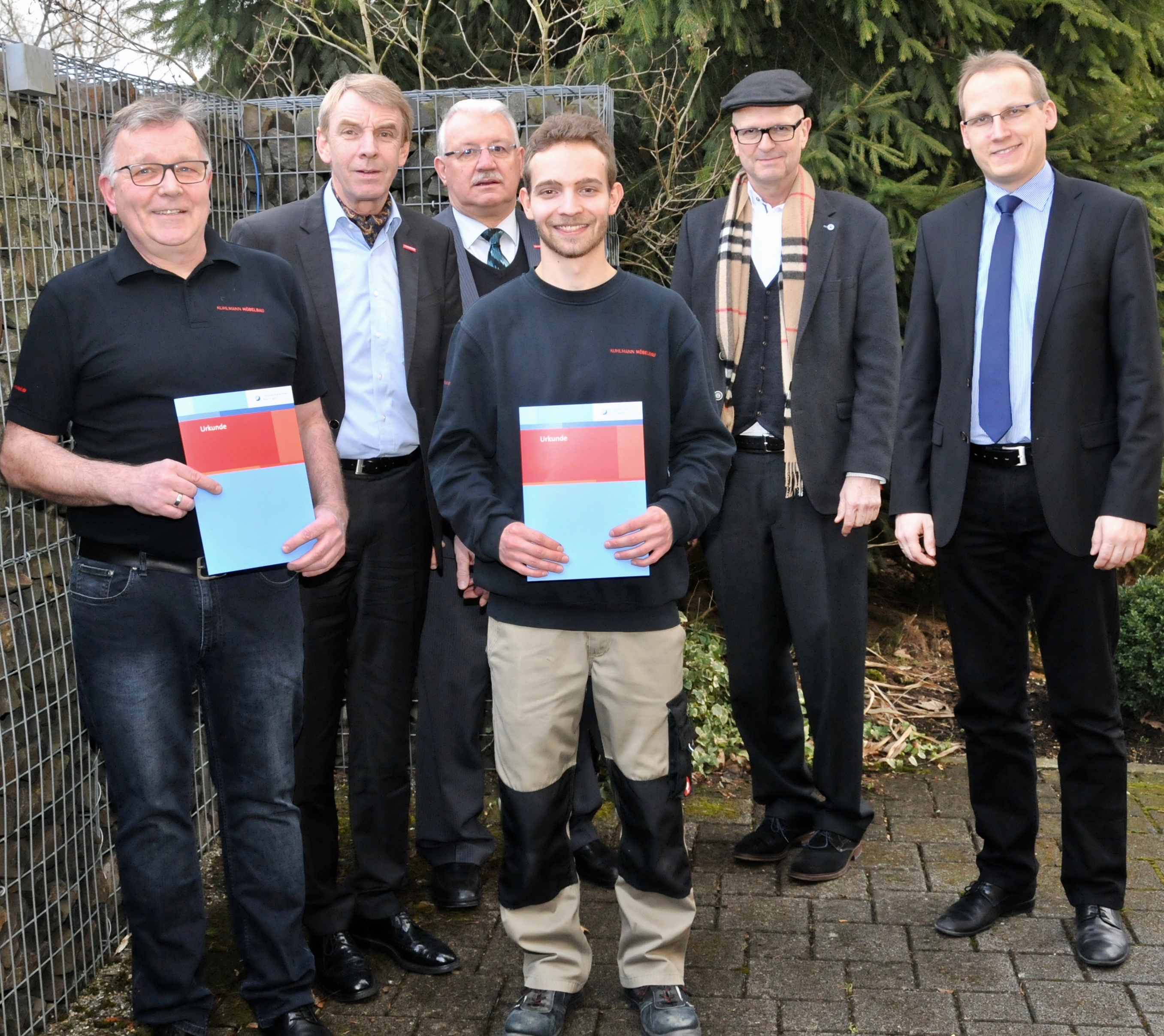 Obwohl eine Lehrzeitverkürzung von 12 Monaten möglich gewesen wäre, wollte er nicht auf den Grundlagenunterricht verzichten und besuchte freiwillig die einjährige Berufsfachschule. "Dadurch konnte Florian die handwerklichen Fertigkeiten wie Sägen oder Hobeln perfektionieren", so sein Ausbilder Michael Kuhlmann. "Auch die Übungen im Betrieb setzte er mit einer Ausdauer und Fleiß um, so dass ich ihm die Planung einer neuen WC-Duschanlage für unsere Werkstatt überließ". Dass er auch diese Aufgabe perfekt bewältigte, ist bei Michael Kuhlmann in der Werkstatt zu besichtigen.