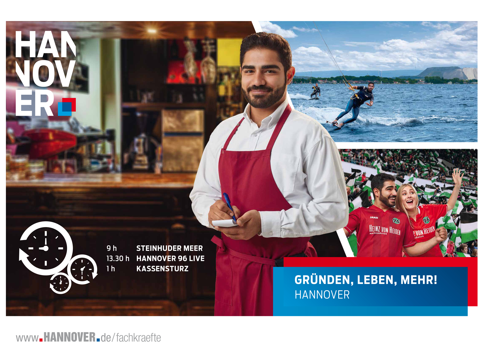(lifepr) (Hannover, 12.05.2016) Die Themenpalette unter www.hannover.de/fachkraefte mit zahlreichen Informationen und Kontakten ist breit gestreut. Neben diversen Fragestellungen zu Ausbildung, Studium und Beruf werden auch ausführlich die vielfältigen Freizeitmöglichkeiten und Serviceangebote dargelegt. Parallel und passend dazu hat die Hannover Marketing und Tourismus GmbH (HMTG) am 12. Mai 2016 eine Plakat- und Postkartenkampagne gestartet, die für die Region Hannover als idealen Standort für Beruf und Leben wirbt. Beide Maßnahmen sind Teil des Standortmarketings der "Fachkräfteallianz Region Hannover".