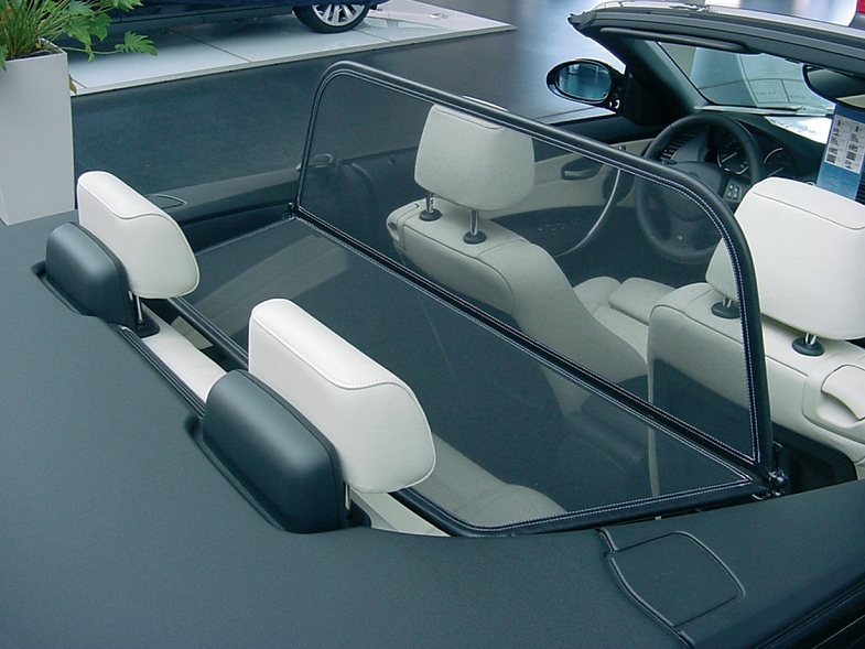 Neu im Programm Windschotts für Audi A3 8P , 1-er BMW Cabrio, Lexus SC430, VW New Beetle Facelift sowie Saab 9-3 ab 2005. Alle Windschotts mit pulverbeschichtetem Stahlrohrahmen , welcher mit schwarzem witterunbdbeständigem Kunstleder überzogen ist. Mittig für optimalen Windschutz das handelsübliche Vinylnetz.