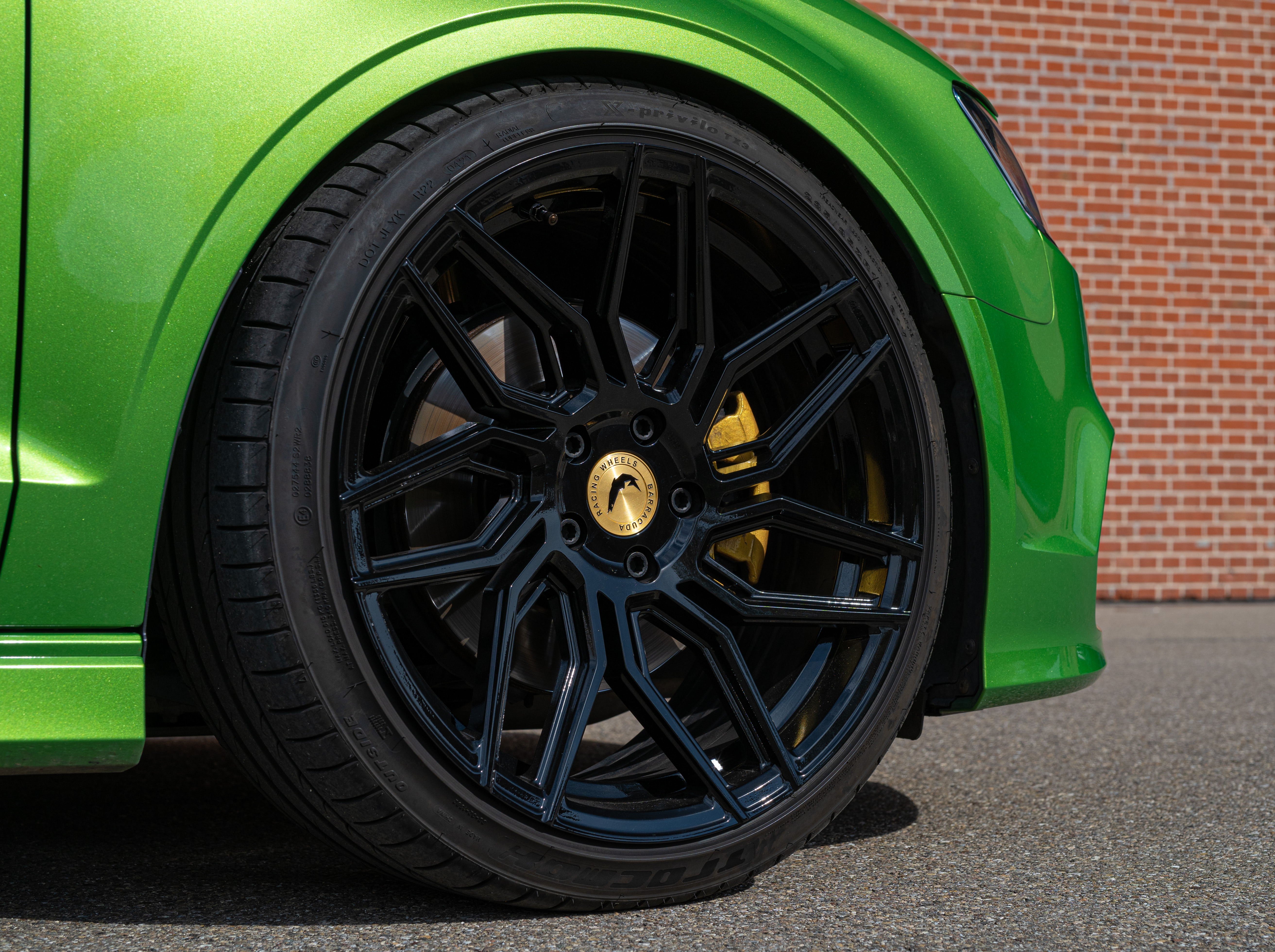 The conversion was carried out by Fahrzeugtechnik EFF, located in Bechhofen in Middle Franconia. The company is an official Barracuda and JMS Fahrzeugteile partner and installed Barracuda's Dragoon wheels on the Cabriolet. These wheels stand out with their asymmetrical design and extreme concavity. They measure 9x19 inches all around and contrast sharply with the car’s green paint thanks to their gloss black finish. Notable accents include the golden center caps. The tires are sized 235/35R19.