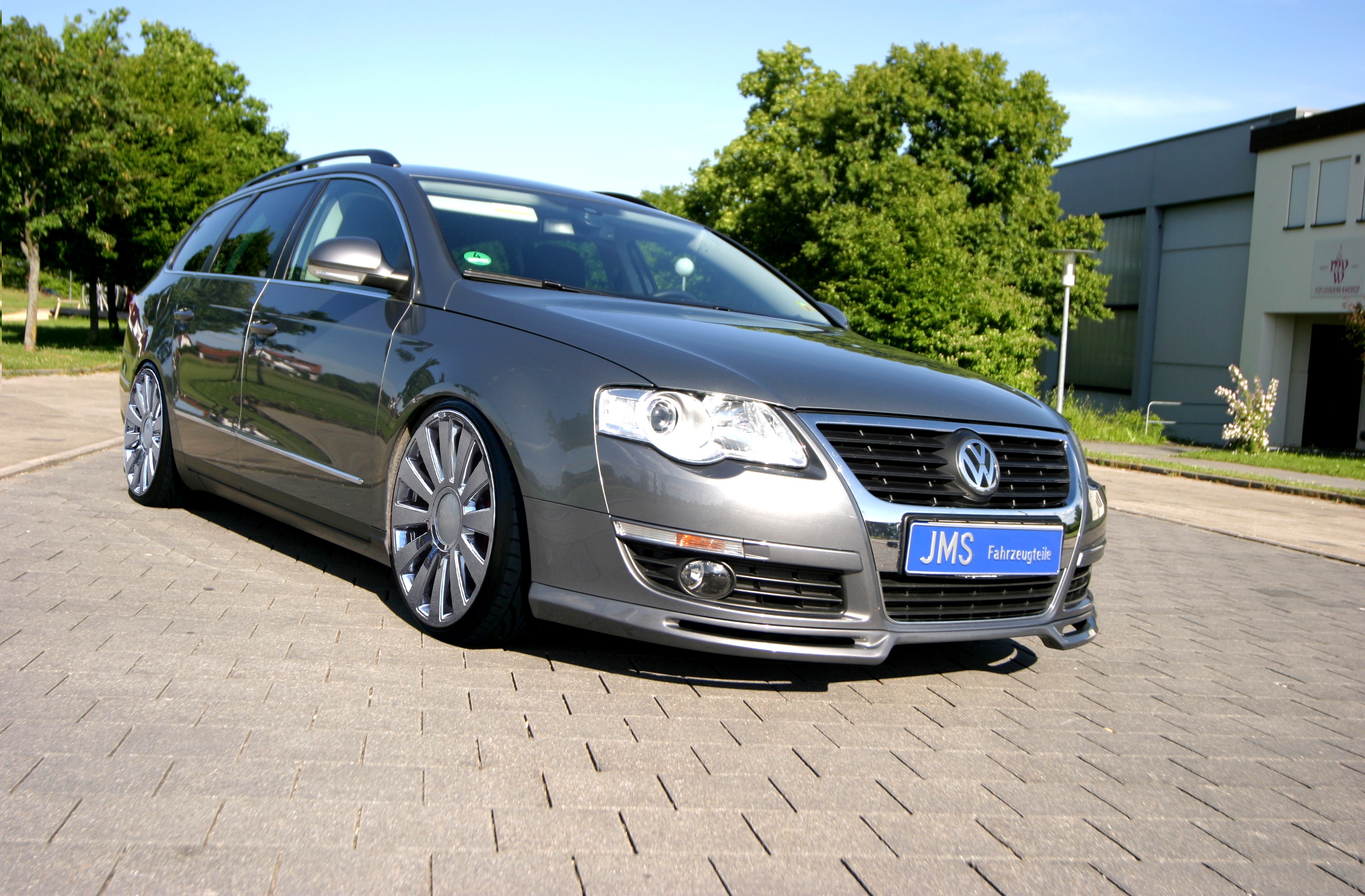 (lifepr) (Walddorfhäslach, 15.06.2009) Der VW Passat 3C wirkt mit der Veredlung von JMS sehr sportlich. Um der Familienkutsche einen sportlichen Charakter zu verleihen, nahm JMS den aktuellen Passat 3C unter seine Fittiche. Eine neue Frontspoilerlippe(Euro 239), die sich dezent, aber wirkungsvoll an das Serien-Design anlehnt, verleiht ein sportliches Profil. Die Lippe ist gerade einmal ca. 3cm tiefer wie die Serienfront und somit kommt es im Alltagsgebrauch zu keinen grossen Einschränkungen.