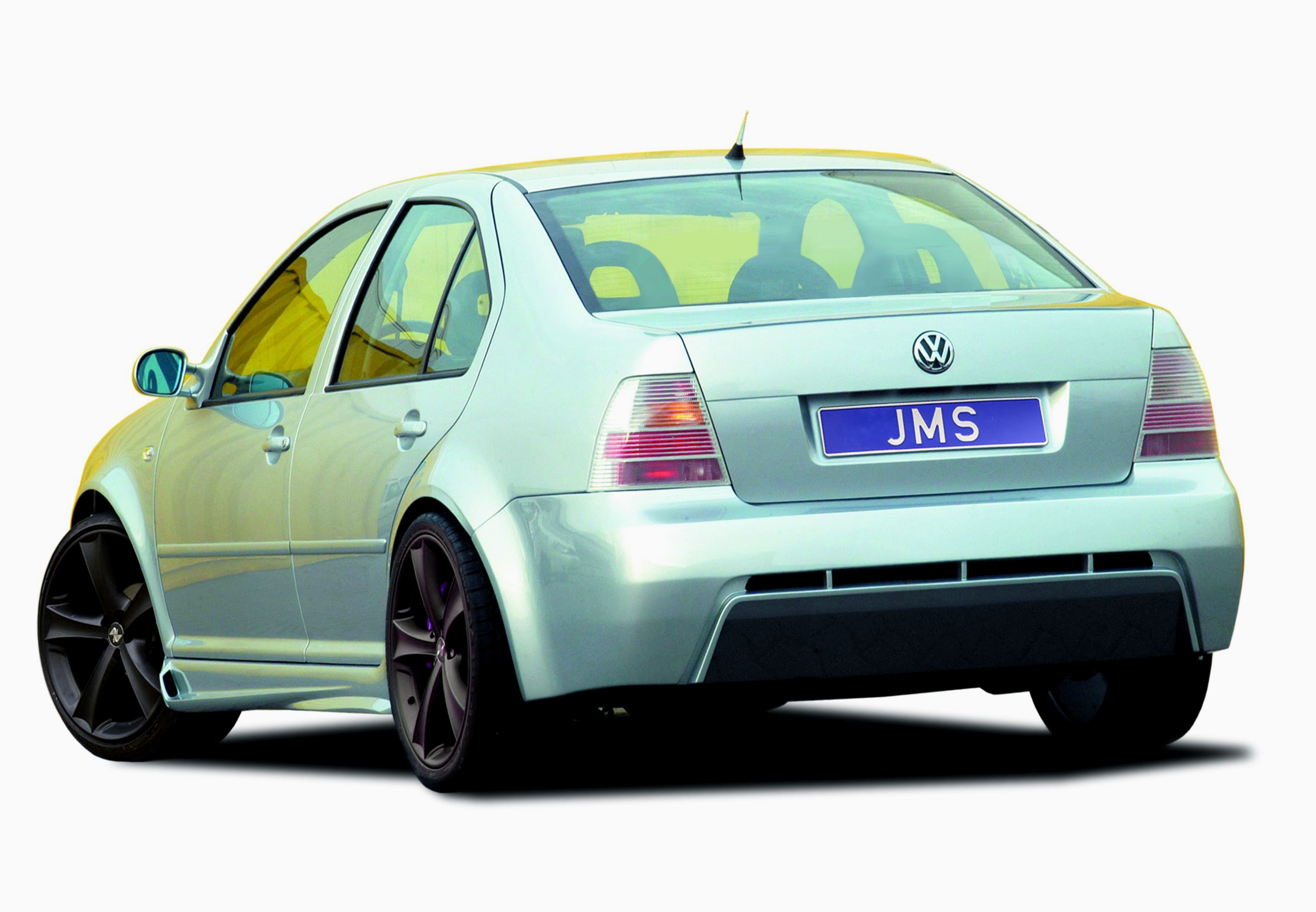 The bodykit presented consists of a front bumper (359€) with 3 big cutouts. The customer can choose the type of vents to be used, from black to silver or with or without opening for the foglights.A other highlight is the hood including bad look and opening for more racing look , but for this bonnet not good news for the bora drivers.This part is only a sample and no production . The sideskirts(269 Euro) can be fitted on all versions of the VW Bora and have air ducts on the front end. At the back a special complete rear bumper (349 Euro) . For this rear bumper all exhaust systems are possible. All parts from JMS TÜV approved and real "Made in Germany". JMS give the guarantee for perfect fitting .