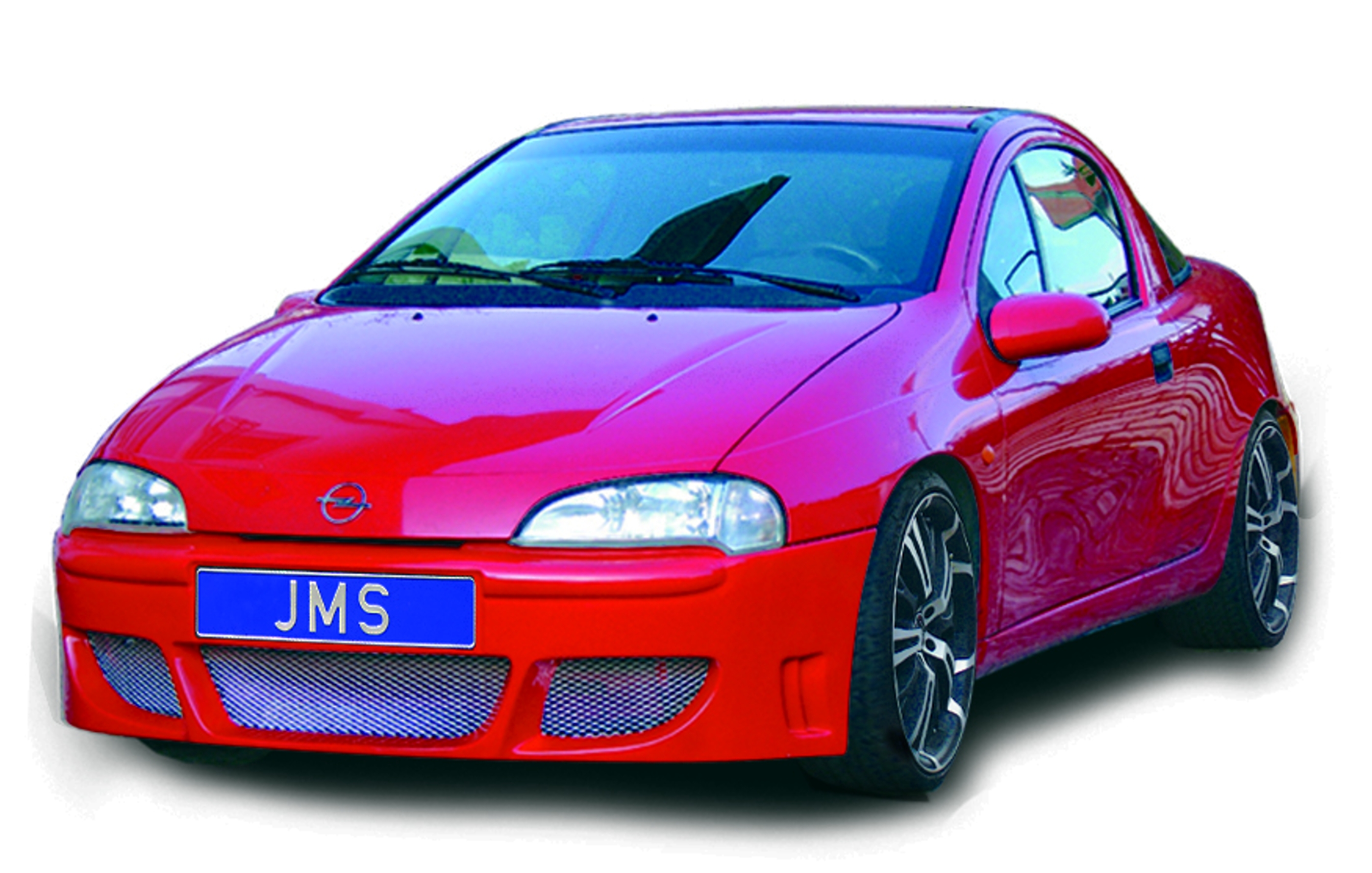 (lifepr) (Walddorfhäslach, 25.01.2010) Now jms have for the tigra a new stylingparts. Racelook Frontbumper (Euro 269) and rear apron (189 Euro). Optional you can get for the front and rear silver or black screen for the openings (19,90/24,90 Euro).For the perfect performance jms offer a special suspension kit with 55mm front and 40mm (Euro 329). So that the wheel houses are filled, jms fits front & back 17 inch barracuda Tzunamee wheels and 205/40R17 tyres (1199 Euro). Last for the good sound you can get a group a exhaust system from jms (Euro 399).