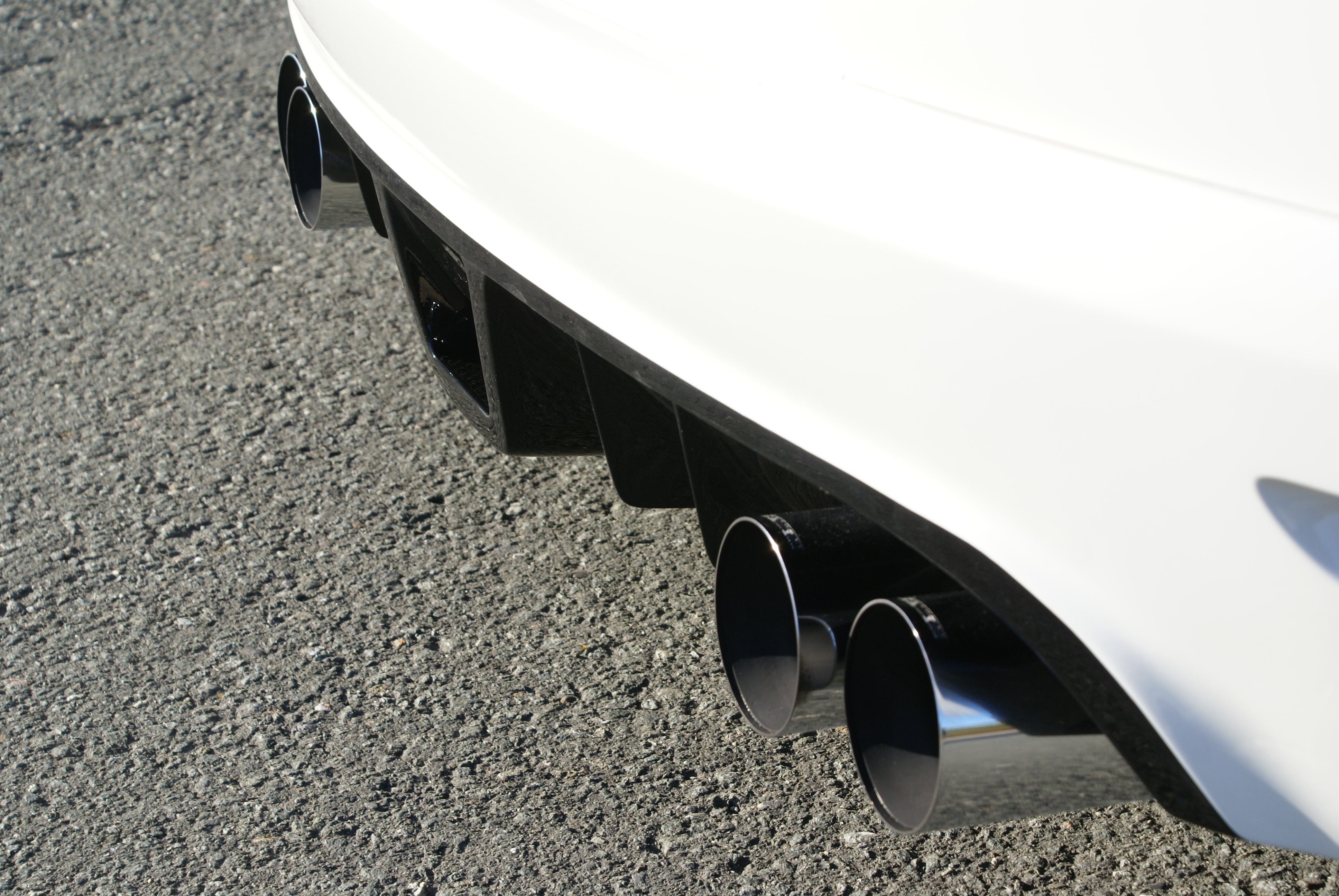 The bodykit, especially tailor-made by JMS, is a spectacular package. In the front, a Racelook front lip spoiler which lowers 3cm the front of the car(239 Euro). In the rear, a special rear apron with diffuser stripes and real carbon insert (Euro 259) excellently harmonizes with the 4-pipe rear muffler. But also a two pipe muffler is possible to fit.