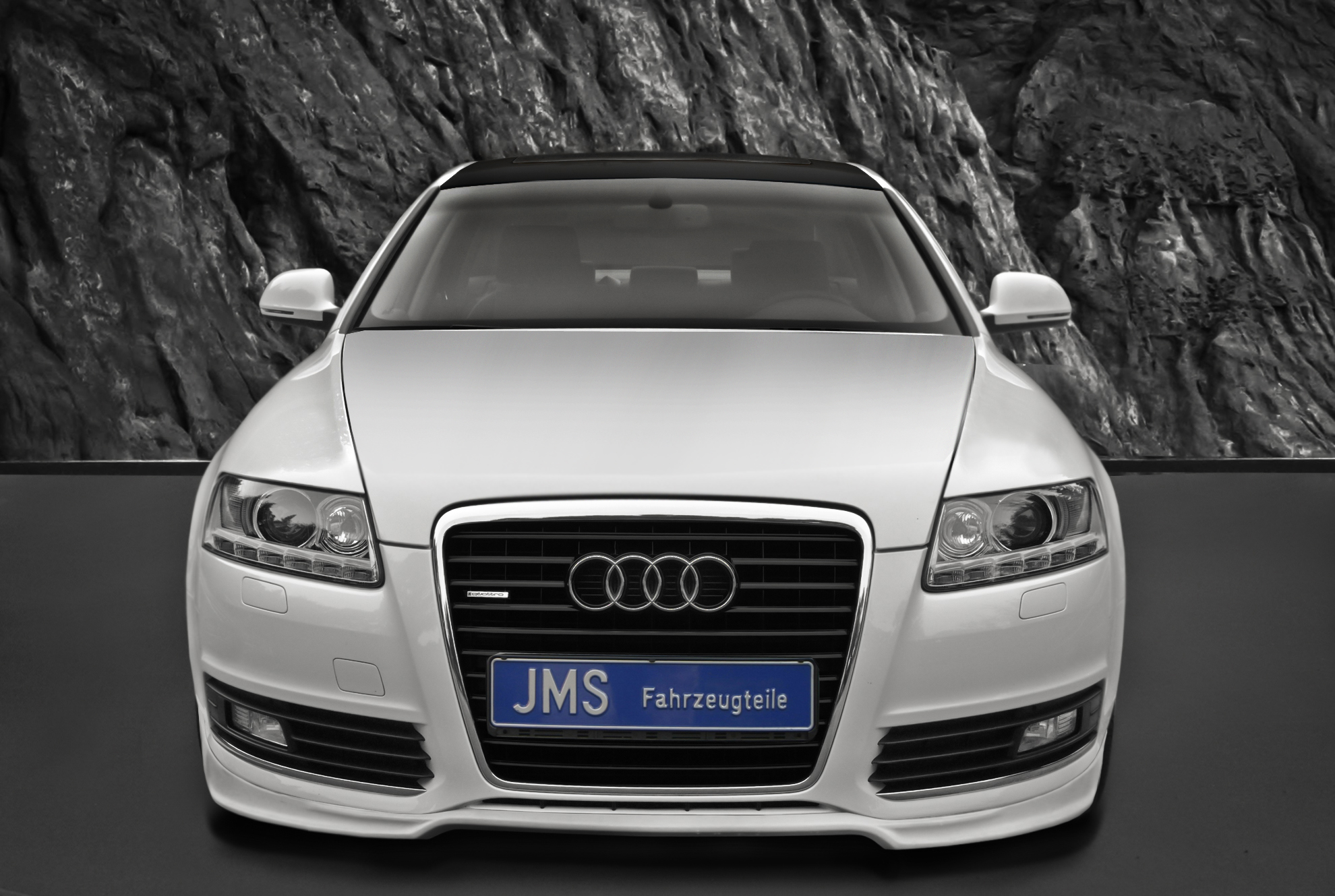 (lifepr) (Walddorfhäslach, 14.01.2012) JMS fahrzeugteile gmbh creates a new front apron for the audi a6 4f facelift. The a6 front lip spoiler jms racelook exclusiv line (239 Euro) fits on all facelift versions without s-line.With this part the car get a really sportiv look. In order to the maximize the driving performance the a6 4f has been equipped with an kw stainless steel coil over kit version 1 (1099 Euro), that lowers the car at the front 60mm and at the rear 50mm.The whole treatment is completed with asa ar1 rs race wheel in the dimension front and back 8,5x19 with 2453519 tyres (1999 Euro).