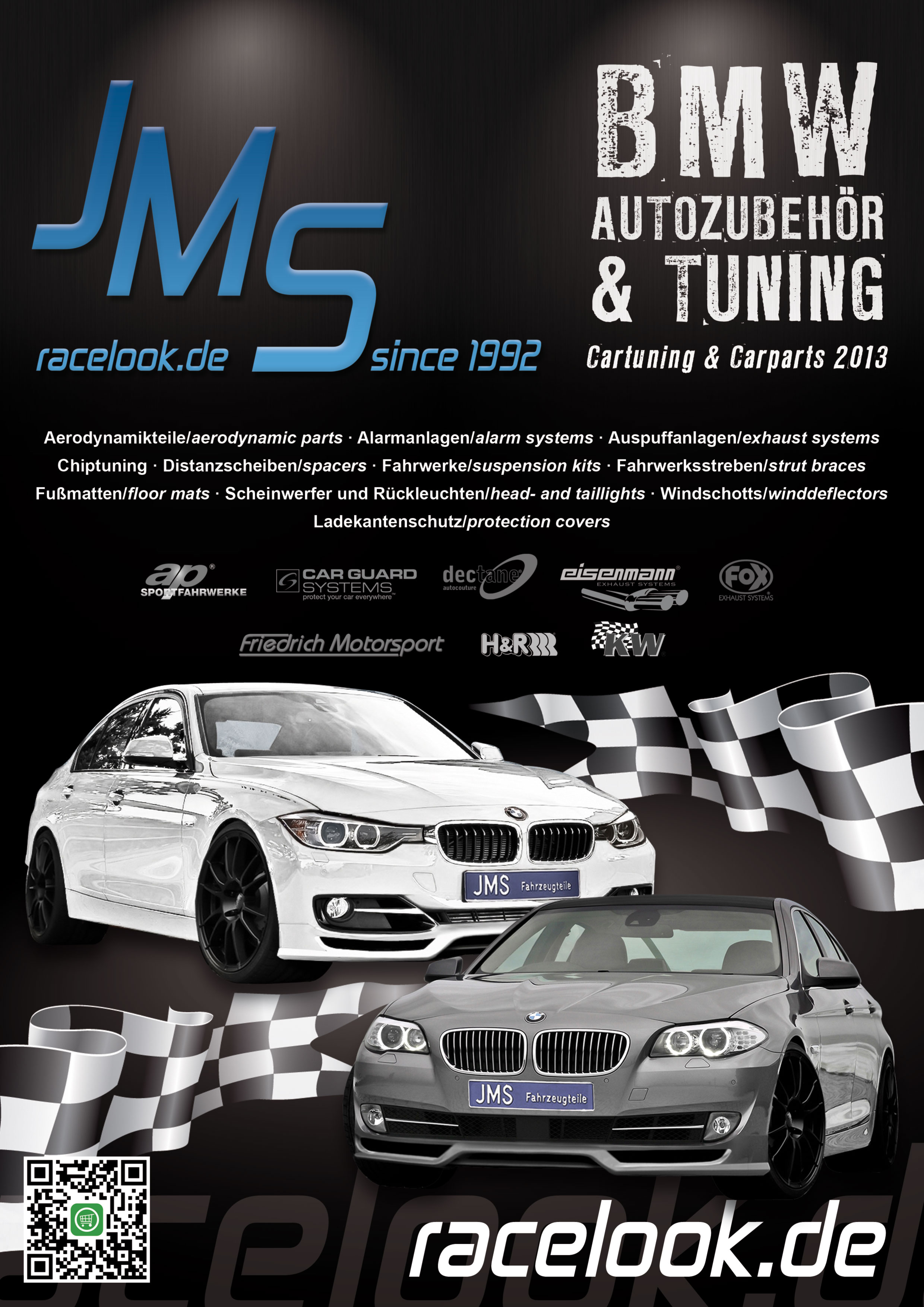JMS have only famous producers with tüv aprroved products in the catalog. No negativ adventure with this parts. The following companys are listed in the catalog: AP suspension kits, eisenmann exhausts, jms racelook, rieger tuning, lexmaul, lumma tuning, fox exhausts, weitec,hamann motorsport, kelleners,kerscher tuning, friedrich motorsport, ragazzon , dectane, kw, h&R and scc.