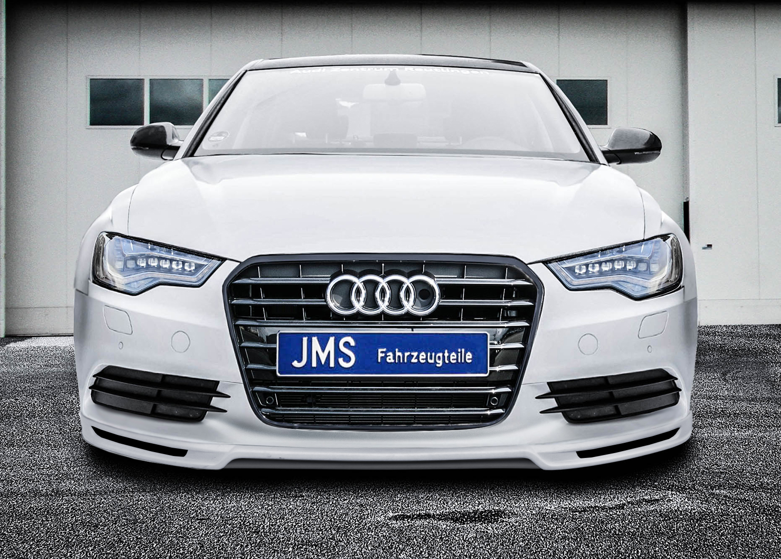 Die Komponenten der Veredelung im Einzelnen: Die neue Frontlippe JMS Racelook exclusiv Line mit mittigem Diffusorbrett , passend für das neue A6 4G Modell Limousine und Avant ohne S-Line (Euro 319), die Lippe wird einfach auf der Serienfront verklebt und zusätzlich mit Schrauben im Radlauf befestigt. Da das Originaldesign fortgeführt wird, integriert sich das Anbauteil perfekt.r. Lt. JMS ist die Alltagstauglichkeit nicht eingeschränkt, da das Fahrzeug mit dem Stylingelement gerade mal 2,8cm tiefer ist wie Serie.