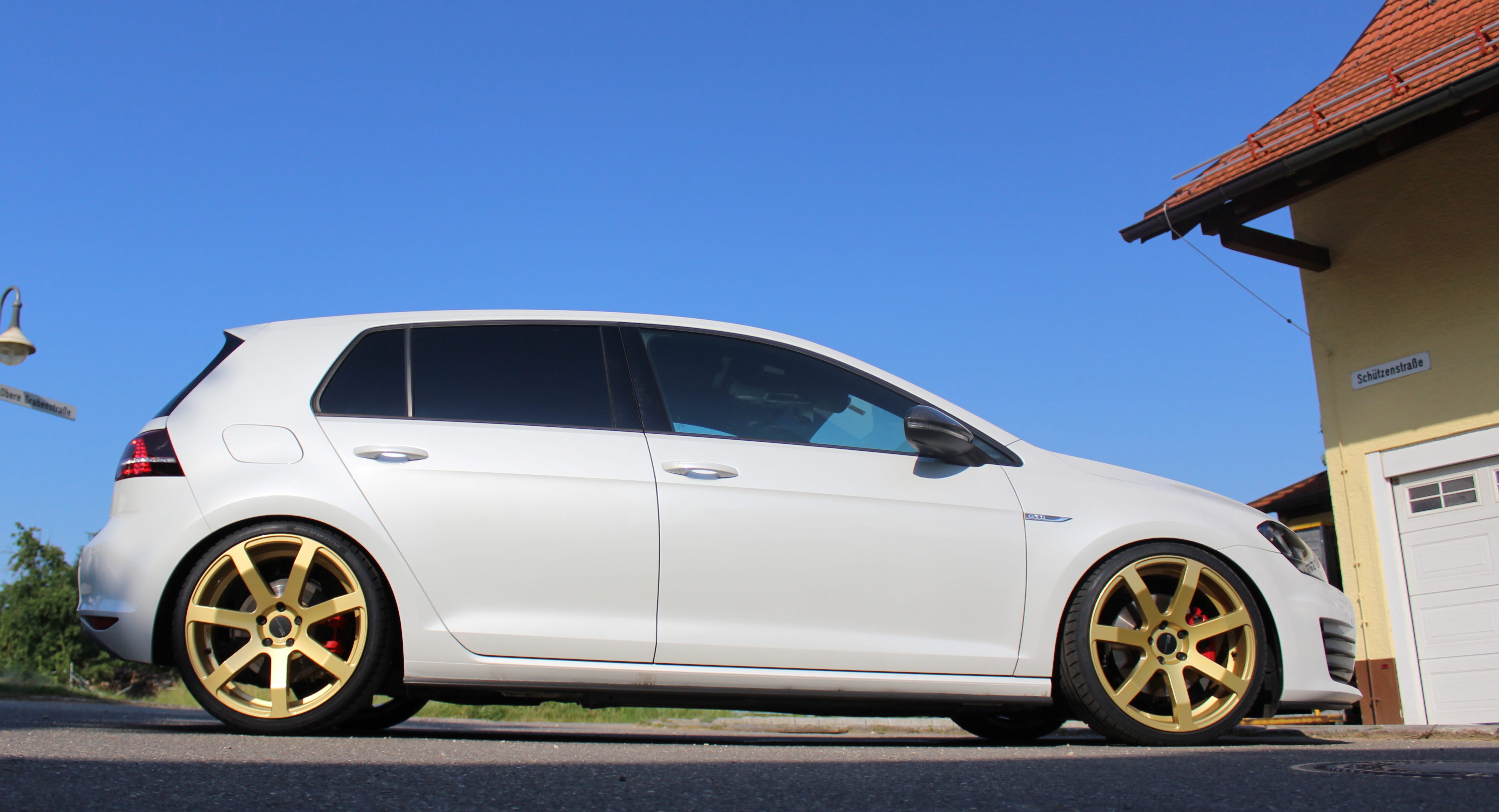 Bei diesem VW Golf 7 wurde die Cor.Speed Challenge im Sonderfarbton „Your paint gold“ (Aufpreis 140 Euro) in den Größen 8,5x19 Zoll (ab 339 Euro) vorne und 9,5x19 Zoll (359 Euro) hinten verbaut. Die Dimensionen der aufgezogenen Bereifung betragen 225/35R19 und 245/30R19. Zur Montage dieser Rad/Reifen-Kombination sind leichte Nacharbeiten an der Hinterachse erforderlich Für diese Kombination besteht ein Teilegutachten (in Verbindung mit 10-mm-Distanzescheiben an der Hinterachse), sodass sie problemlos in die Fahrzeugpapiere eintragbar ist.