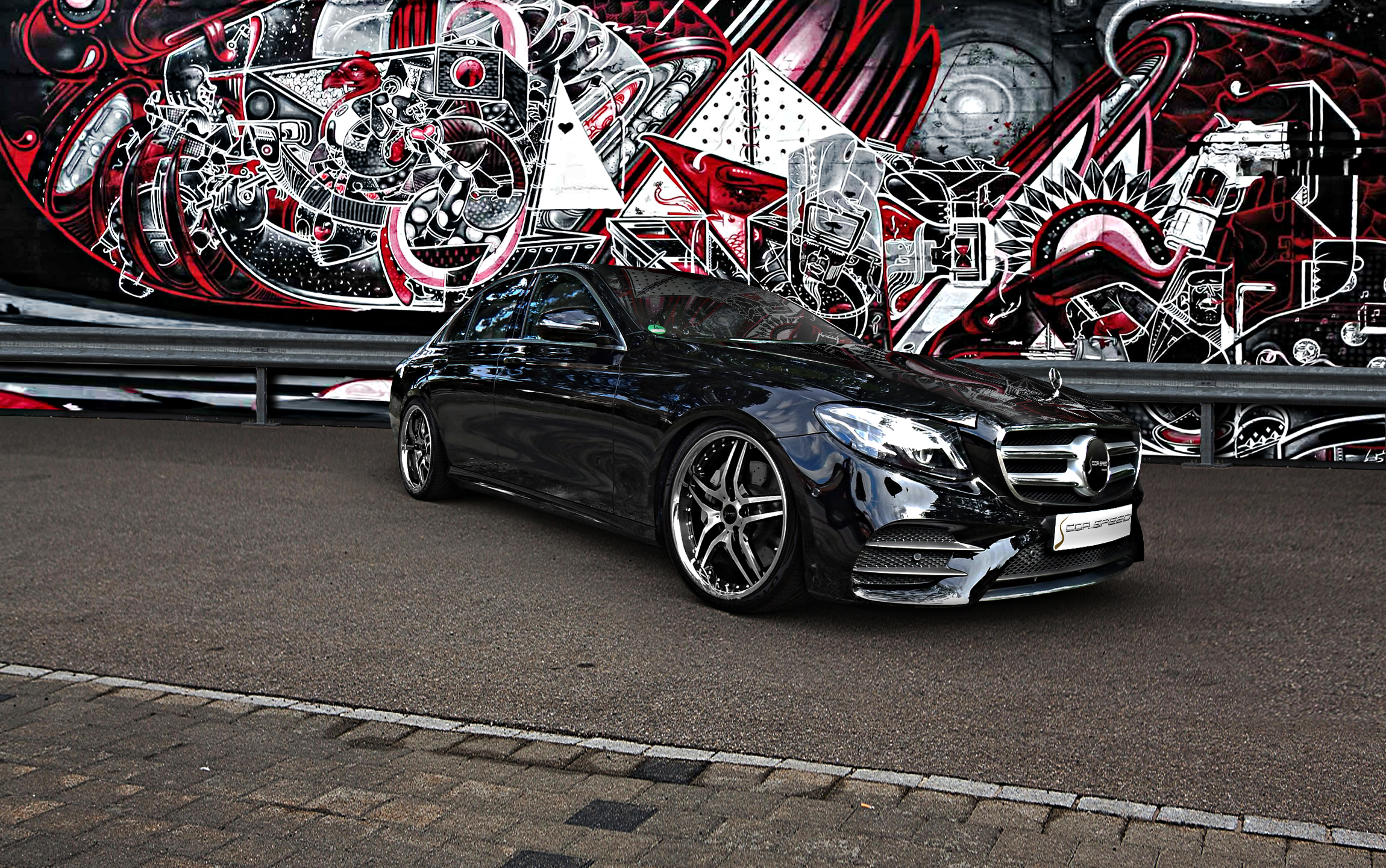 (lifepr) (Walddorfhäslach, 06.09.2016) Die Räder des Felgenlabels Cor.Speed Performance Wheels zeichnen sich seit jeher durch ihr sportliches Felgendesign weitab vom Standard aus. Dies stellt auch diese Mercedes-Benz E-Klasse-Limousine (W213) unter Beweis: Sie verfügt über das 5-Speichen-Rad Cor.Speed VEGAS im Finish Higloss Black Polished mit Inox Lip in den Größen 8,5x20 Zoll (ab 474 Euro) vorne und 10x20 Zoll (503 Euro) hinten. Die Felge besticht durch ihre Konkavität, die bereits an der Vorderachse gut sichtbar und an der Hinterachse nochmals deutlich ausgeprägter ist. Die Dimensionen der aufgezogenen Bereifung betragen 245/35R20 und 275/30R20. Zur einwandfreien Montage der Rad/Reifen-Kombination sind leichte Nacharbeiten an den Radläufen der Hinterachse erforderlich. Darüber hinaus werden spezielle 15-Millimeter-Barracuda-Distanzscheiben für die hintere Achse benötigt sowie 10- mm-Scheiben für die Vorderachse.