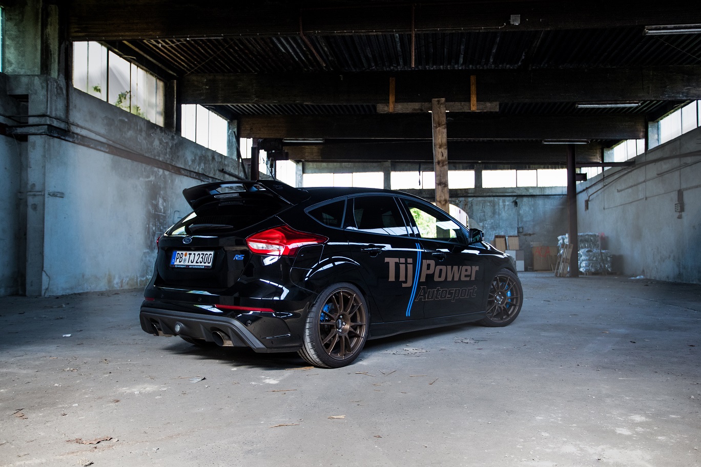 (lifepr) (Walddorfhäslach, 08.09.2016) Tij-Power aus dem schönen Paderborn in Ostwestfalen hat sich die aktuelle Knallbüchse von Ford vorgenommen - den Focus RS MK3. Schon als Serienfahrzeug ist der RS kein Kind von Traurigkeit, und kommt mit sportlichen Features wie Launchcontrol, intelligenten Allradantrieb und einem einstellbaren Fahrwerk daher. Aus diesem Grunde bleiben die Modifikationen von Tij-Power auch dezent und haben dabei doch große Auswirkungen. Die 2-fach einstellbaren Stoßdämpfer werden dabei durch ein Gewindefahrwerk aus dem Hause KW ersetzt. Die Variante 3 ist dabei in der Höhe und zusätzlich noch in Zug- und Druckstufe separat einstellbar. Weiterhin ersetzt Tij-Power die serienmäßigen Felgen durch leichte OZ Ultraleggera in der Dimension 8.5x19ET45, welche mit Reifen in Seriengröße 235/35-19 bestückt sind. Diese Kombination aus perfekt eingestelltem Gewindefahrwerk und Reduzierung der ungefederten Massen, verwandeln das Auto immens. Das Einlenkverhalten wird noch agiler, und die Kurvengeschwindigkeiten sind für ein straßenzugelassenes Auto dieser Klasse "Jenseits von Gut & Böse"!