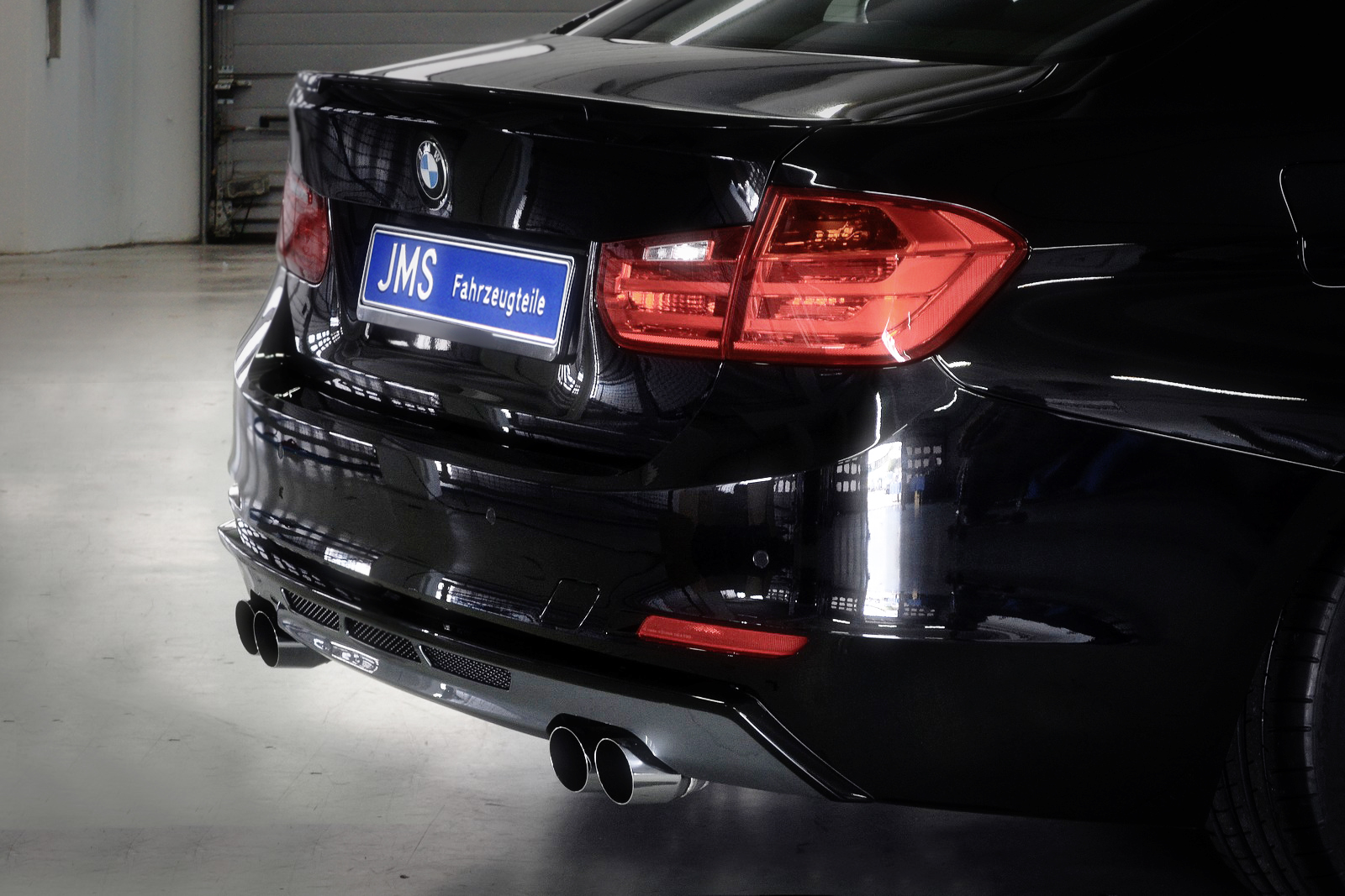 Die Spezialisten aus Walddorfhäslach haben ab sofort neue Aerodynamik-Anbauteile für Fahrzeuge der Baureihen F30 und F31 im Programm. Für Exemplare mit M-Sportpaket bietet JMS das hauseigene Racelook-Frontspoilerschwert (319 Euro) an. Das Heck von 3er BMW ohne M-Sportpaket kann hingegen durch einen Racelook-Heckdiffusor (299 Euro) aufgewertet werden. Dieser verfügt nicht über vorgefertigte Ausschnitte und kann somit an jede Abgasanlage angepasst werden – beispielsweise an den Eisenmann-Edelstahl-Endschalldämpfer mit vier 83-Millimeter-Endrohren (1.740 Euro). Ein Racelook-Heckspoiler (229 Euro) rundet das Aerodynamikteile-Portfolio ab. Er passt sowohl bei Modellen mit als auch bei solchen ohne M-Sportpaket.
