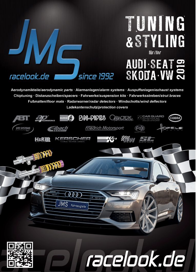 Der komplette Tuning-Katalog 2019 für Audi, Seat, Skoda und VW von JMS Fahrzeugteile ist durchzublättern und/oder herunterzuladen unter: https://www.jms-fahrzeugteile.com/media/kataloge/katalog-audi-vw-skoda.pdf