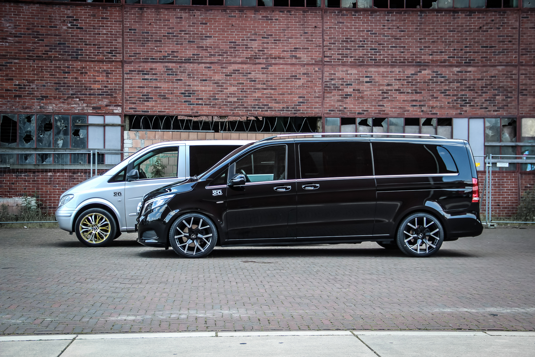 Lowering the V-Class by some 40 millimeters, special springs from H&R are also fitted – so that it is not only the new wheels that make the big Mercedes more dynamic on the road.