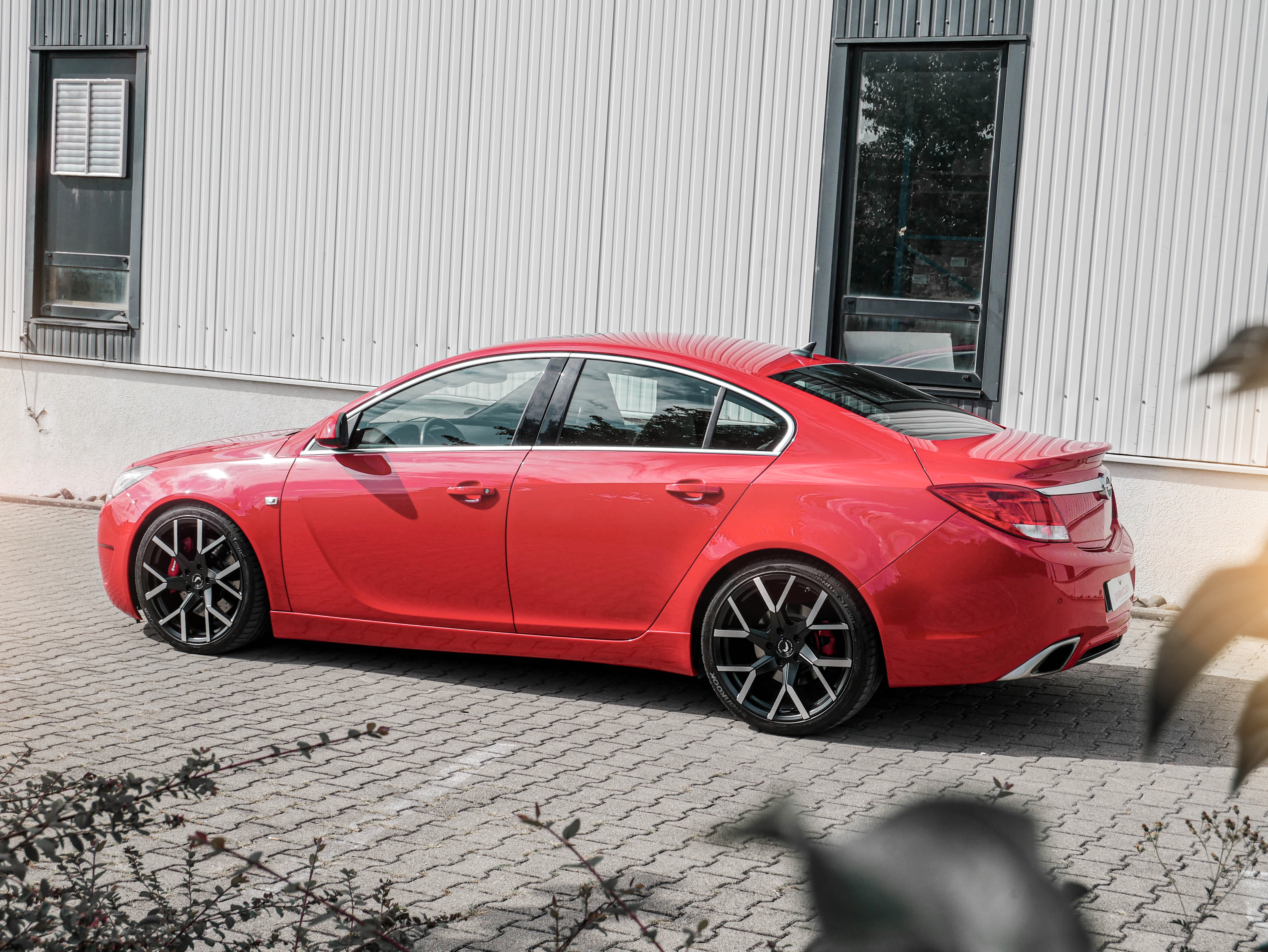 Der Opel steht auf einem Satz Tzunamee EVO-Felgen im Format 9x20 Zoll (499 Euro), die problemlos über die großen Brembo-Bremsanlagen des OPC passen. Bezogen sind die Räder im Finish Dark gunmetal brushed samt gebürsteter Speichen-Enden mit Reifen der Dimensionen 255/35R20. Die Eintragung ist dank eines Teilegutachtens anstandslos möglich.
