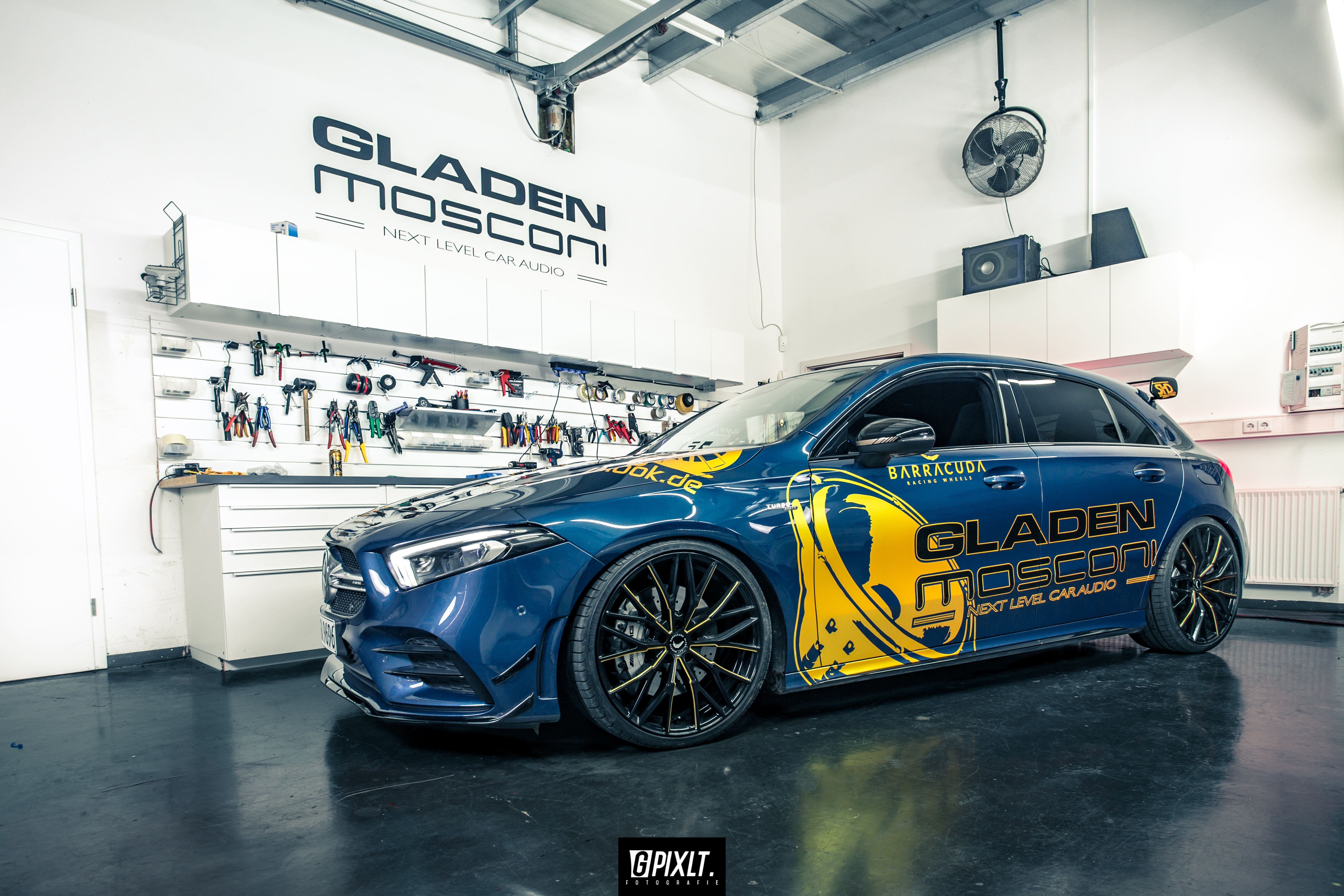 (lifepr) (Walddorfhäslach, 03.02.2020) Die ersten Exemplare des Topmodells AMG A 45 der aktuellen Mercedes-Kompaktklasse W177 sind mittlerweile auf den Straßen unterwegs. Mit bis zu 421 PS und 500 Nm ist er eine echte Wucht. Doch ist so viel Leistung wirklich unbedingt notwenig? Als Einstieg in die AMG-Welt bieten die Stuttgarter schließlich alternativ den A 35 an, der 306 PS und 400 Nm bereitstellt. Auch optisch stellt dieser schon eine gute Grundlage für Veredlungen dar. So erhielt nun dieser A 35 einen Satz großformatiger Räder von Barracuda Racing Wheels und weitere Modifikationen wie eine umfangreiches Hifi-Anlage.