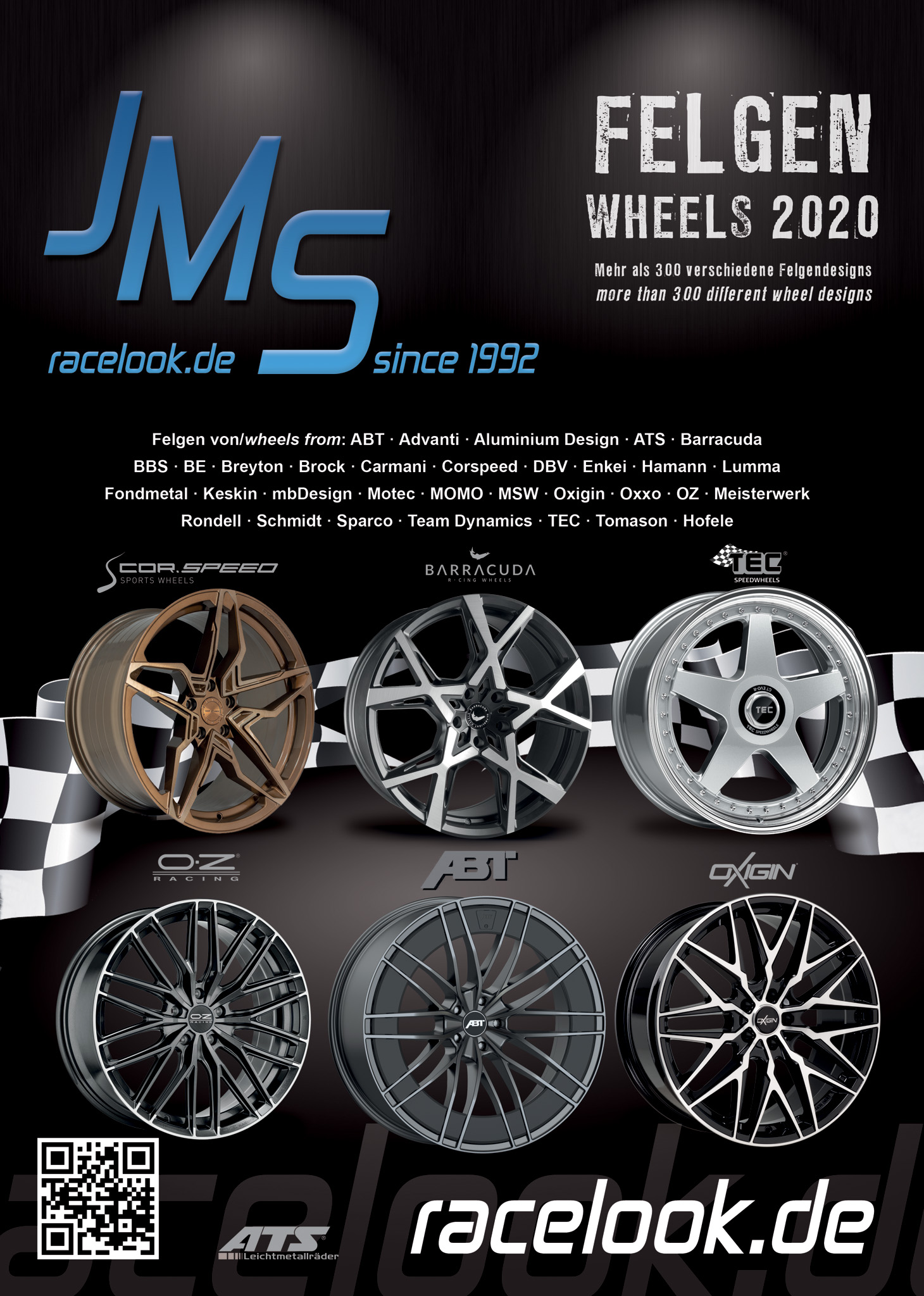 With more than 600 wheelsdesigns jms present all famous brands like: ABT Sportsline,ArtForm, Advanti, Aluminium Design, ATS,AC Schnitzer, Barracuda, BBS,Borbet,Breyton,BE, Brock, Corspeed,DBV,Fondmetal, Caractere,Corspeed ,Carmani, Diewe, Ecanto,Enkei, etabeta, Hamann,Keskin, Lombartho, MAM,MB Design,Motec, Oxigin,Oxxo, OZ Racing, MSW,Ronal, RC, Schmidt, Sparco, TEC,Team Dynamics, Tomason,Ultra and more.