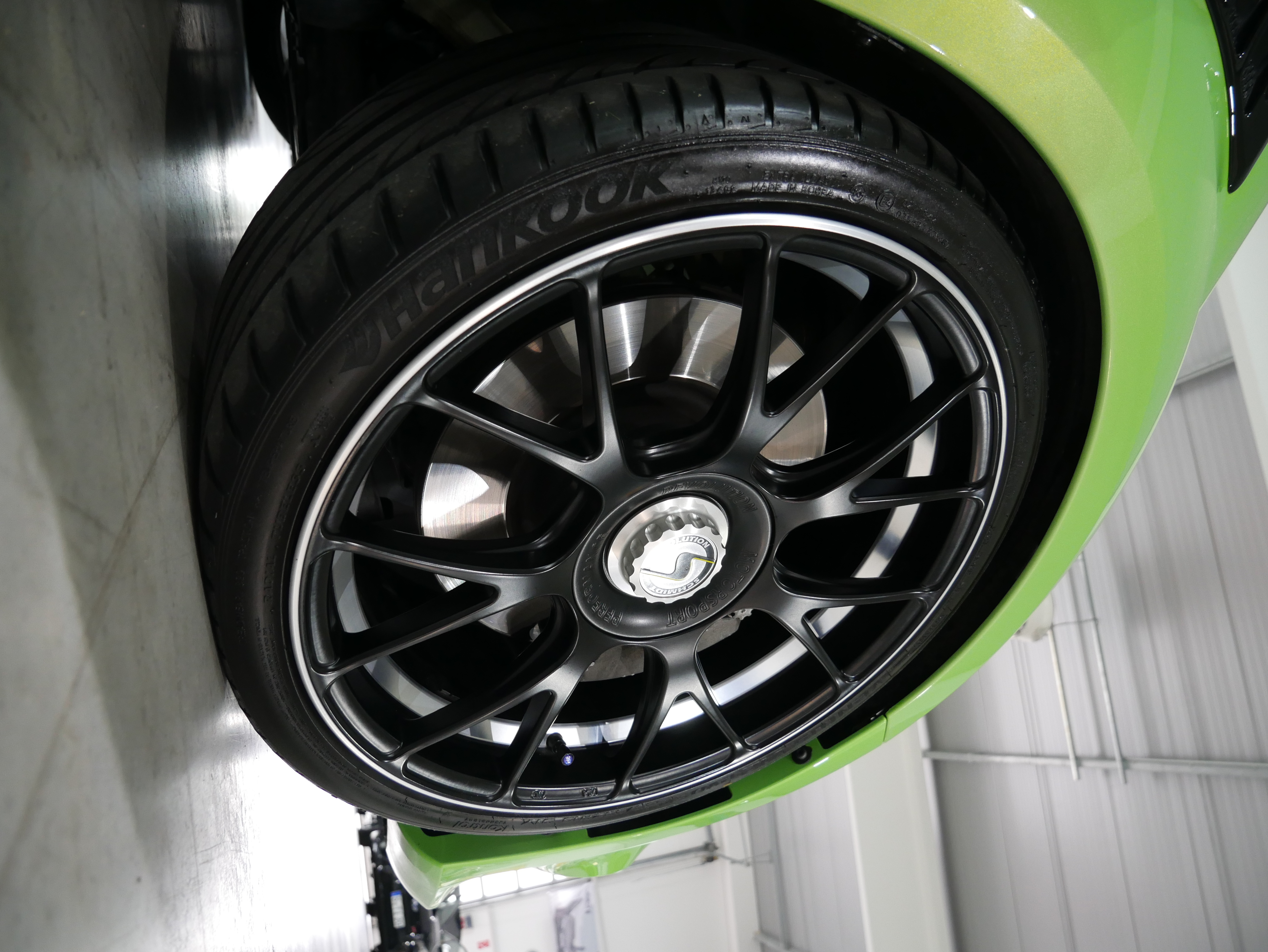 Der schon ab Werk in dem auffälligen Giftgrün lackierte Kompaktsportler erhielt bei den Spezialisten aus dem süddeutschen Walddorfhäslach einen Satz Schmidt Gambit-Felgen mit Zentralverschluss-Optik in der Dimension 8,5x19 Zoll. Die aufgezogene Bereifung misst dabei 235/35R19. Für die passende Tieferlegung ist ein ST suspensions-Gewindefahrwerk zuständig – es senkt den Focus vorne um 45 und hinten um 35 Millimeter ab. Der Blick unter die Motorhaube zeigt, dass der 305-PS-Turbomotor im Bug mit zahlreichen neuen Silikonschläuchen verfeinert wurde.