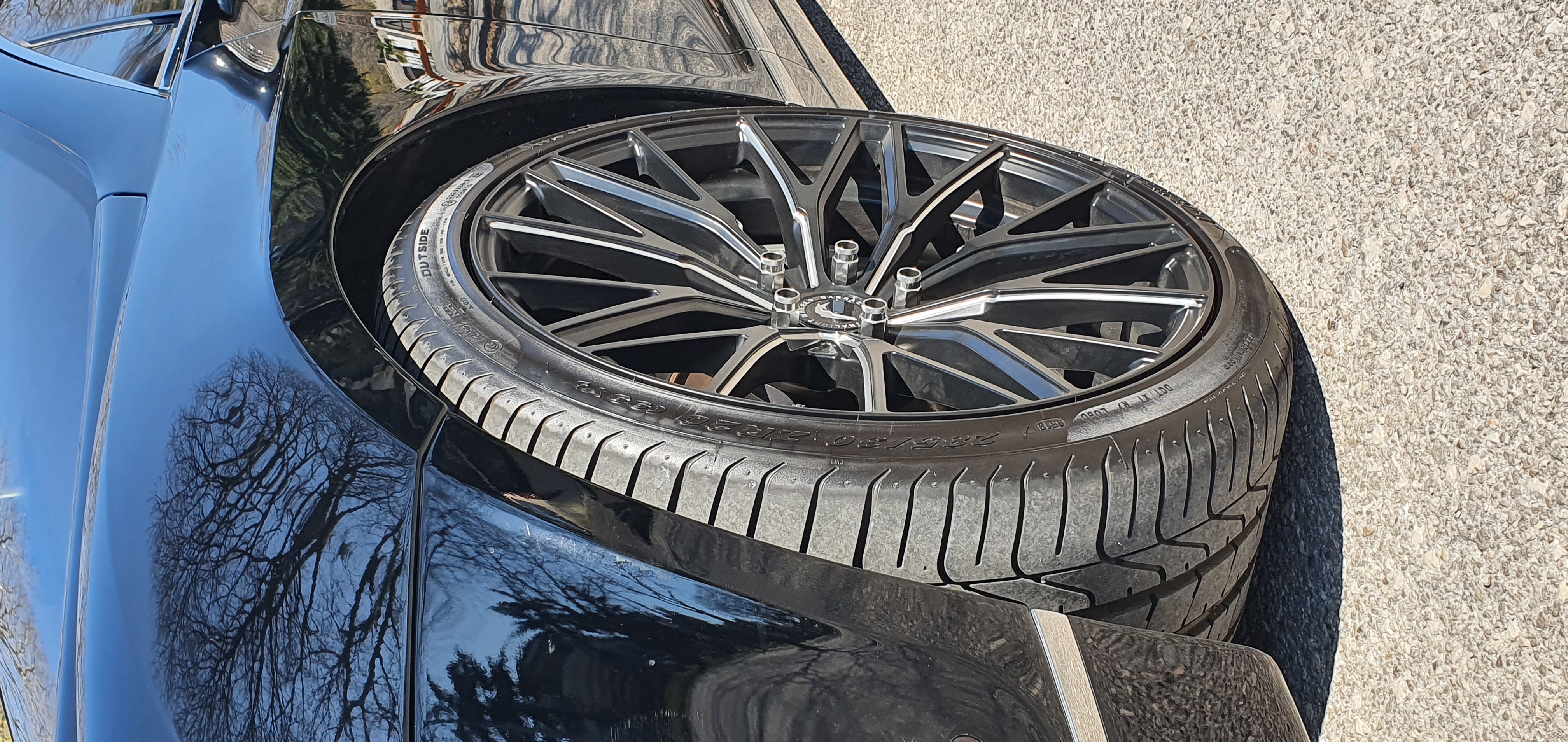 As the Croatian point of contact for the wheelmakers at Barracuda Racing Wheels, the company Formula fitted the classy British automobile with Project 3.0 wheels from the weight-optimized, flow-formed wheel series “Ultralight”. They have a striking black milled finish with a black surface and silver spoke contours milled using the patented Licardor method, and they measure 10.0”x20” and come with 285 tires.