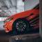 Gleiches gilt für die filigranen Project 3.0-Räder aus der Ultralight Series von Barracuda Racing Wheels. Diese zitieren das Farbschema der Karosserie mit ihren gefrästen und anschließend in Flash-Orange lackierten Speichenkonturen, welche geradezu wie farbige Lichtstrahlen wirken. Dank ihres Fertigungsverfahrens in Flow Forming-Technik bringen die 8,5x20 und 10x20 Zoll messenden Felgen jeweils nur rund 12 Kilogramm auf die Waage. Besohlt wurden die Y-Speichen-Räder mit Continental Sport Contact 6-Gummis der Dimensionen 245/30R20 vorne und 265/30R20 hinten.