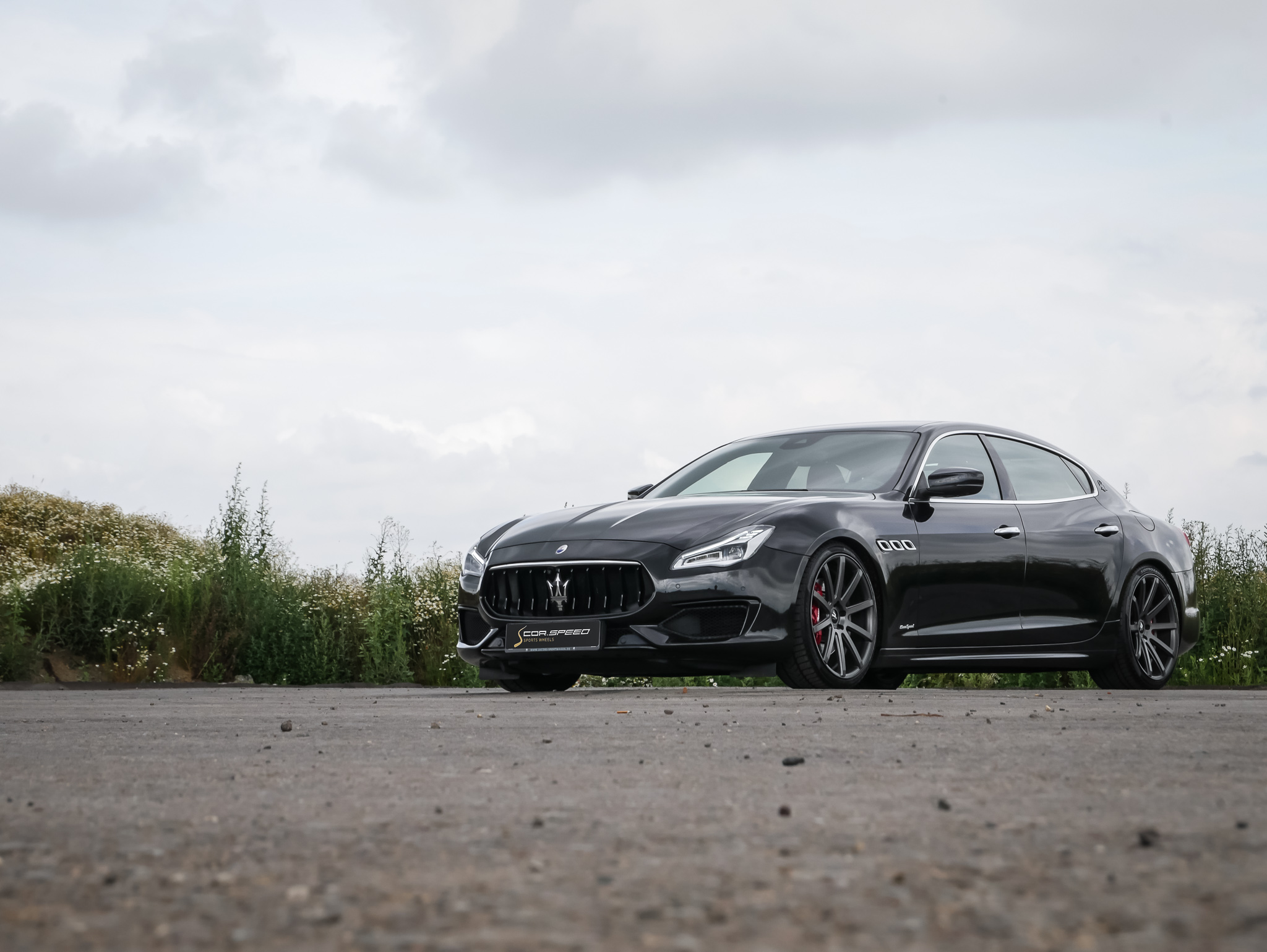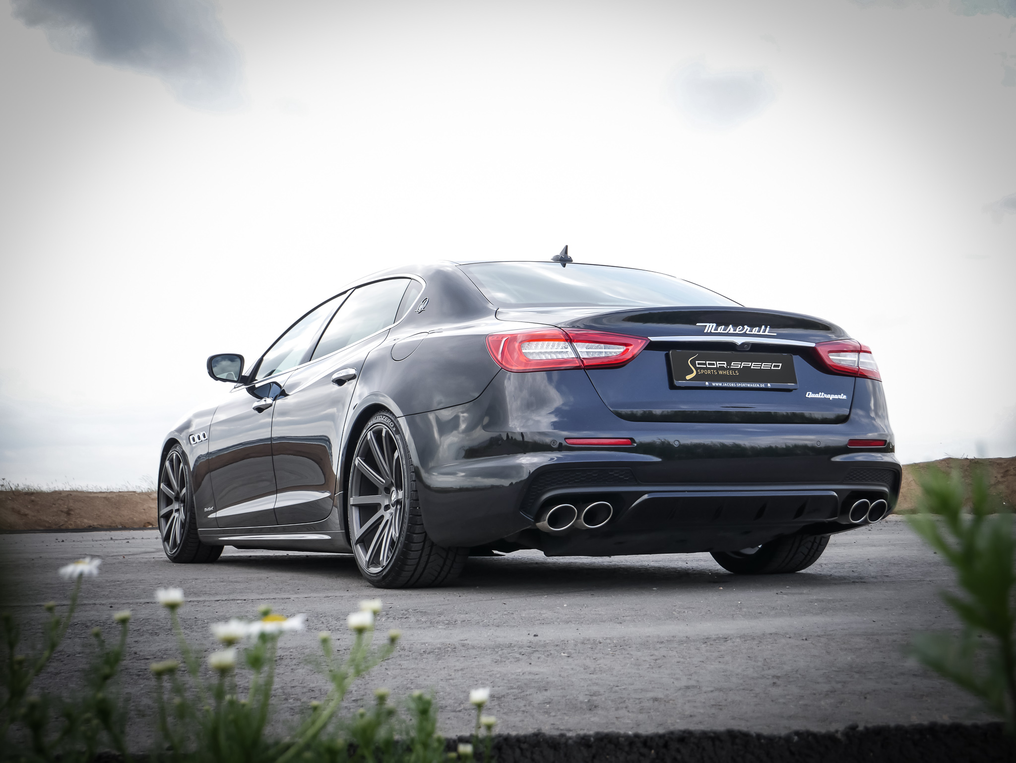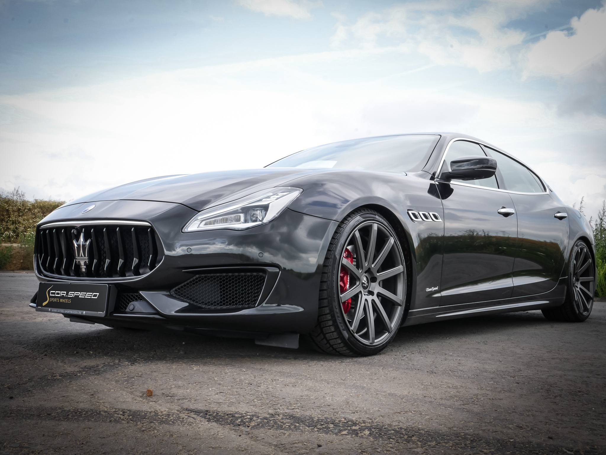 The one-piece light alloy wheel was mounted to the Italian limousine shown here by Cor.Speed partner wheels4you, located in Hildesheim, in the „Gunmetal Matt“ finish and in the dimensions 9x21 and 10.5x21 inches - combined with high-performance tires of sizes 245/35R21 on the front and 285/30R21 on the rear axle.