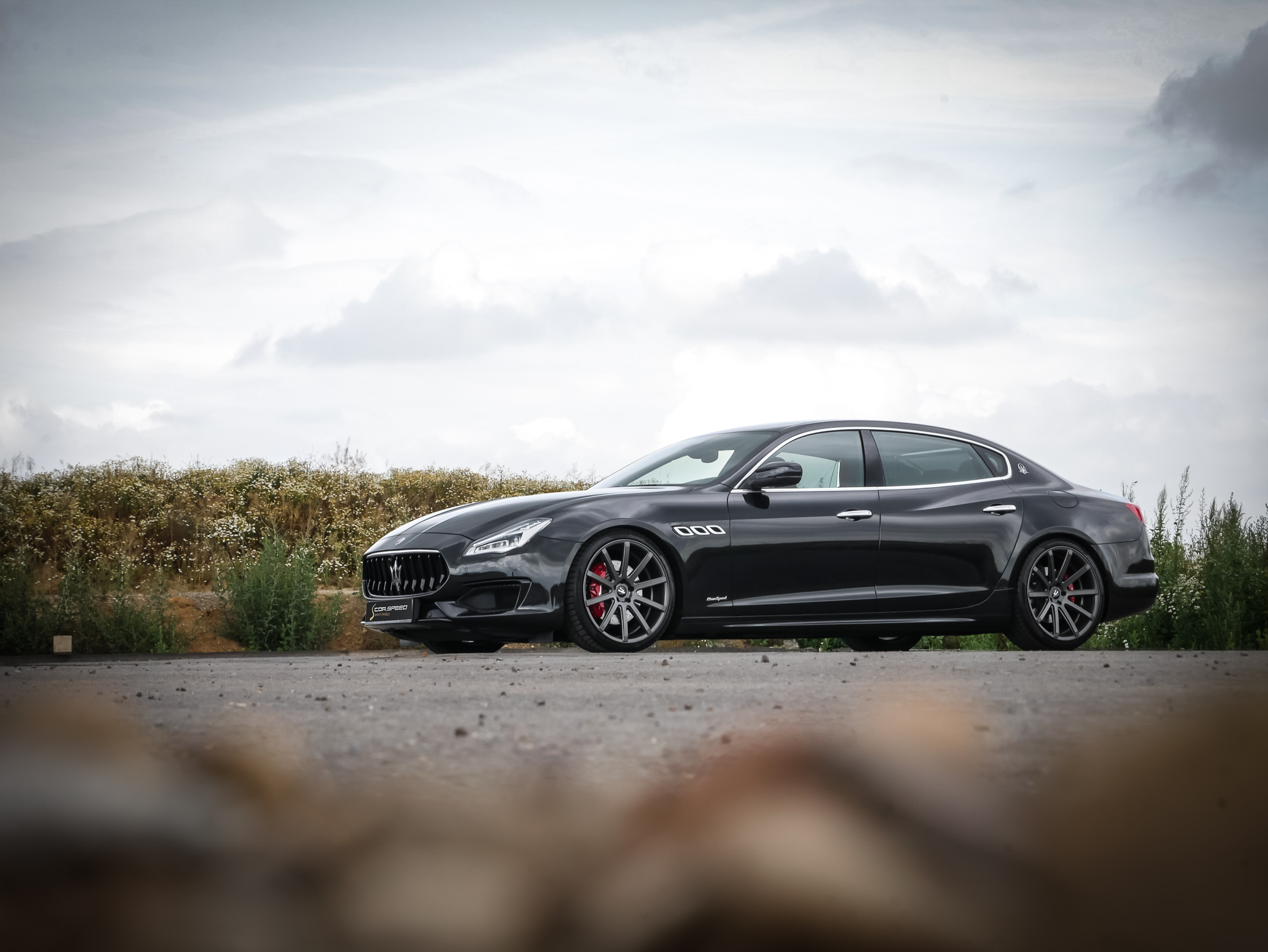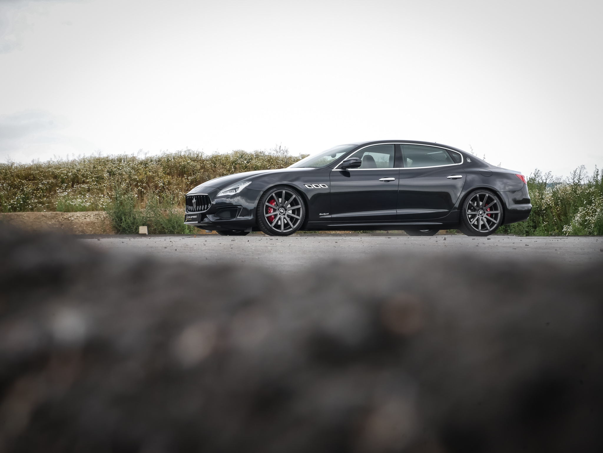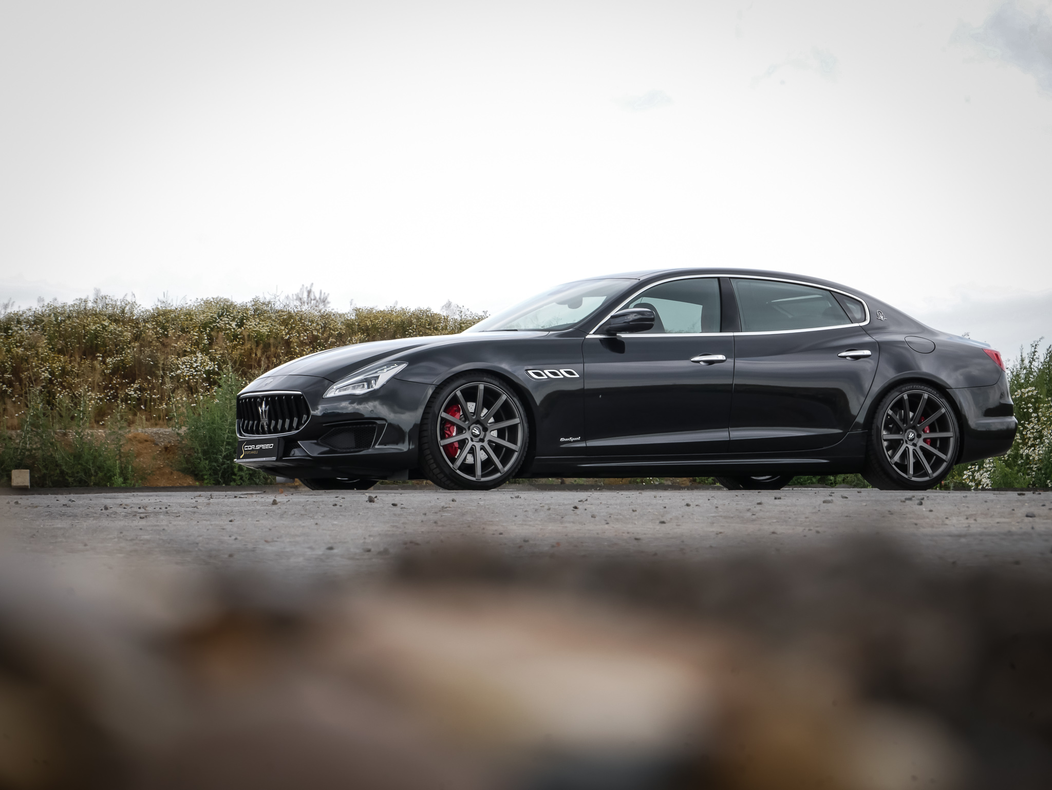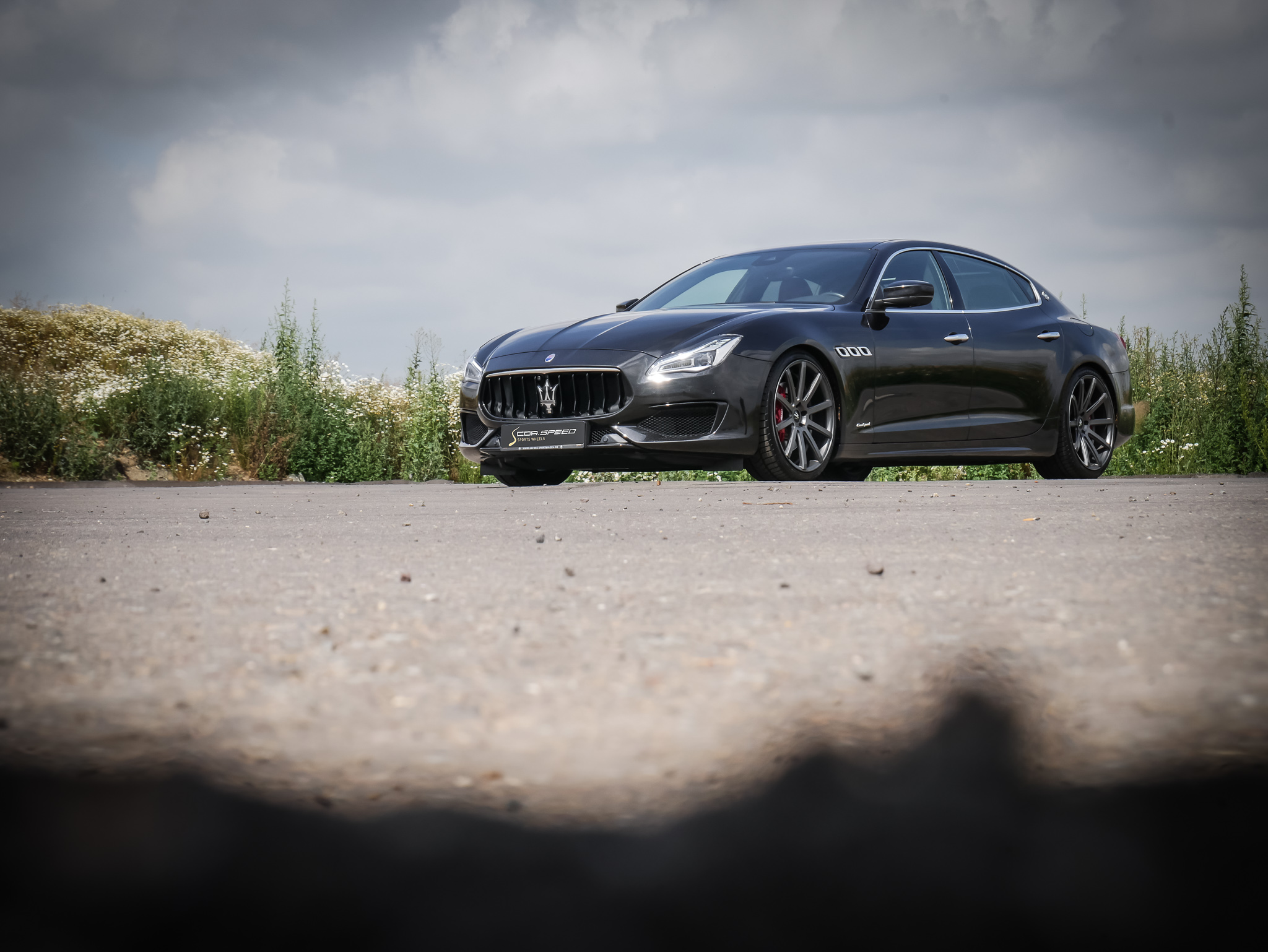 The one-piece light alloy wheel was mounted to the Italian limousine shown here by Cor.Speed partner wheels4you, located in Hildesheim, in the „Gunmetal Matt“ finish and in the dimensions 9x21 and 10.5x21 inches - combined with high-performance tires of sizes 245/35R21 on the front and 285/30R21 on the rear axle.
