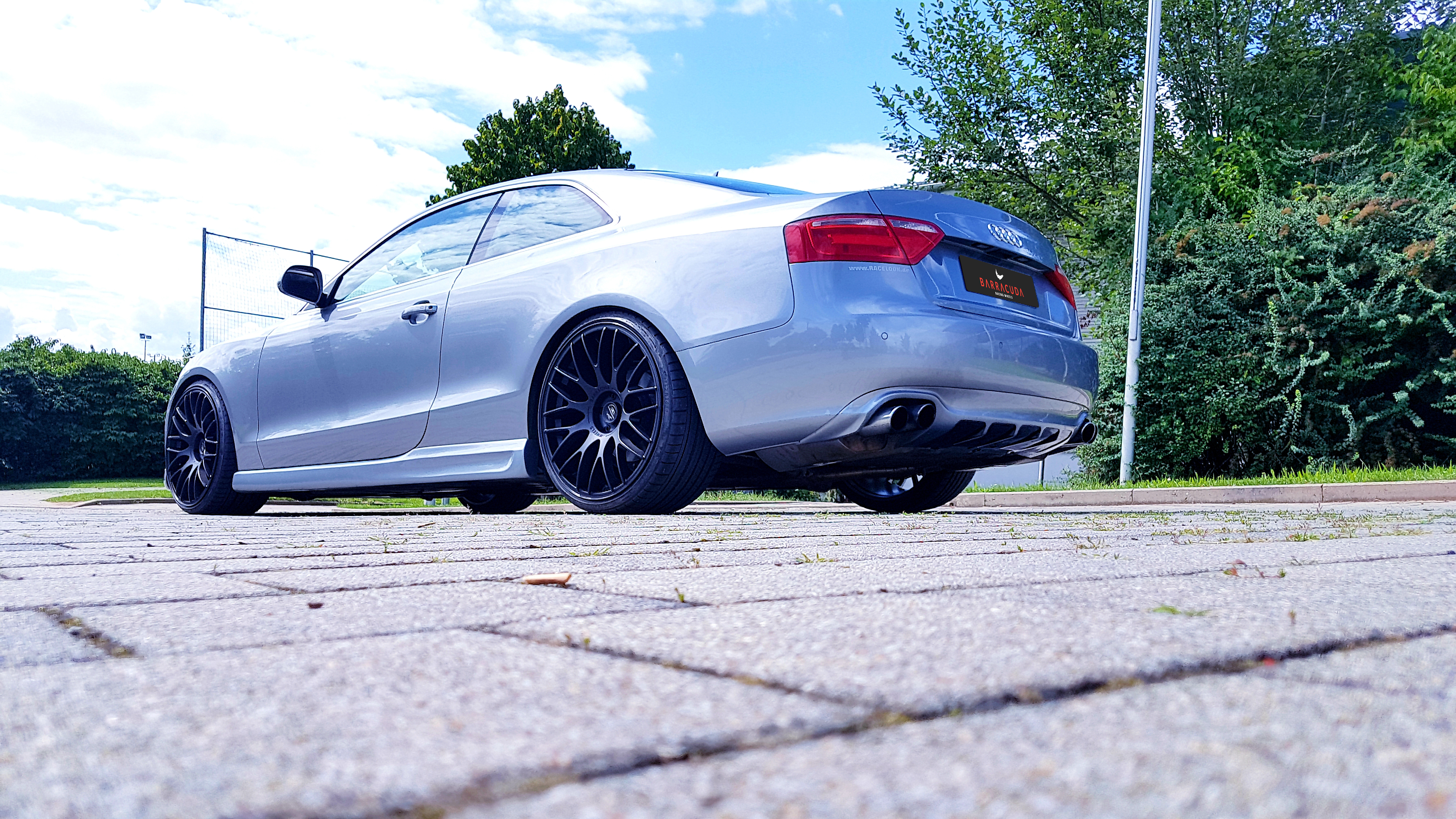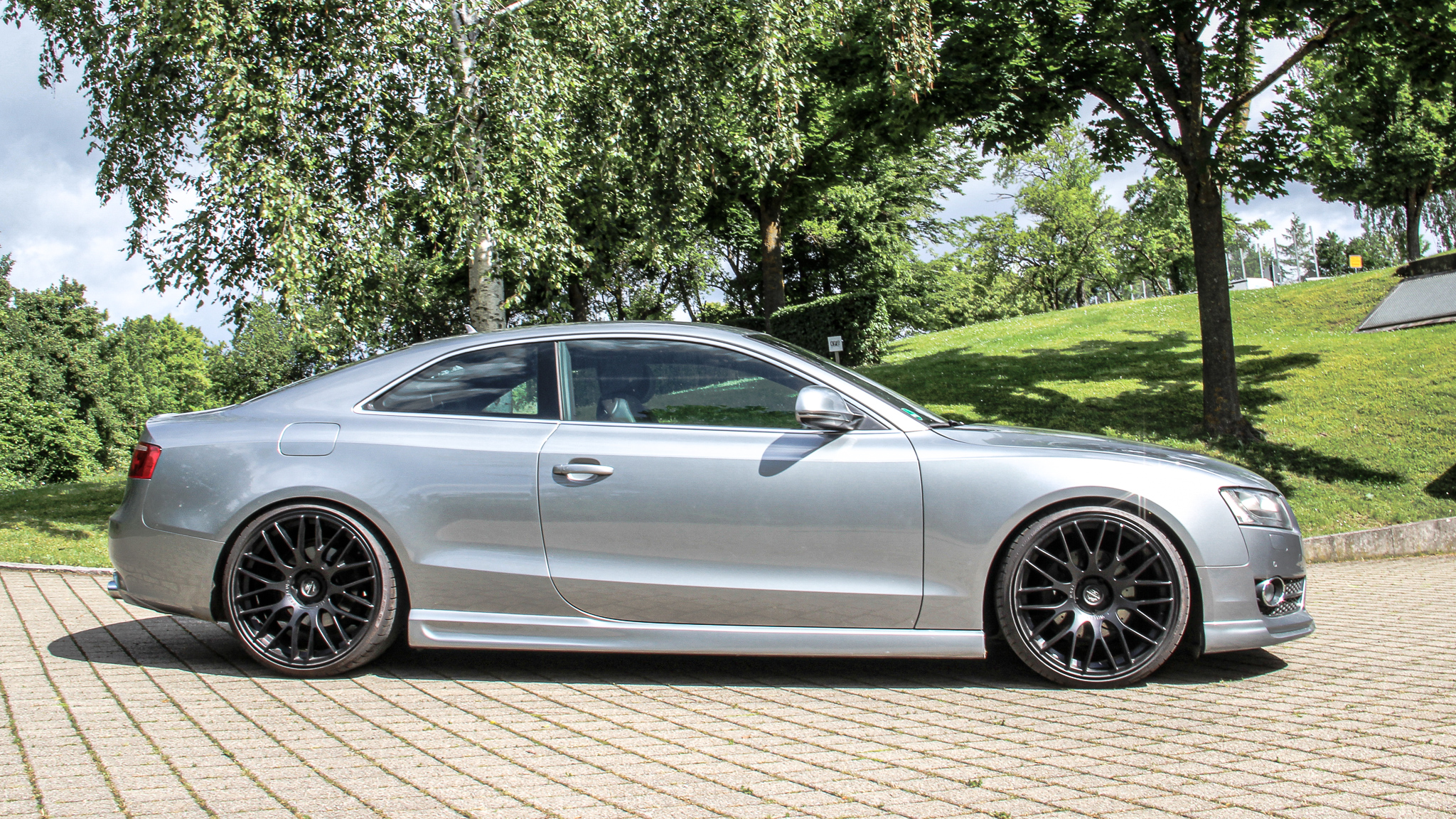 Die Spezialisten aus Walddorfhäslach installierten einerseits ihren hauseigenen Bodykit an dem Ingolstädter Zweitürer, der bewusst dezent und zurückhaltend gestaltet wurde, um die zeitlose Original-Linienführung des A5 nicht zu stören, sondern vielmehr gekonnt zu ergänzen. Der Bausatz setzt aus einer Frontspoilerlippe (259 Euro), Seitenschwellern (269 Euro) sowie einem Diffusor-Einsatz für das Heck (259 Euro) zusammen. Erhältlich sind die Karosseriekomponenten dabei sowohl für Modelle mit als auch ohne S-Line-Ausstattung. Geeignet sind sie ferner nicht nur für das Coupé, sondern ebenso für das Cabrio und die Frontlippe auch für den Sportback. Weitere optische Highlights am gezeigten Showcar setzen Barracuda Karizzma-Leichtmetallräder in den Dimensionen 10,5x20 Zoll. Bezogen sind die hochwertigen Felgen-Klassiker mit Reifen in 275/25R20. Die ergänzende Tieferlegung der Karosserie um etwa 40 Millimeter ist H&R/JMS-Spezialfedern in Kombination mit den werkseitigen Stoßdämpfern zu verdanken.