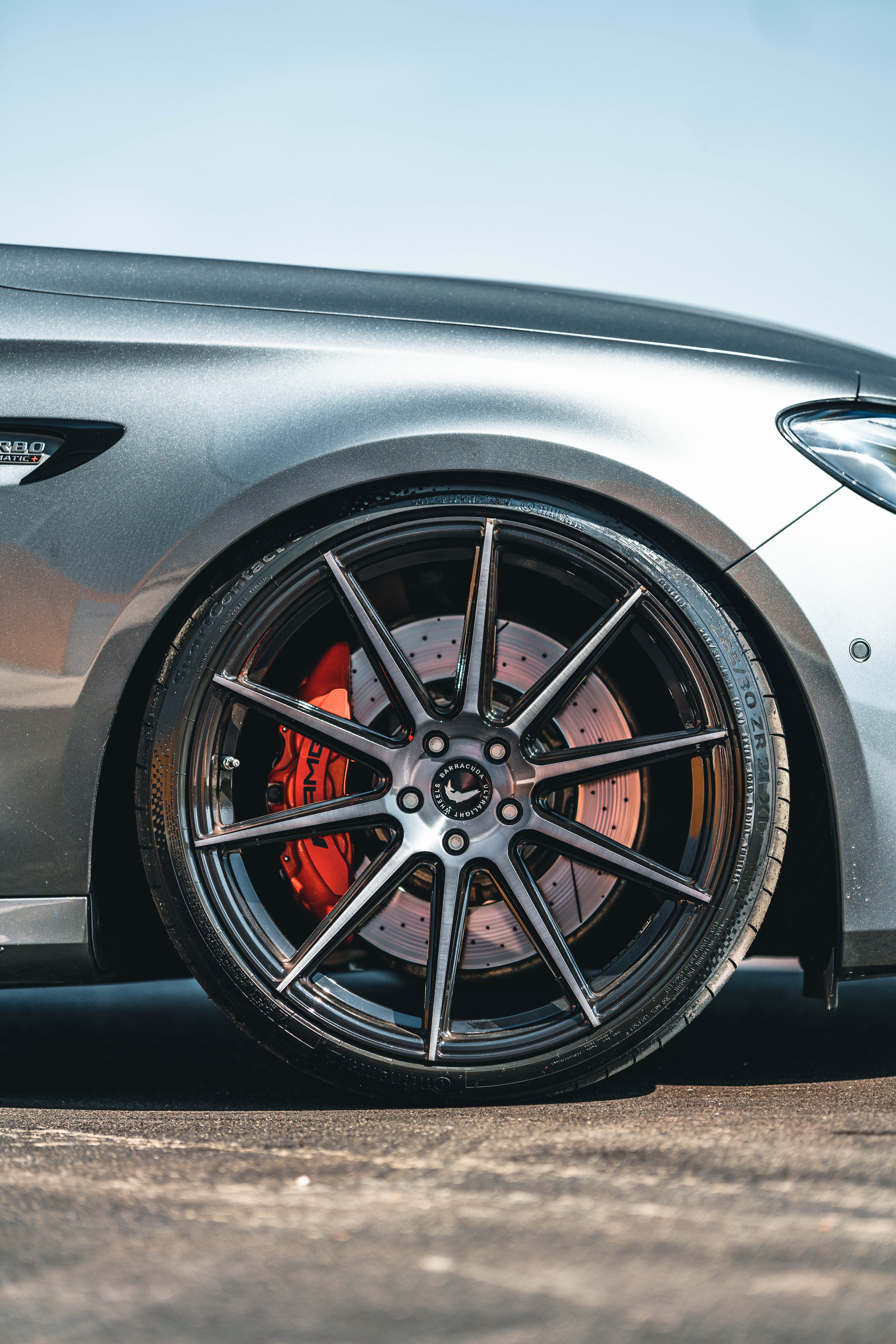 In den Kotflügeln des um rund 40 Millimeter tiefergelegten E 63 S 4MATIC+ in der Vor-Facelift-Version der aktuellen Baureihe W213 rotieren die Barracuda Ultralight Series 2.0 im neuen, kontrastreichen Finish black brushed sowie den Dimensionen 9x21 Zoll an der Vorder- und 10,5x21 Zoll an der Hinterachse. Bezogen wurden die – wie alle Räder der Barracuda Ultralight Series – im Flow Forming-Verfahren gefertigten Einteiler mit Bereifung der Größen 265/30R21 und 295/25R21.