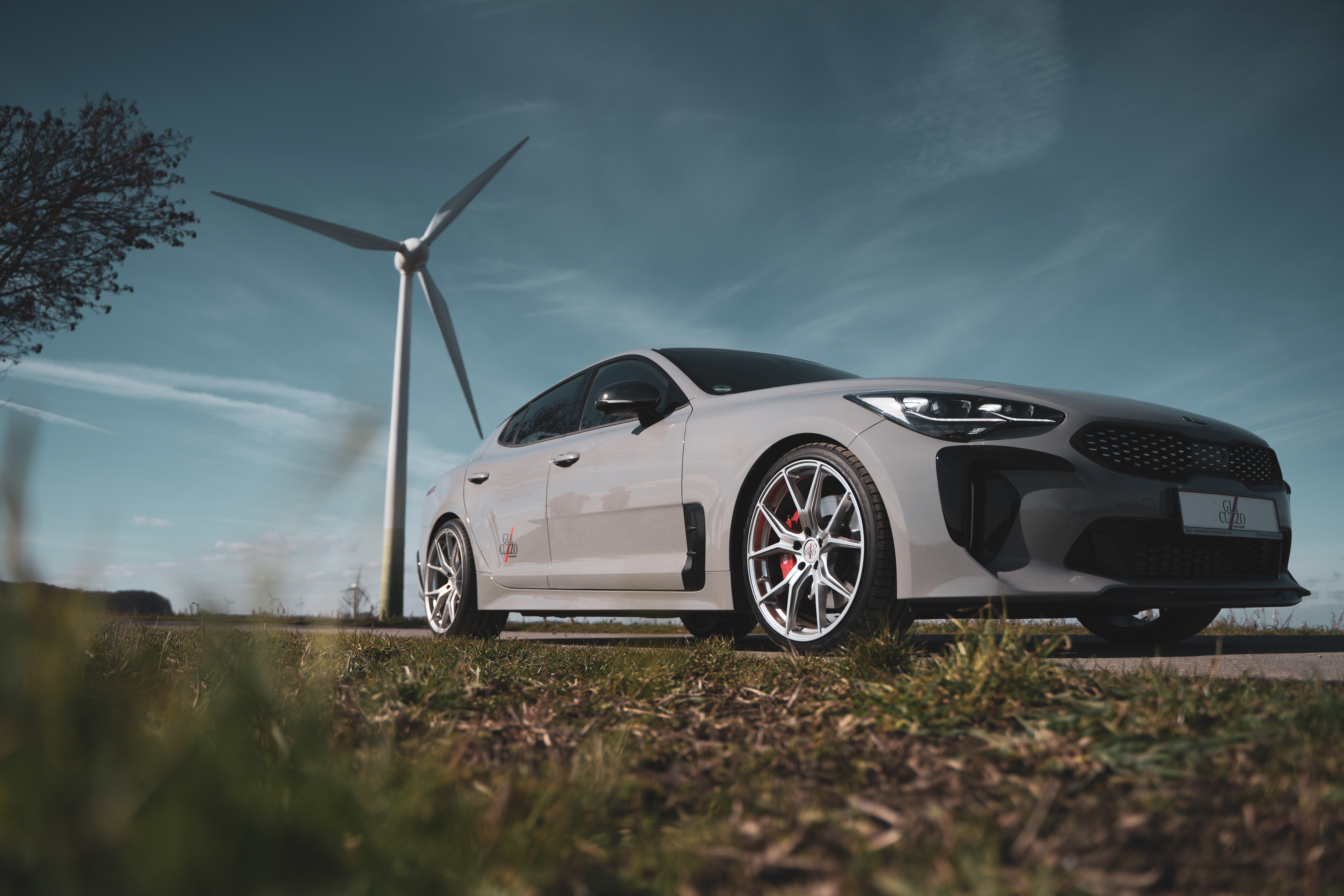 An den Achsen des Premium-Kias sind Barracuda Inferno-Felgen mit klassischem Finish in silver sowie den Dimensionen 8,5x20 vorne und 10x20 Zoll hinten montiert. Die Bereifung misst 225/35R20 und 255/30R20. Diese Kombination ist für den Stinger mit Teilegutachten exklusiv bei Giacuzzo erhältlich.