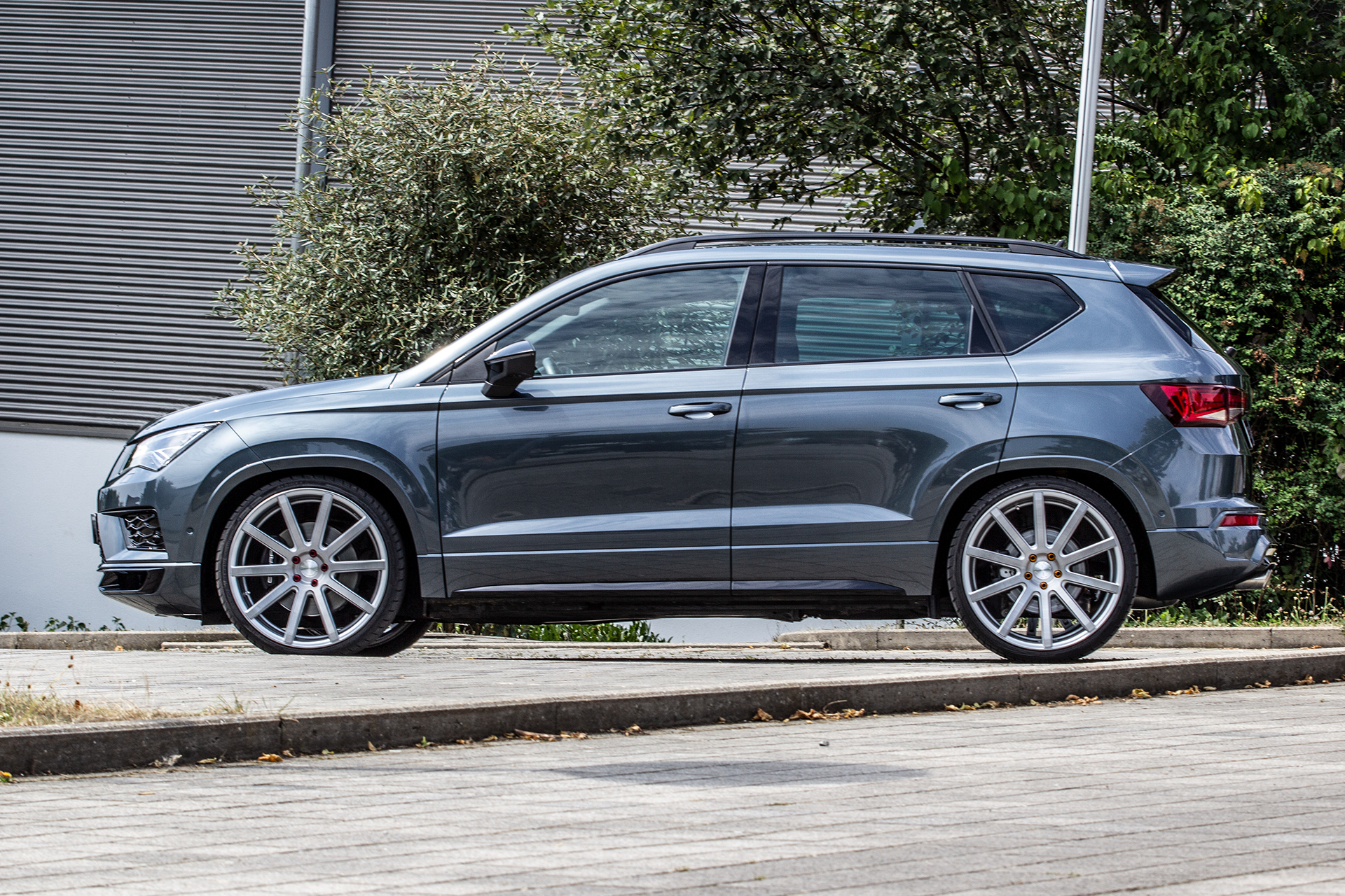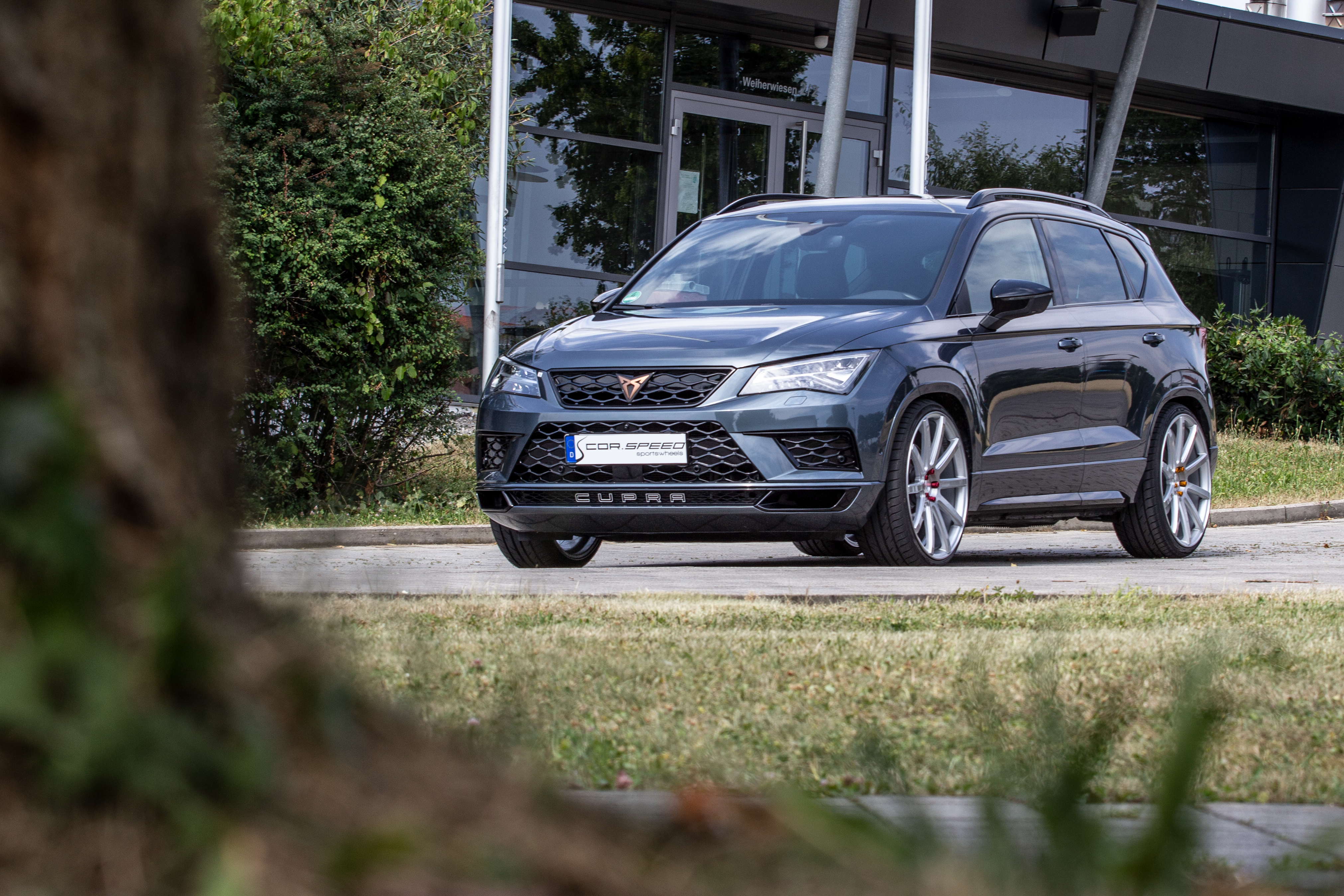 (lifepr) (Walddorfhäslach, 07.06.2021) Der Seat Ateca ist von der Größe her das mittlere der drei SUVs von Seat – so weit, so gut. Das 300 PS und 400 Nm starke Topmodell hingegen trägt den Namen des Stammhauses gar nicht mehr, schließlich wurde das Label Cupra zwischenzeitlich als eigene Marke abgespalten. So heißt das Sport-SUV schlicht Cupra Ateca – klingt zwar immer noch ungewohnt, ist aber dennoch korrekt. Davon unberührt ist freilich die Tatsache, dass der dynamisch gezeichnete Allradler sich bestens als Basis für Tuning-Umbauten eignet. Dies beweist etwa dieses unter anderem mit einem Satz hochwertiger Felgen aus dem Hause Cor.Speed Sports Wheels ausgerüstete Exemplar.