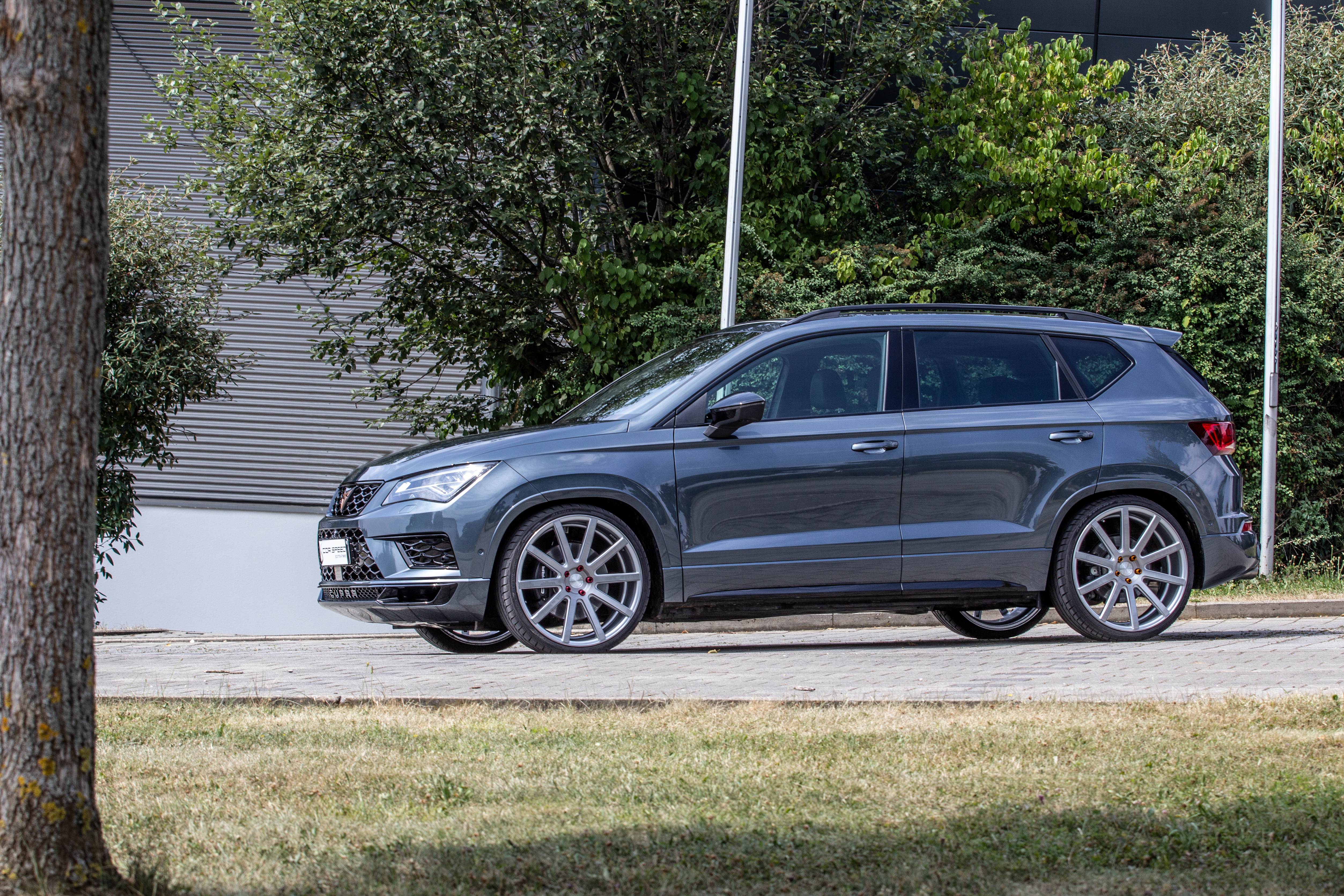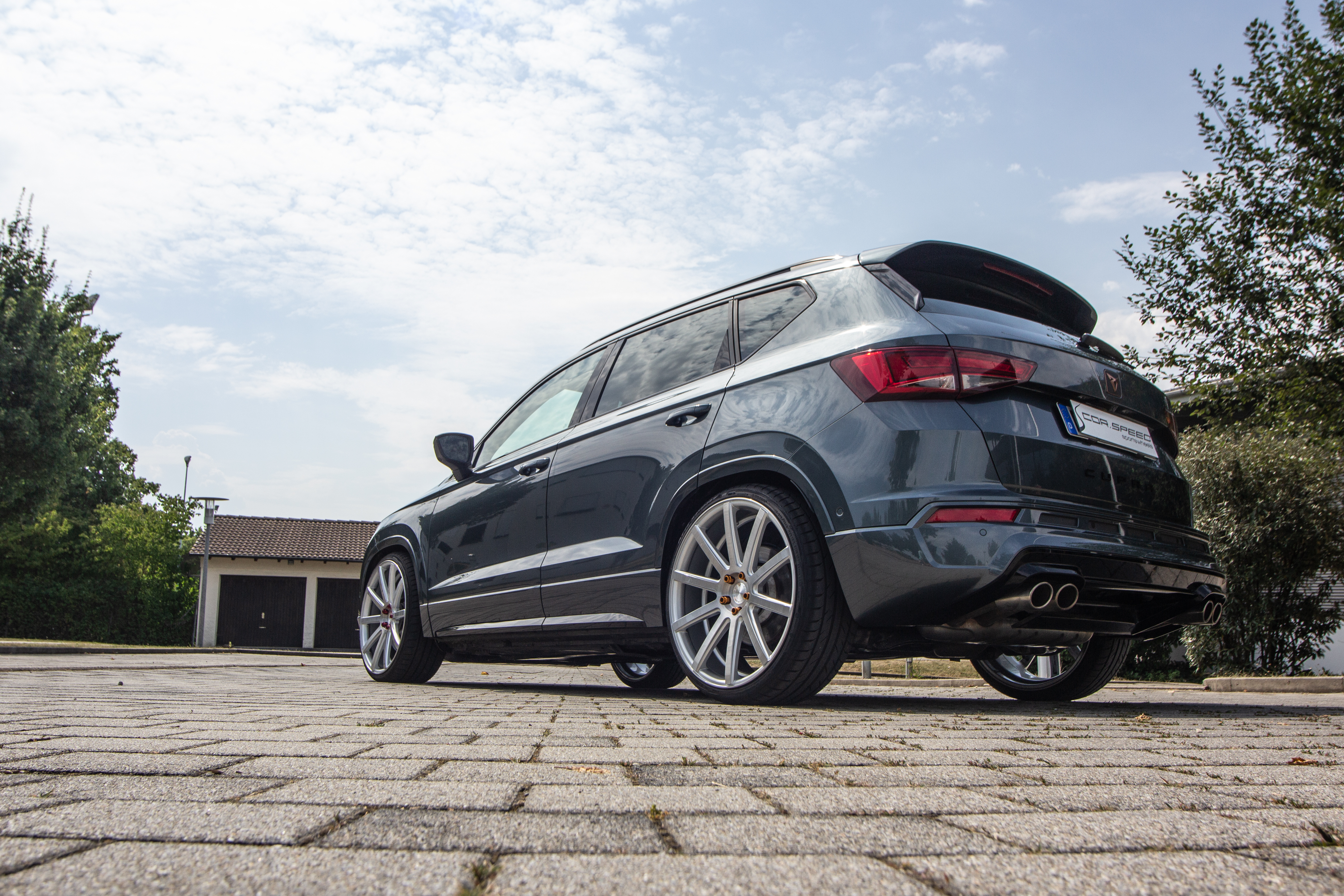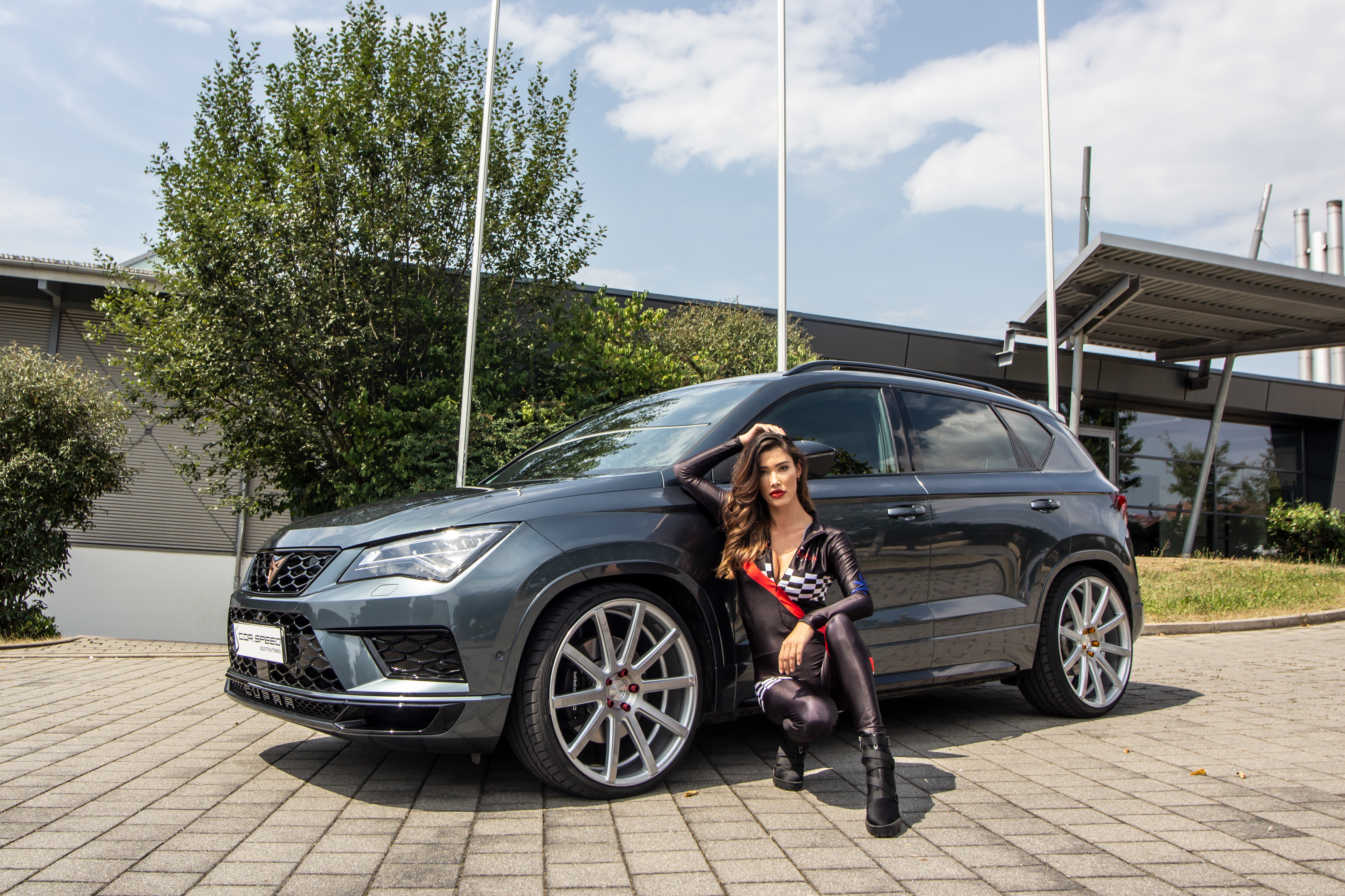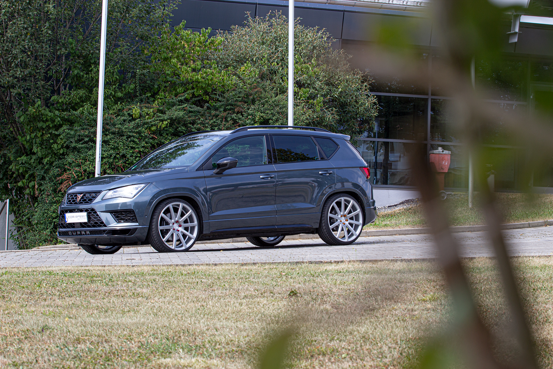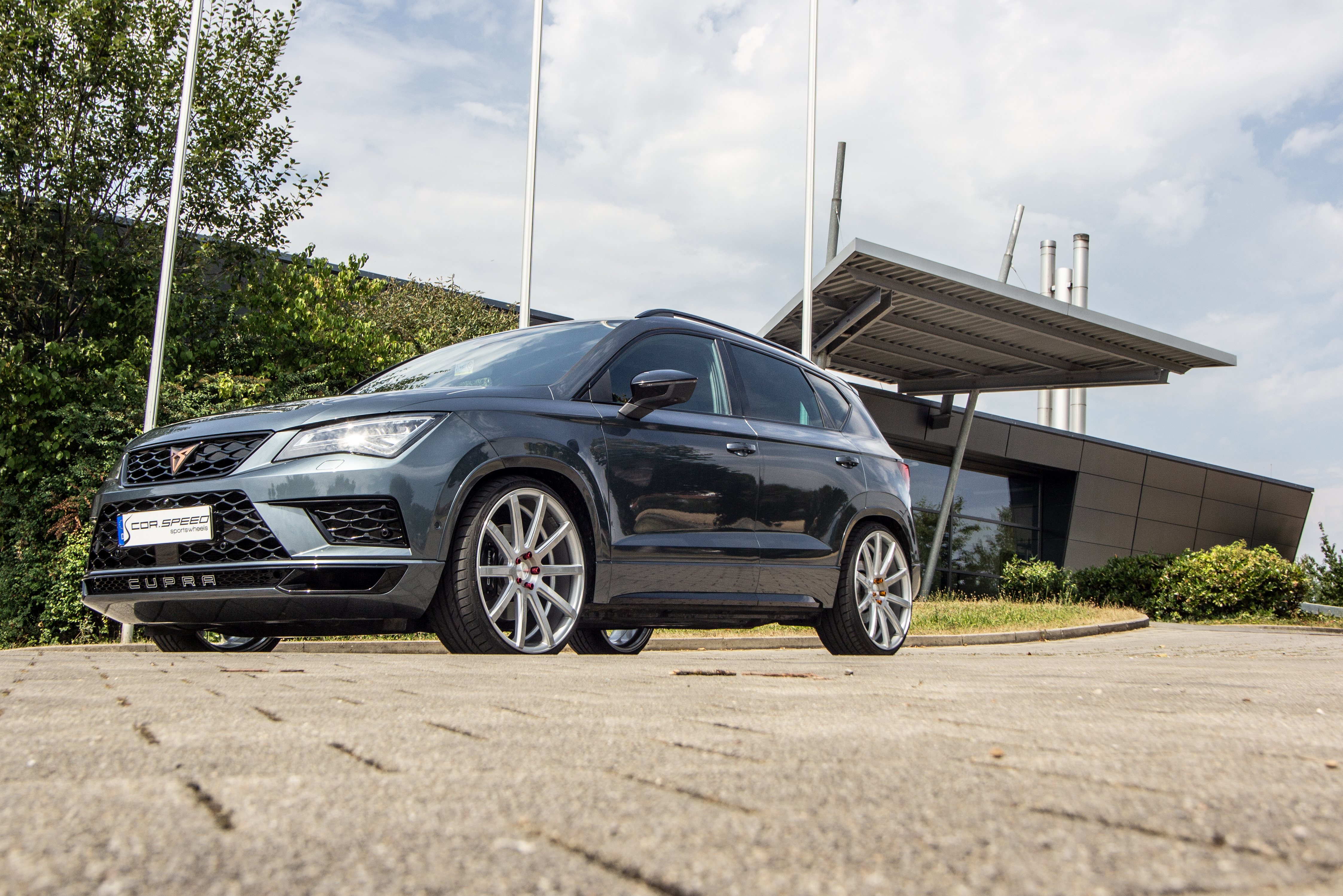 (lifepr) (Walddorfhäslach, 07.06.2021) In terms of size, the Seat Ateca is the middle of the three SUVs from Seat - so far, so good. The 300 hp and 400 Nm top model, on the other hand, no longer bears the name of the parent company, after all, the Cupra label has since been split off as its own brand. The sports SUV is simply called Cupra Ateca - it sounds strange, but it's still correct. Of course, this does not affect the fact that the dynamically designed all-wheel drive is ideally suited as a basis for tuning conversions. This is proven by this example, which is equipped with a set of high-quality rims from Cor.Speed Sports Wheels, among other things.