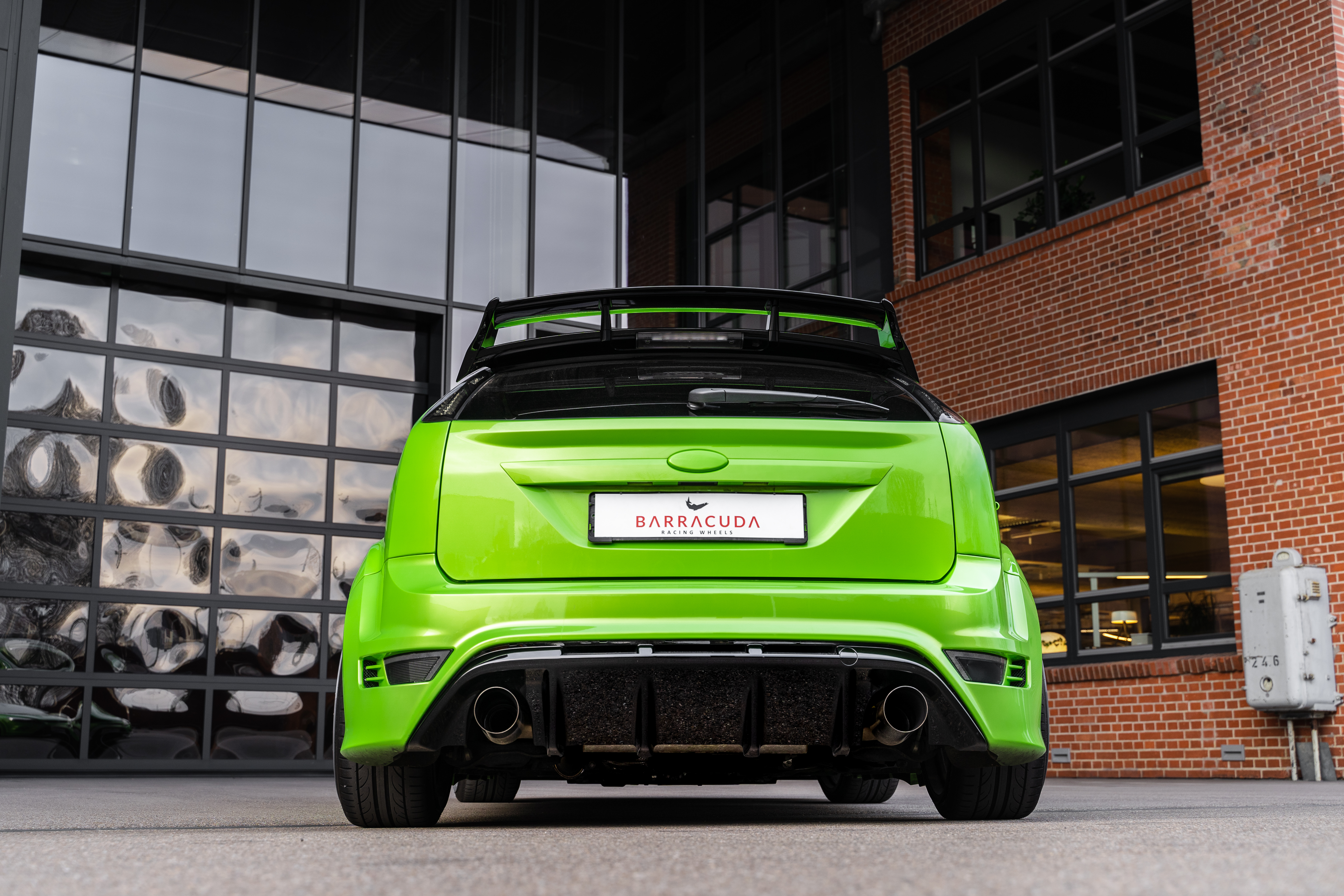 The more than 300 hp compact sports car rolls on a set of Karizzma wheels from the Barracuda Racing Wheels brand, which is sold by JMS. The dimensions are 9.5x19 inches and the associated tires measure 235/35R19. With their special finish in Ice Gray, they stand out from the bright green paintwork of the body, which is typical of the RS. JMS brought about a suitable lowering by 45 millimeters at the front and 40 millimeters at the rear with the help of an ST X coilover kit.