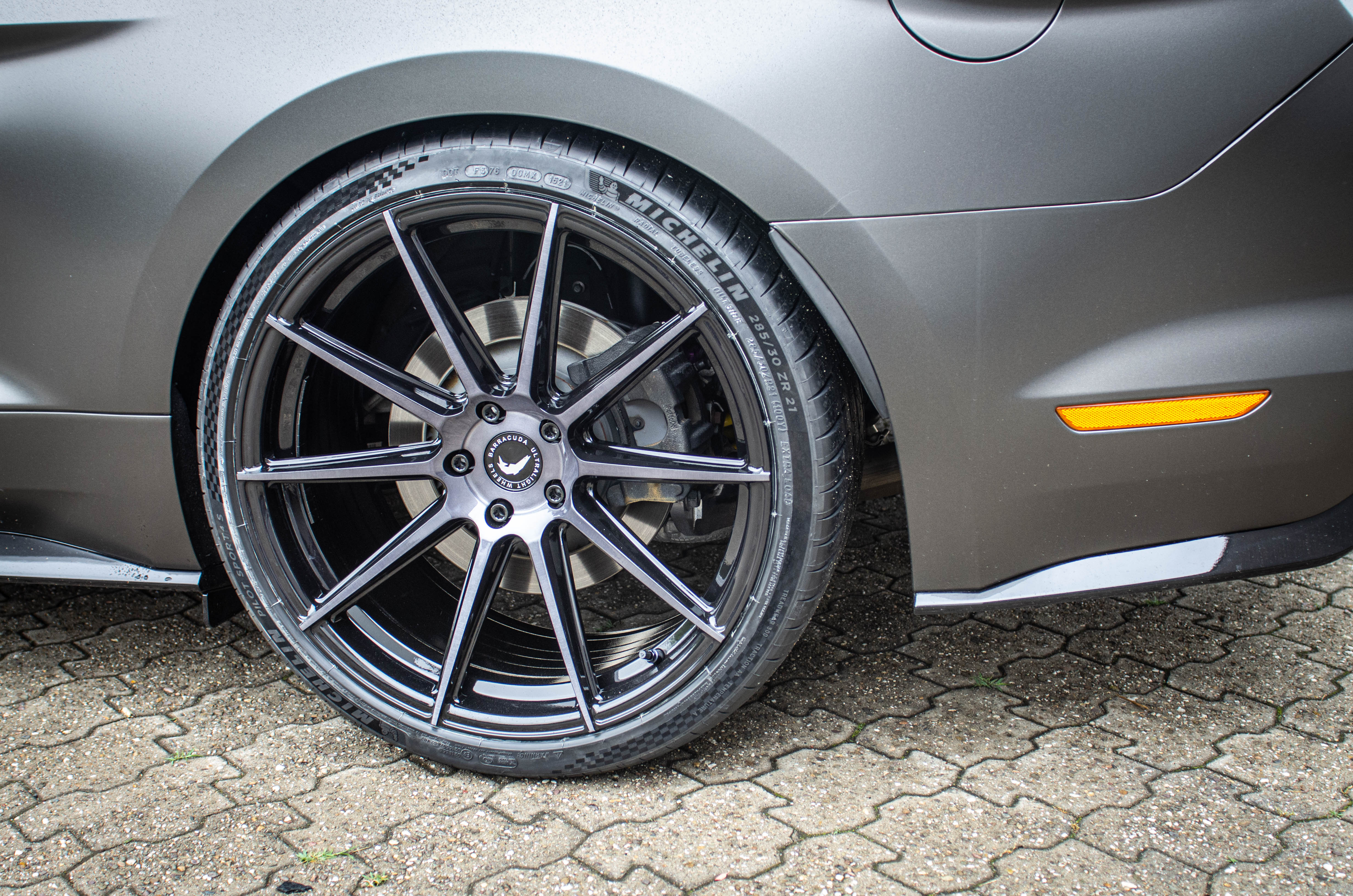 (lifepr) (Walddorfhäslach, 09.08.2021) Tuning und Custom-Individualisierungen haben in den USA eine lange Tradition. Schließlich hatte die Fahrzeugmodifikation ihren Ursprung dort schon in den 1920er Jahren in Form des Hot Roddings. Da wundert es kaum, dass bis heute nicht nur in den Vereinigten Staaten eine große Community besteht, die ihre zumeist einheimischen Fahrzeuge spektakulär tunt, sondern weltweit US-Car-Fahrer eine besonders große Affinität zur Veredlung ihre Schätzchen haben. So geschehen nun auch bei dem hier gezeigten Ford Mustang GT der aktuellen Baureihe LAE, der unter anderem mit einem Satz hochwertiger Barracuda Racing Wheels ausgerüstet wurde.