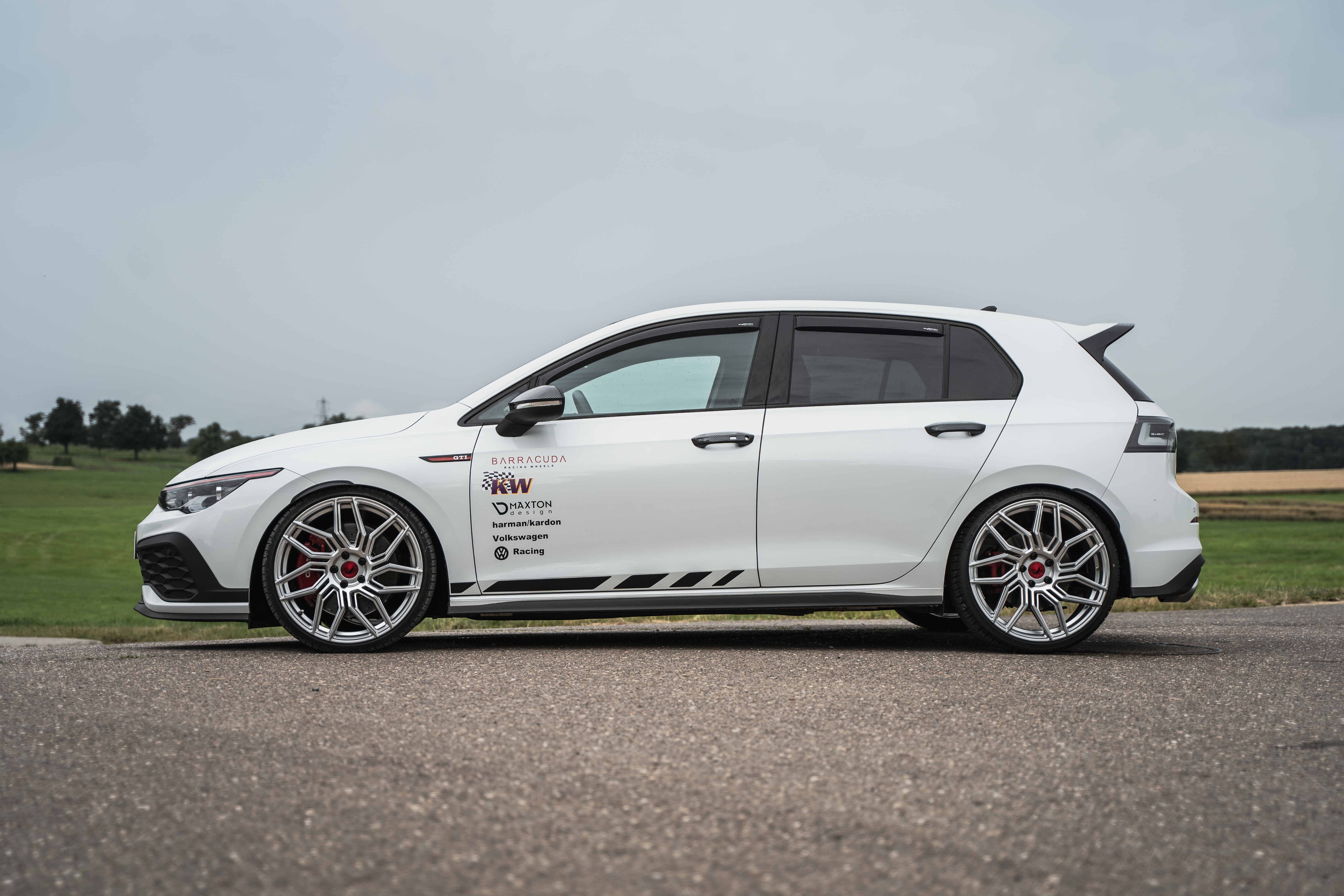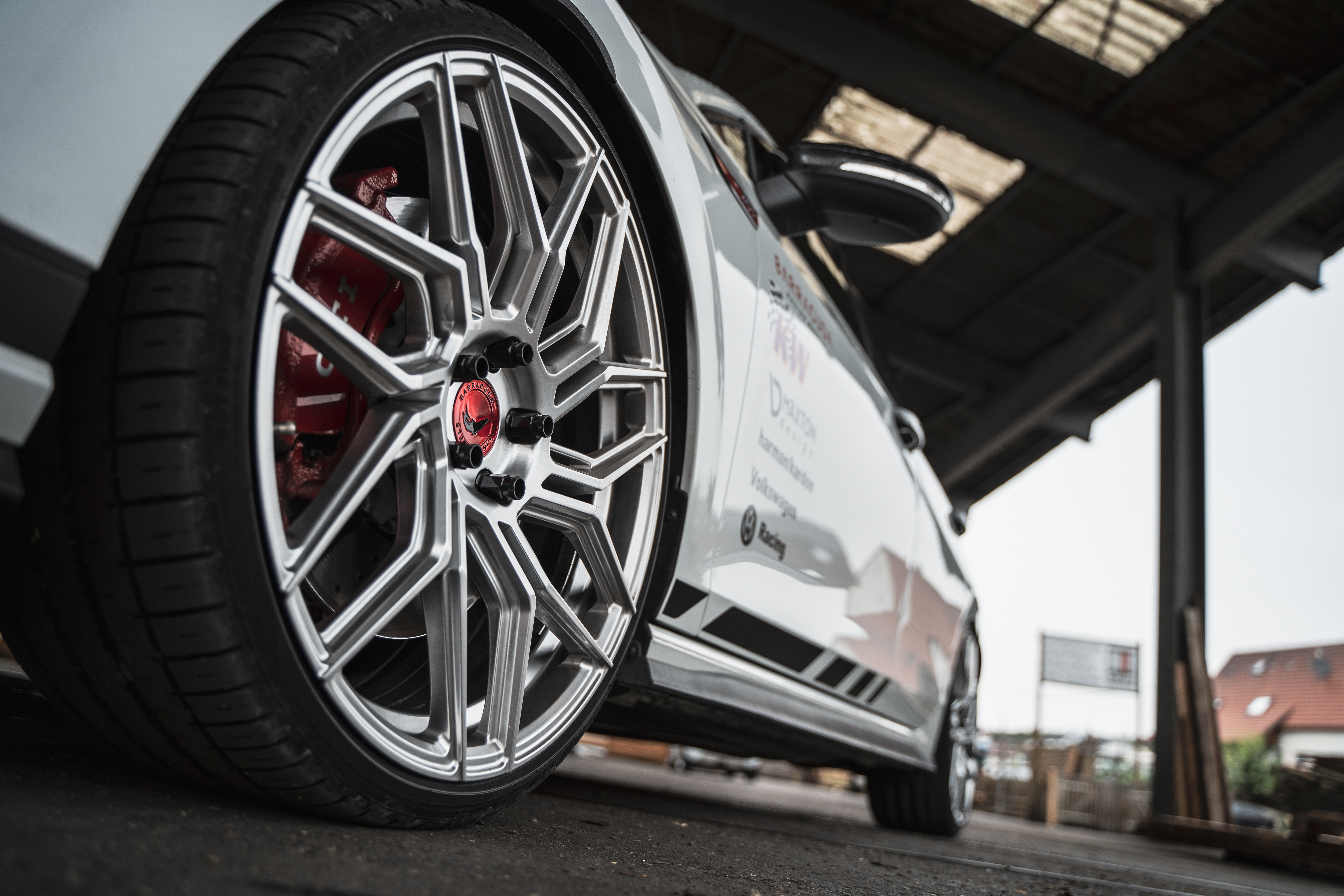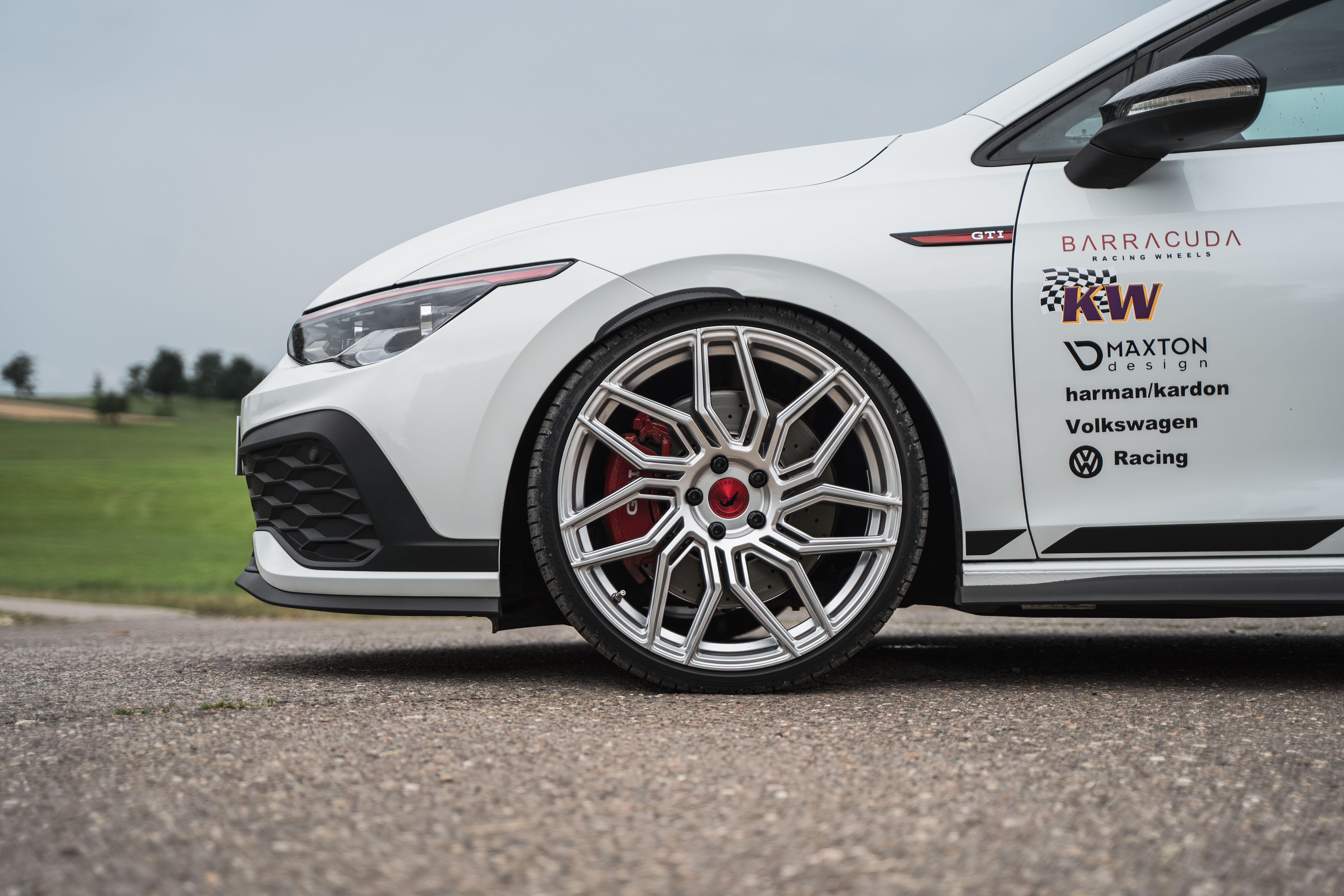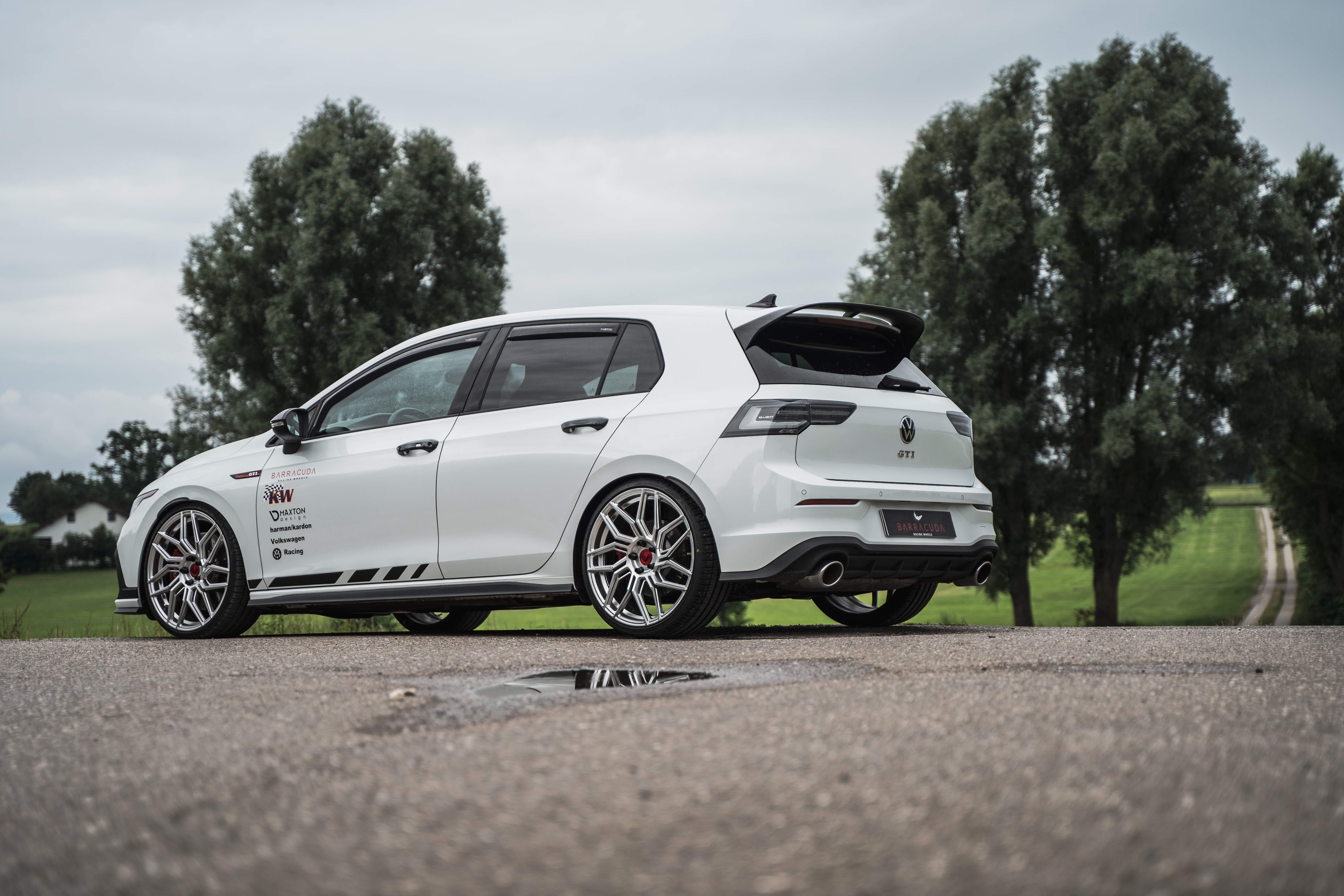 As a further eye-catcher, the wheels in this case - to match the corresponding typical design accents of the GTI - are combined with rim caps in red. They are screwed to the axles with the registration-free Barracuda Racing Bolts in black. These screws are available in different colors and for virtually all rim applications. Even individual productions with a desired shaft length are possible. The racing bolts are also available as wheel nuts.