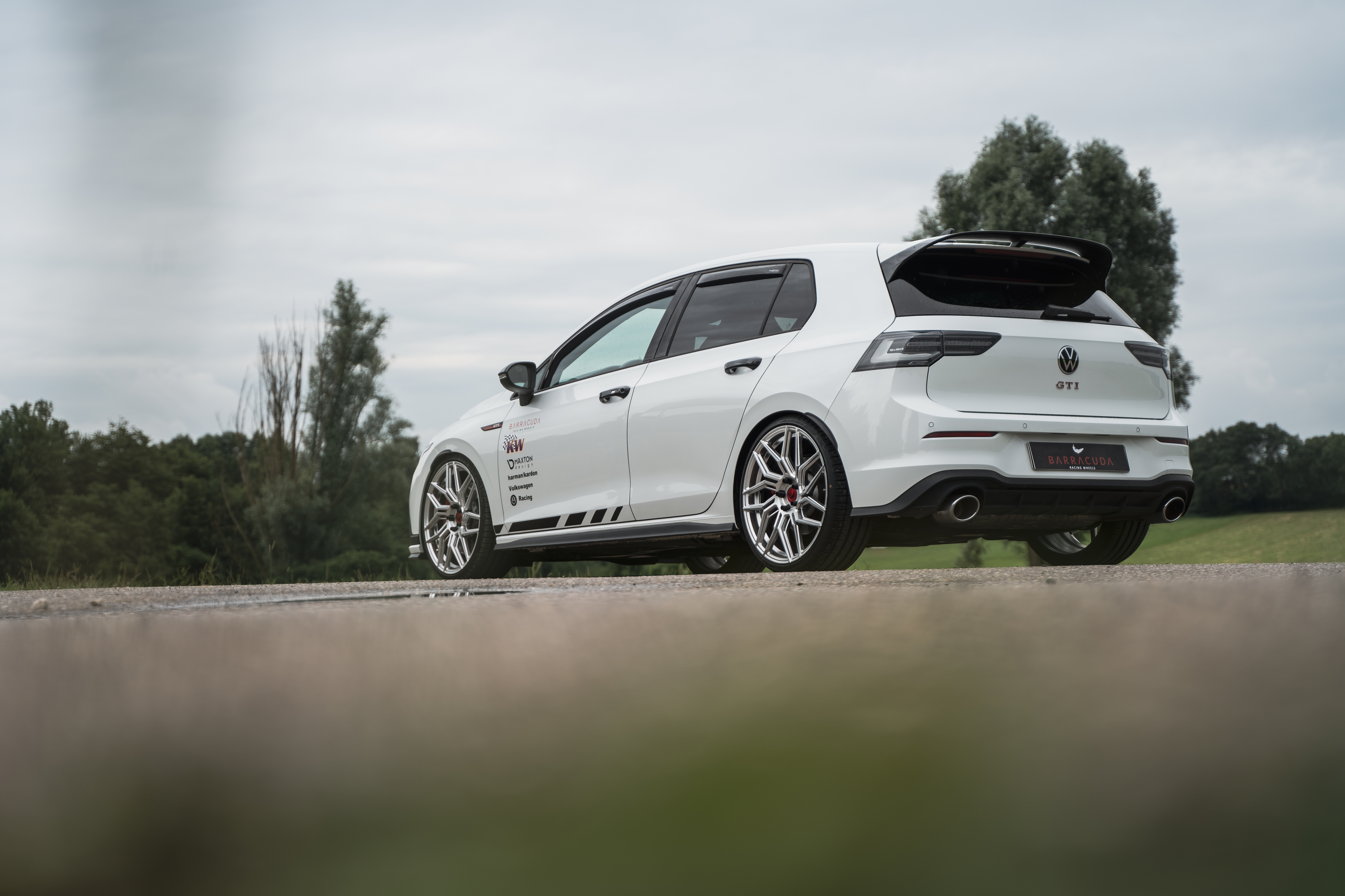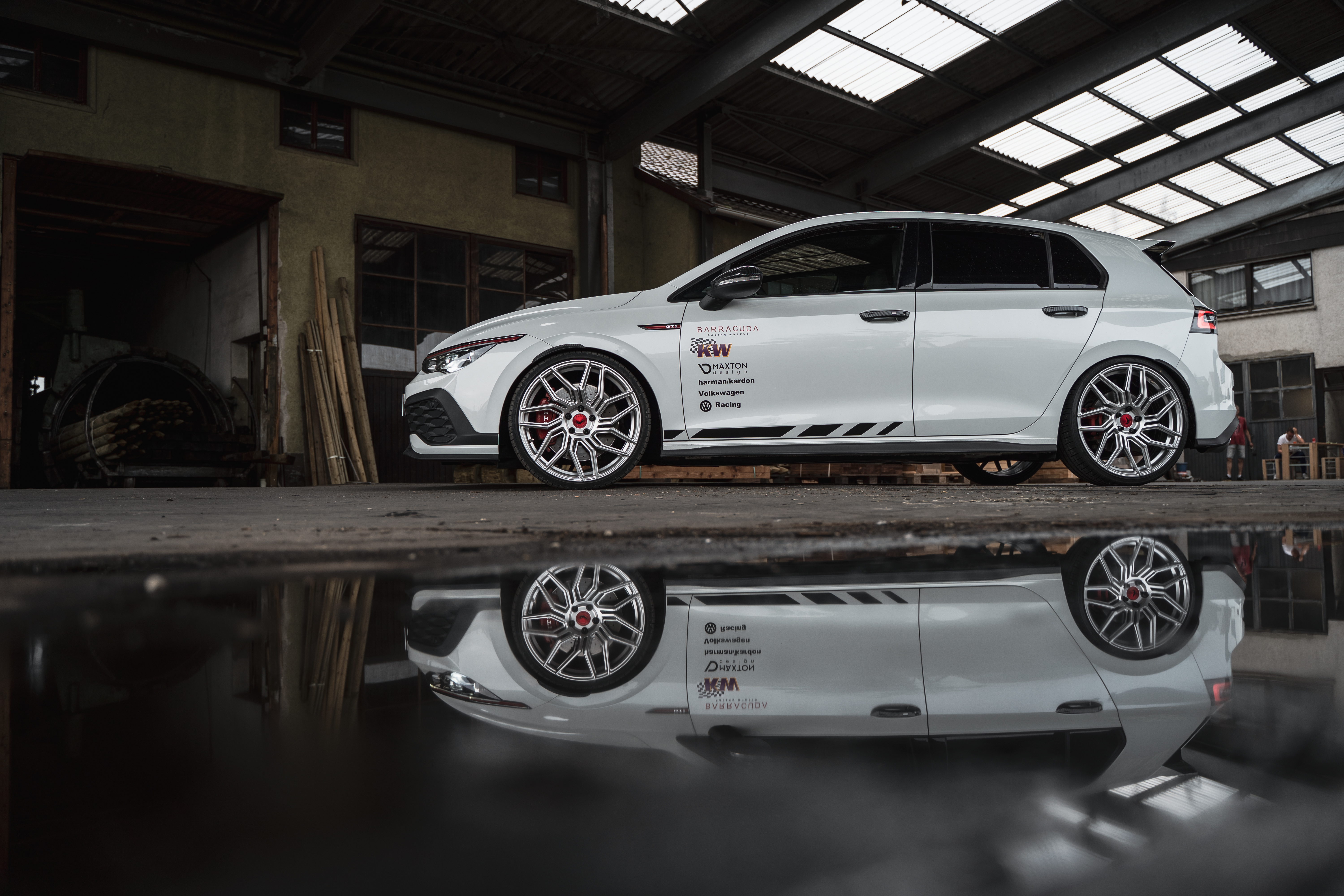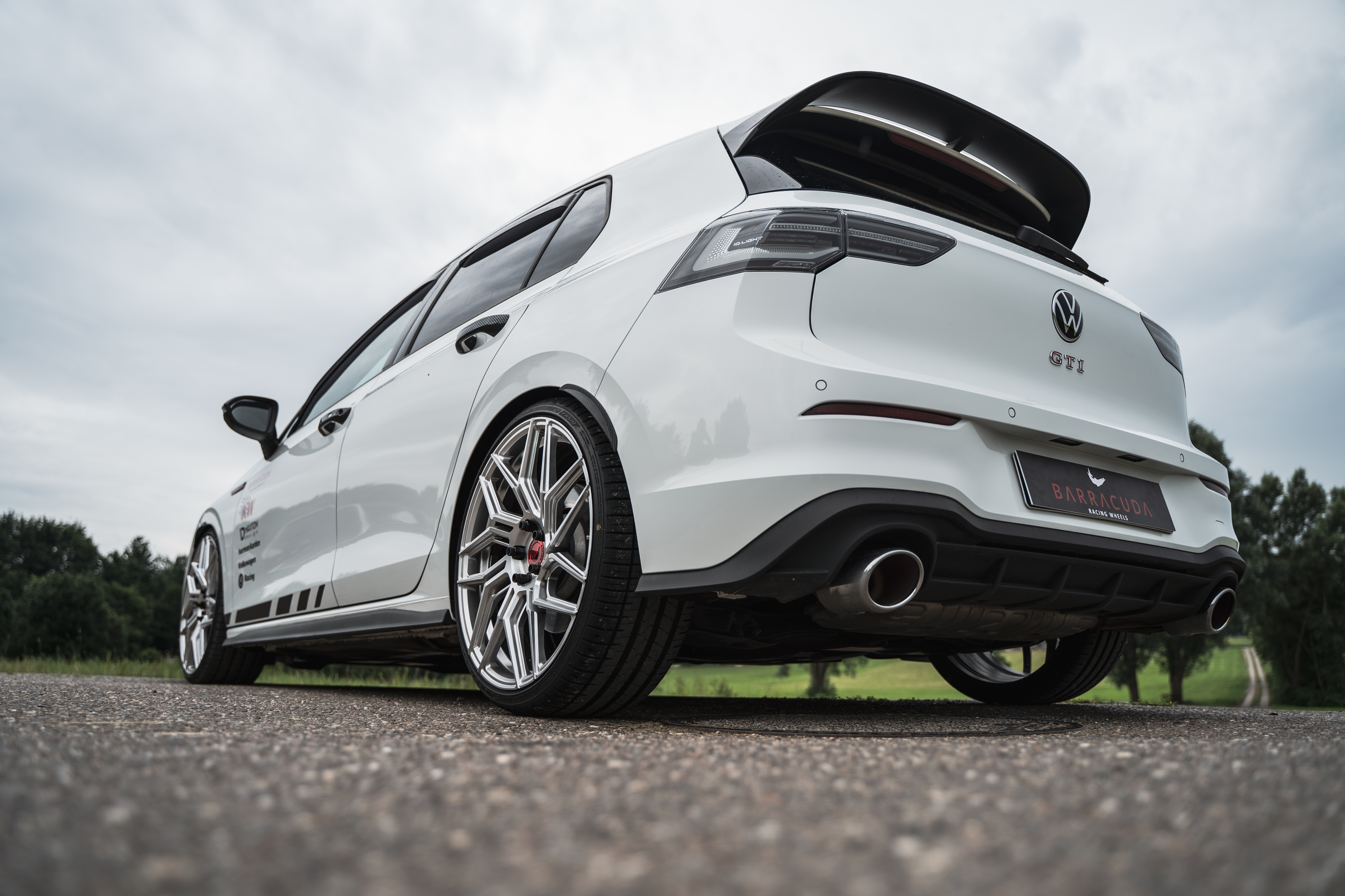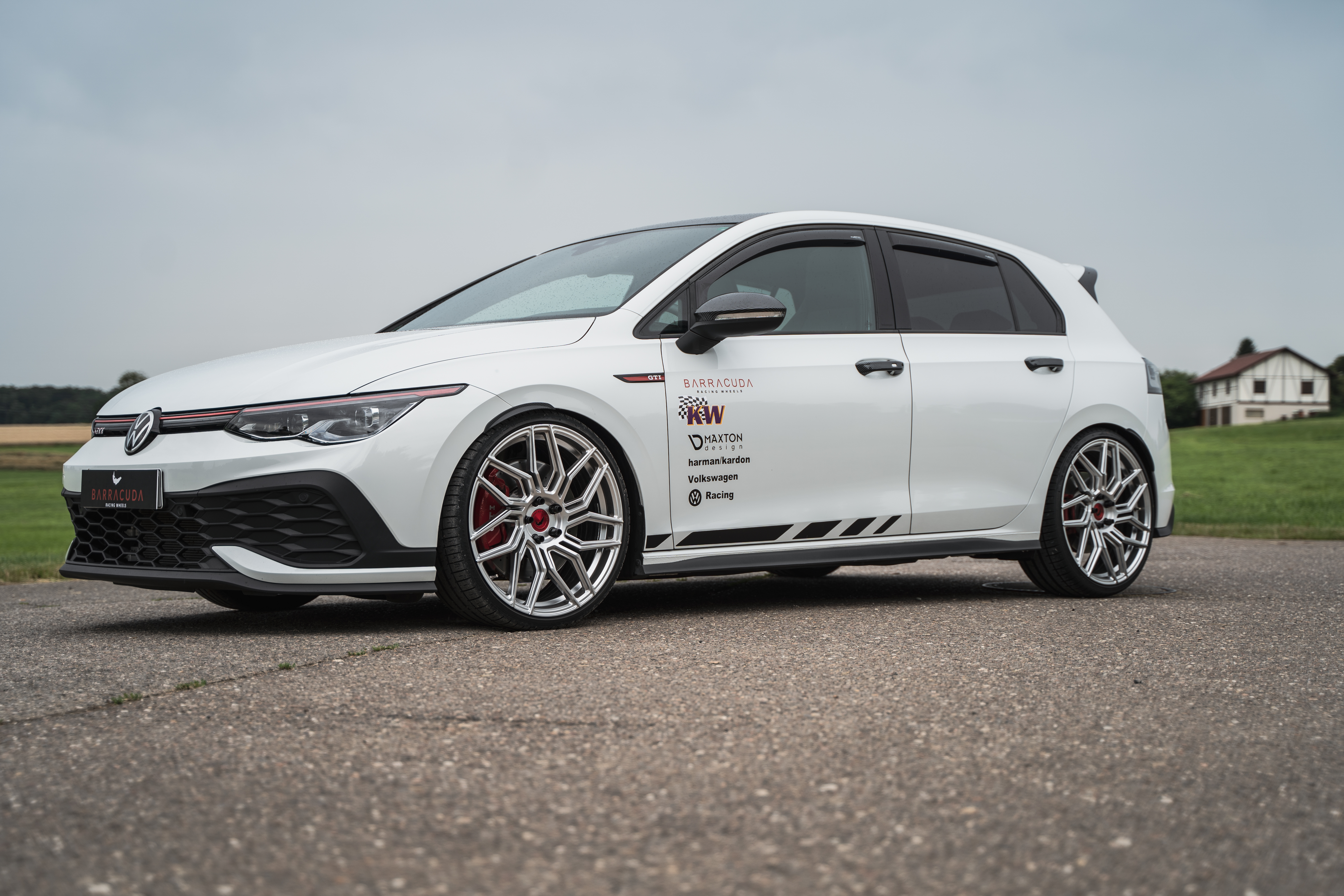 As a further eye-catcher, the wheels in this case - to match the corresponding typical design accents of the GTI - are combined with rim caps in red. They are screwed to the axles with the registration-free Barracuda Racing Bolts in black. These screws are available in different colors and for virtually all rim applications. Even individual productions with a desired shaft length are possible. The racing bolts are also available as wheel nuts.