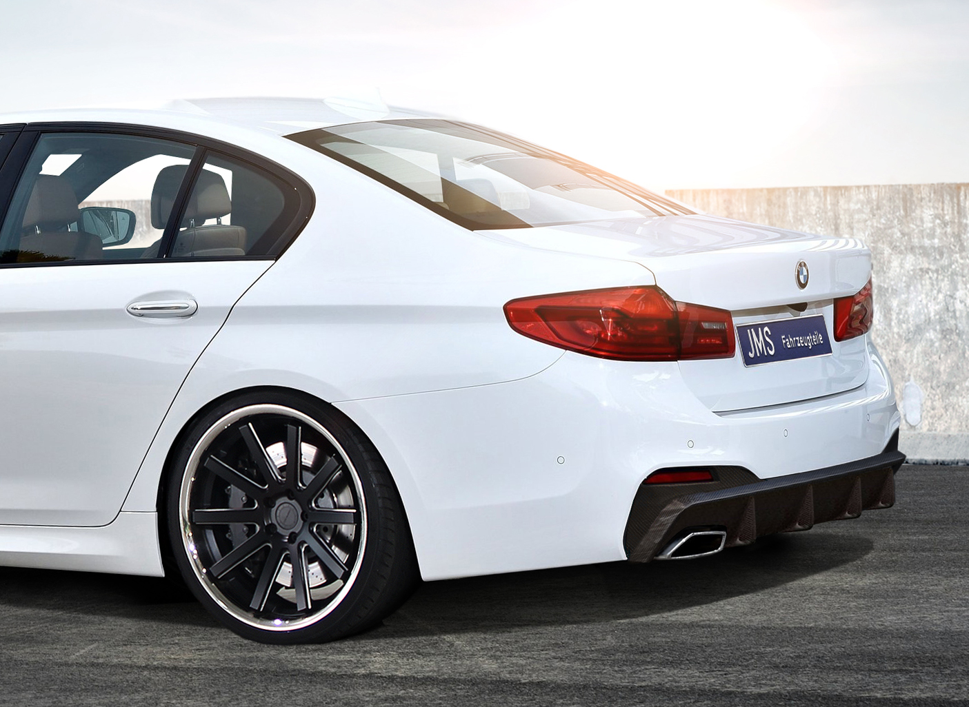 Alle JMS-Stylingkomponenten passen sowohl bei der Limousine, als auch beim Kombi und sind entweder mit Teilegutachten abgesegnet (Front) oder sogar eintragungsfrei (Heck). Die Seitenschweller lässt JMS unverändert, da sie den BMW-Designern wirklich hervorragend gelungen sind. Wie gewohnt legte man bei JMS auch bei der Gestaltung der Styling-Parts für den BMW G30/31 sehr großen Wert auf Design bis ins Detail, was sich beispielsweise in harmonischen Übergängen der Anbauteile zur Serientechnik widerspiegelt. Die Montage erfolgt einfach mittels kleben und zusätzlicher Fixierschrauben.