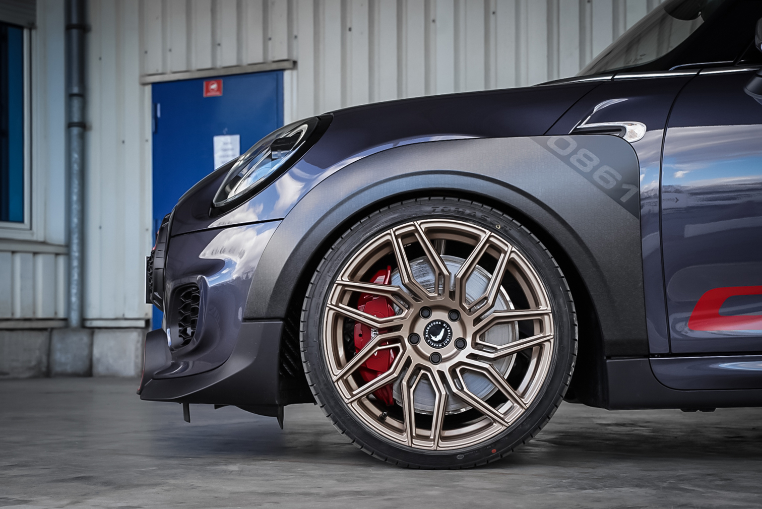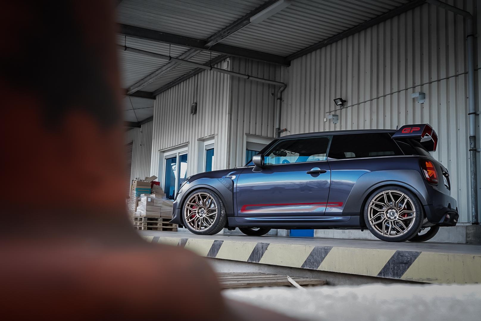 (lifepr) (Neckartenzlingen, 24.02.2022) Das Topmodell der MINI-Baureihe F56, der John Cooper Works GP, ist ein echter Unruhestifter und Eyecatcher. Schließlich tritt der Hot Hatch mit 306 PS starkem Turbo-Vierzylinder und einem extrovertierten Bodykit an. Dennoch bietet der Kraftzwerg noch Potenzial für weitere Optimierungen. So wurde dieses Exemplar nicht nur auf hochwertige Räder aus dem Hause Barracuda Racing Wheels gestellt, sondern erhielt noch einige weitere Anpassungen.