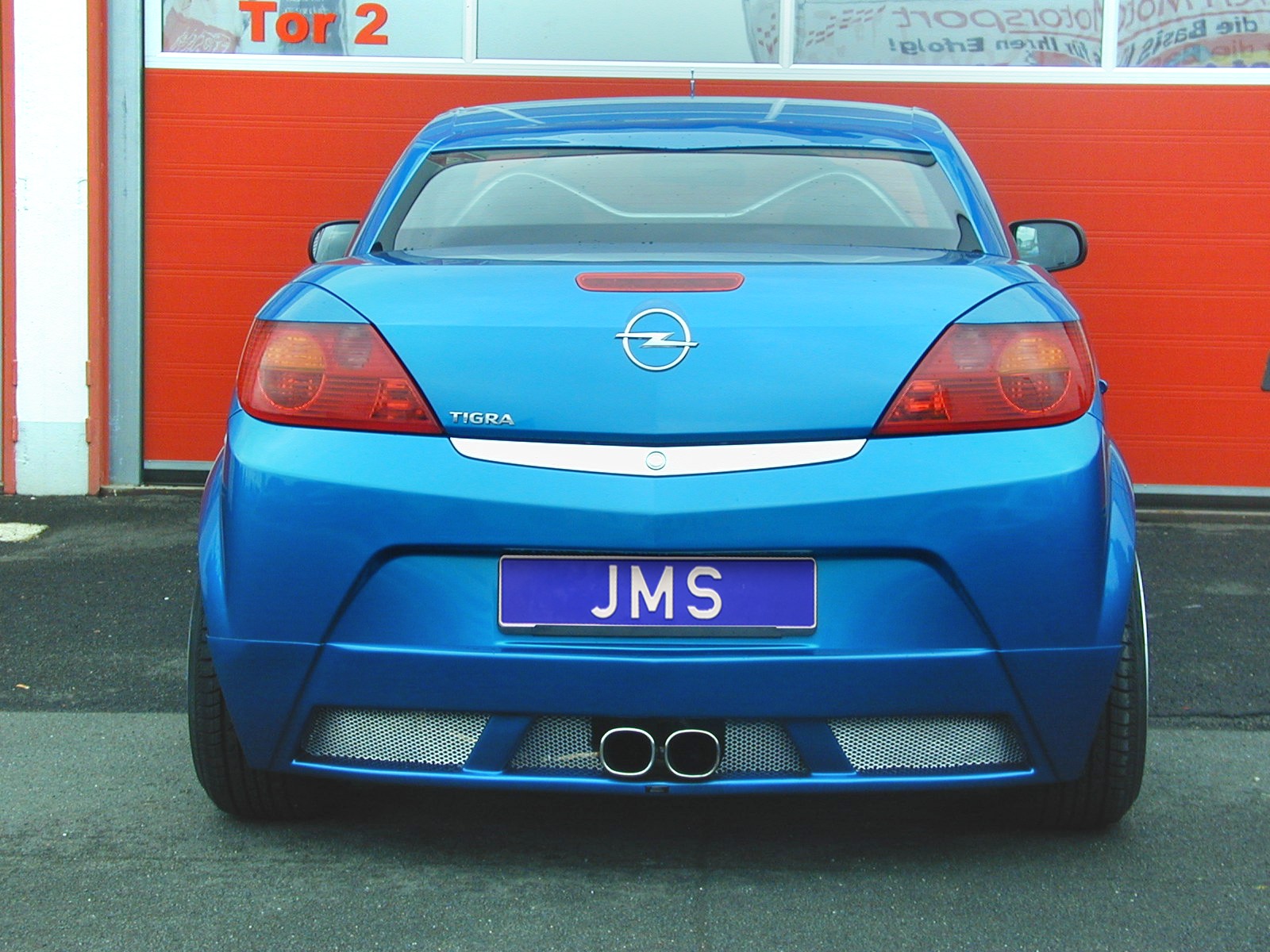 jms designs a full body kit for the tigra twintop. The kit consists of: Front lip spoiler (Euro 229), side skirts (279 Euro ), rear apron (229 Euro), headlight eyebrows (49,90 Euro) and taillight covers (49,90 Euro).