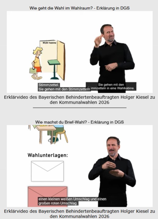 (lifepr) (Röthenbach, 24.02.2026) Zwei barrierefreie Filme mit Deutscher Gebärdensprache (DGS), Untertitelung und Ton erklären anschaulich das richtige Verhalten in der Wahlkabine und bei den Briefwahlen zu den Kommunalwahlen in Bayern am 08.03.26.