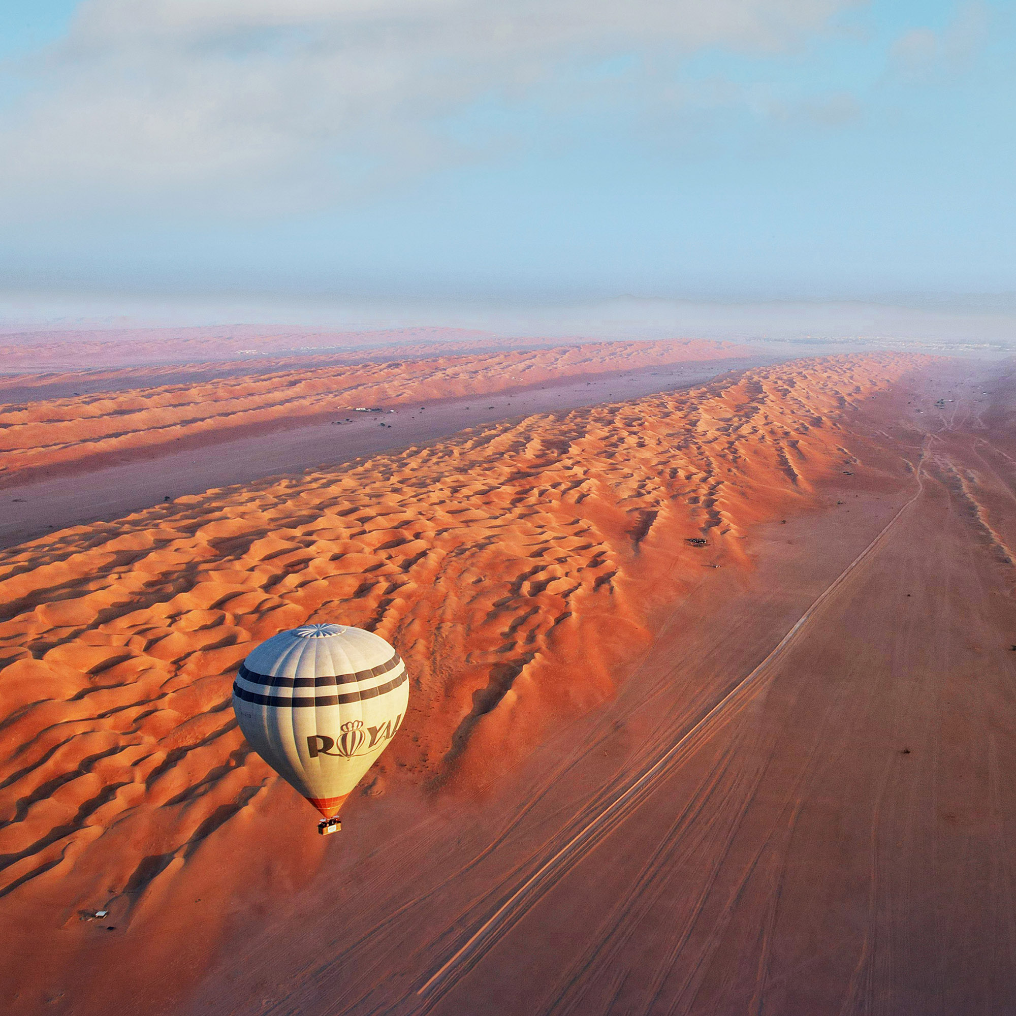 Ihren Mietwagen nehmen Reisende in der Landeshauptstadt Muscat entgegen. Diese lädt mit ihrem orientalischen Charme und den prächtigen Bauwerken wie der Sultan-Qaboos-Moschee zu einem ersten „Schnuppern“ des arabischen Flairs ein. Dieses zeigt sich besonders auf lebendigen Märkten wie dem Muttrah-Souk, einer der ältesten Arabiens, wo man beim Flanieren Weihrauch, Gewürze und handgefertigte Waren entdeckt. Von Muscat aus führt die Route entlang der Panoramastraße am Meer, wo zwischen schroffen Felswänden grüne Oasen und unzählige Naturpools zum Verweilen einladen. Dank der Allradfahrzeuge können auch abgelegene Regionen abseits der Strecke erkundet werden, die nur wenigen Reisenden zugänglich sind – das ermöglicht ein noch authentischeres Erlebnis des Landes. Im Wadi Bani Khalid, einer idyllischen Oase mit türkisfarbenen Wasserbecken, findet man Erholung, bevor die Reise weiter in die Wahiba-Wüste führt. Deren endlose Weiten sind einer der Höhepunkte der Tour: Hier erstrecken sich Dünen bis zum Horizont und laden zu einer besonderen Übernachtungserfahrung in einem Beduinencamp ein. Bei Sonnenuntergang taucht das Licht die Dünen in goldene Töne und die Stille der Wüste sorgt für ein unvergleichliches Erlebnis. Abenteuerlustige können am Tag darauf die Wüste auf einem Kamel erkunden oder mit dem Geländewagen über die Dünen fahren.