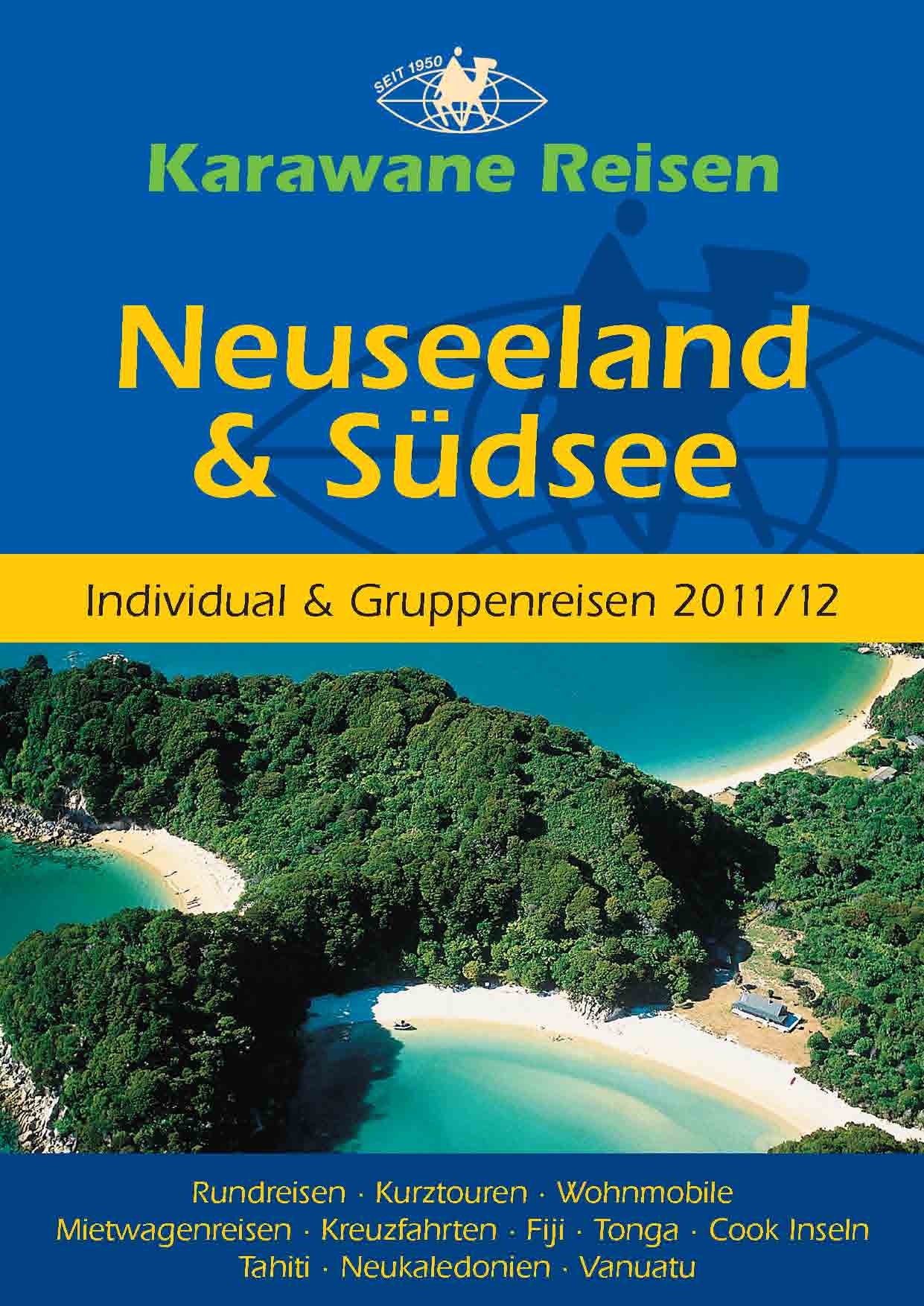 Der Katalog Neuseeland-Südsee 2011 und weitere Informationen zu den angebotenen Neuseeland Reisen sind bei Karawane Reisen, Tel. +49 (7141) 284850, E-Mail neuseeland@karawane.de erhältlich.